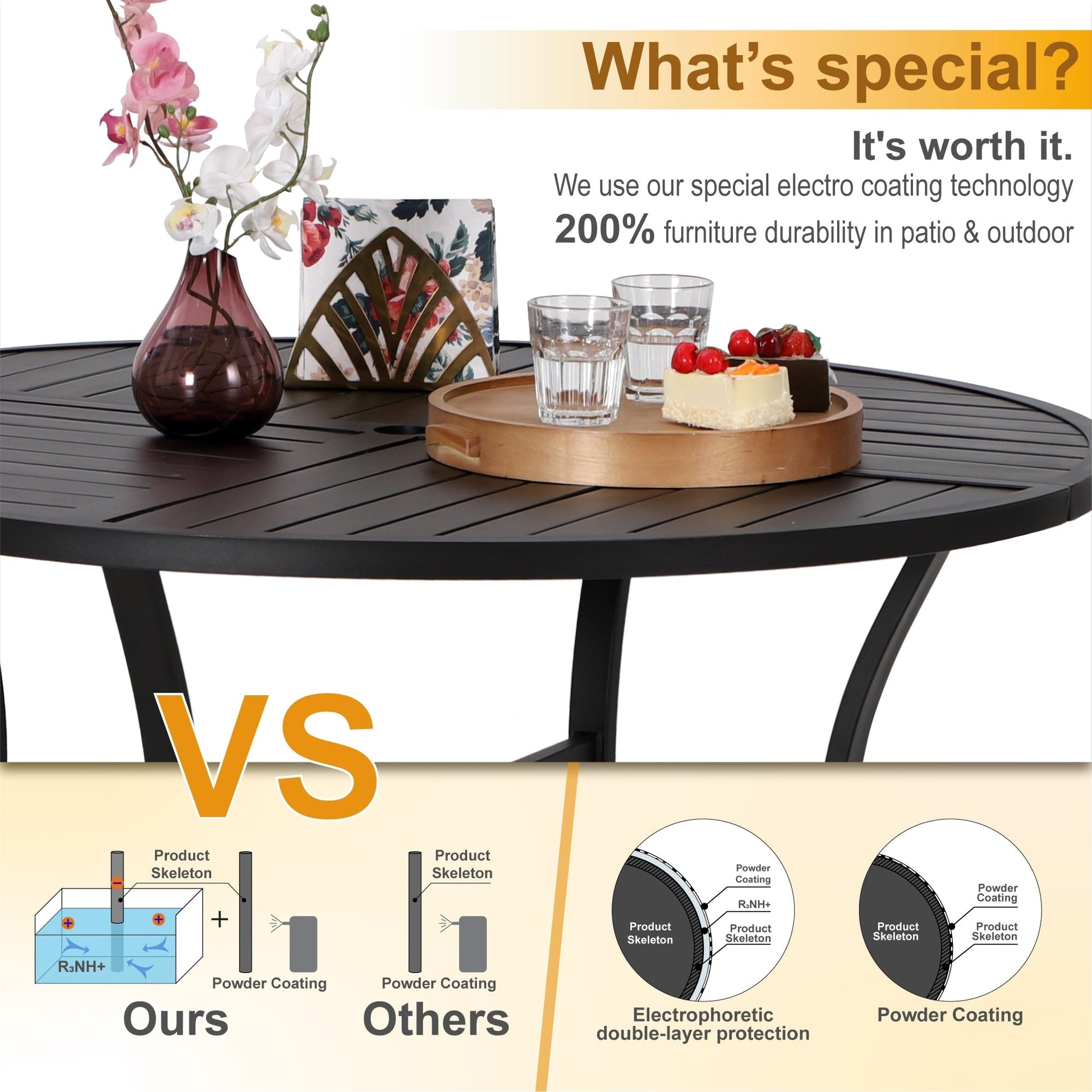 • Dimensioni del tavolo: diametro 47' x 29'H; foro per ombrellone 1,9'