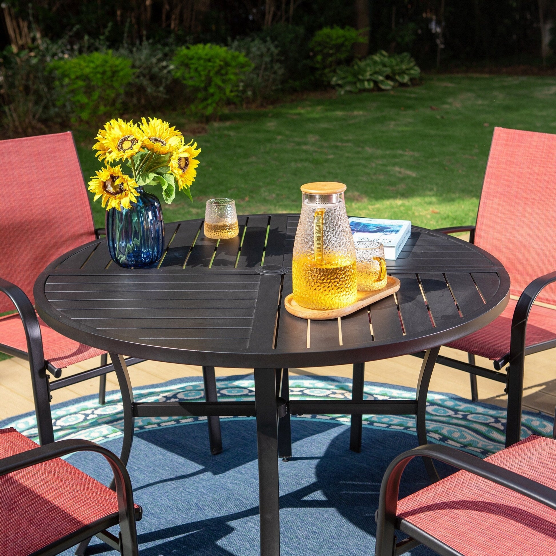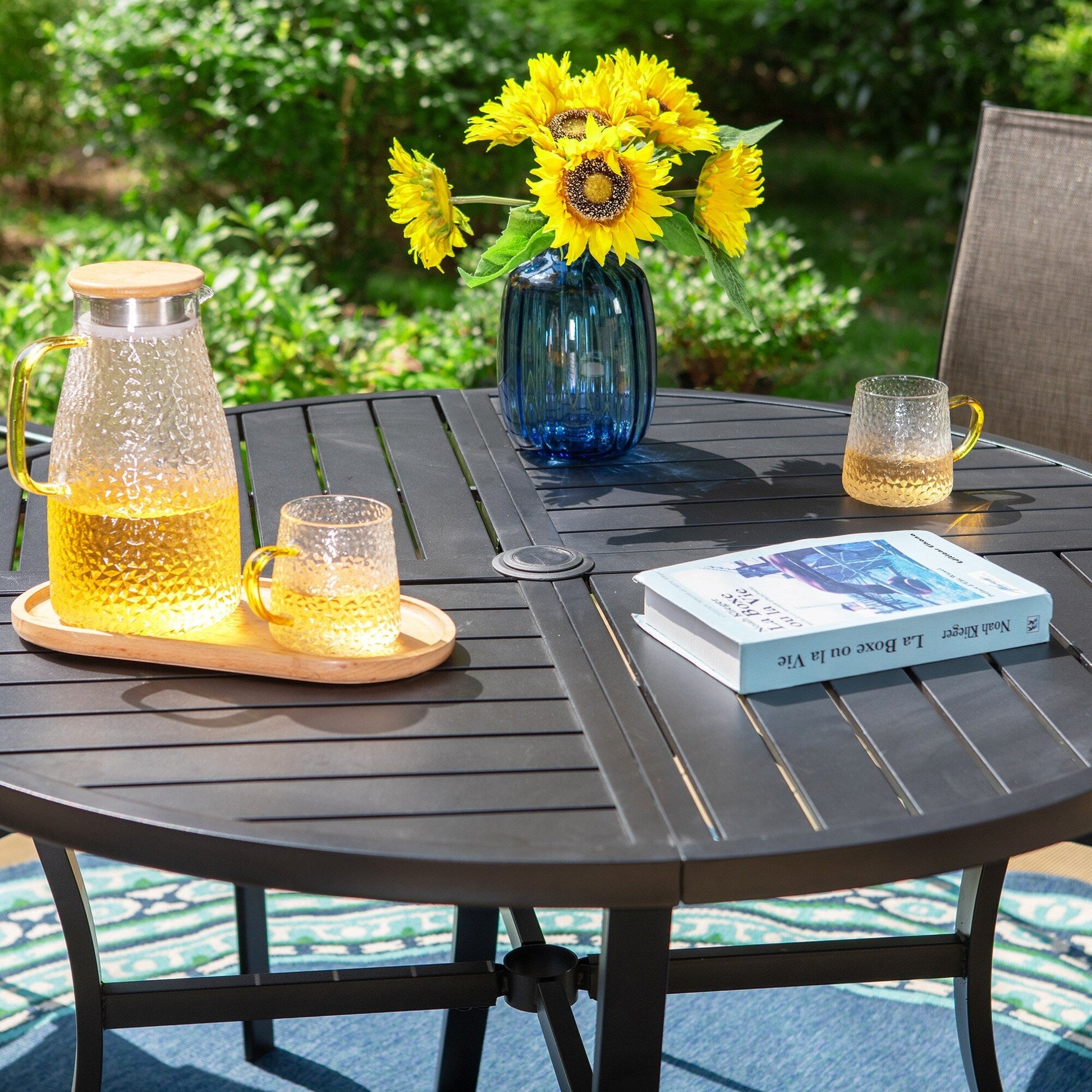 MAISON ARTS Set da pranzo per patio da 5 pezzi, tavolo rotondo con stampa geometrica e 4 sedie da pranzo in textilene