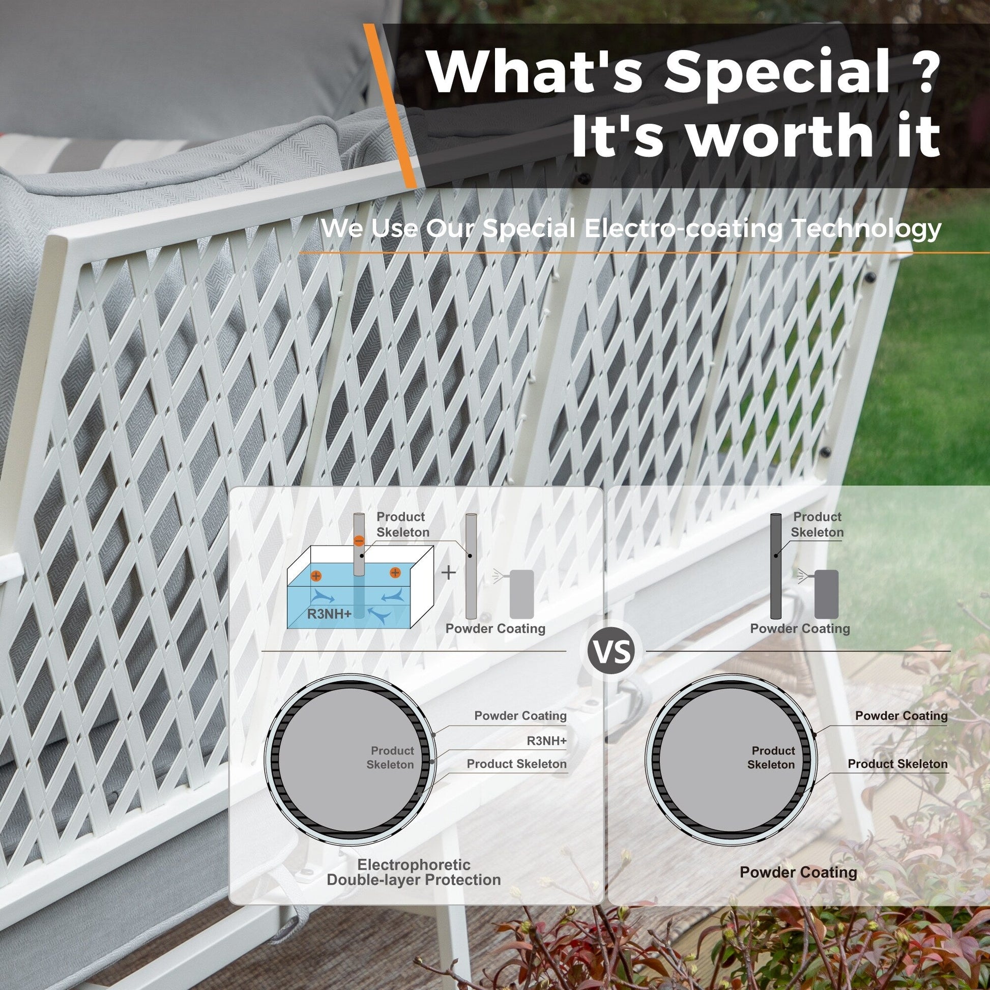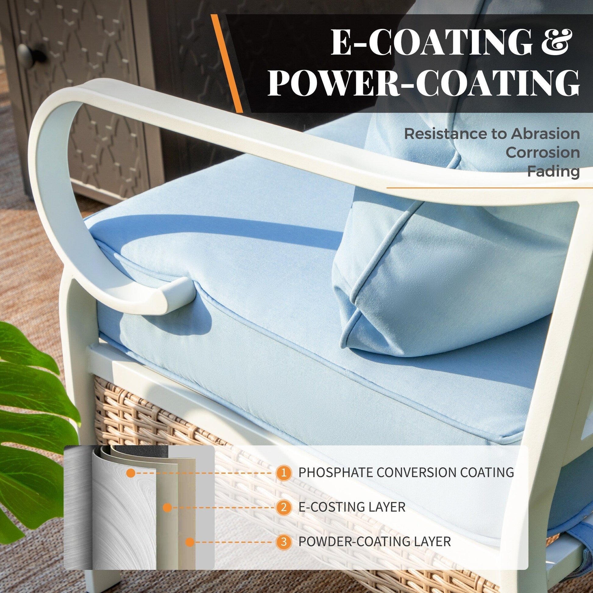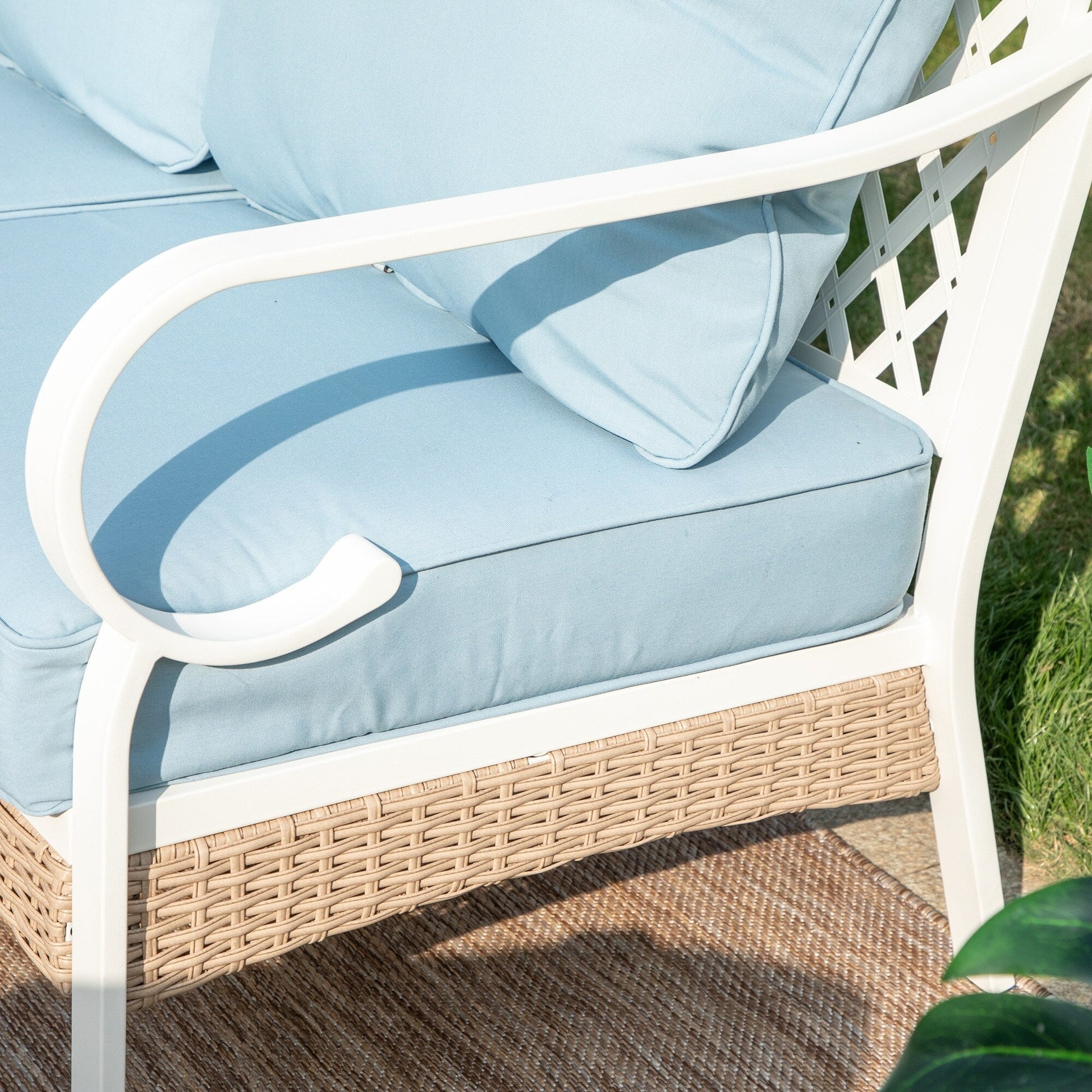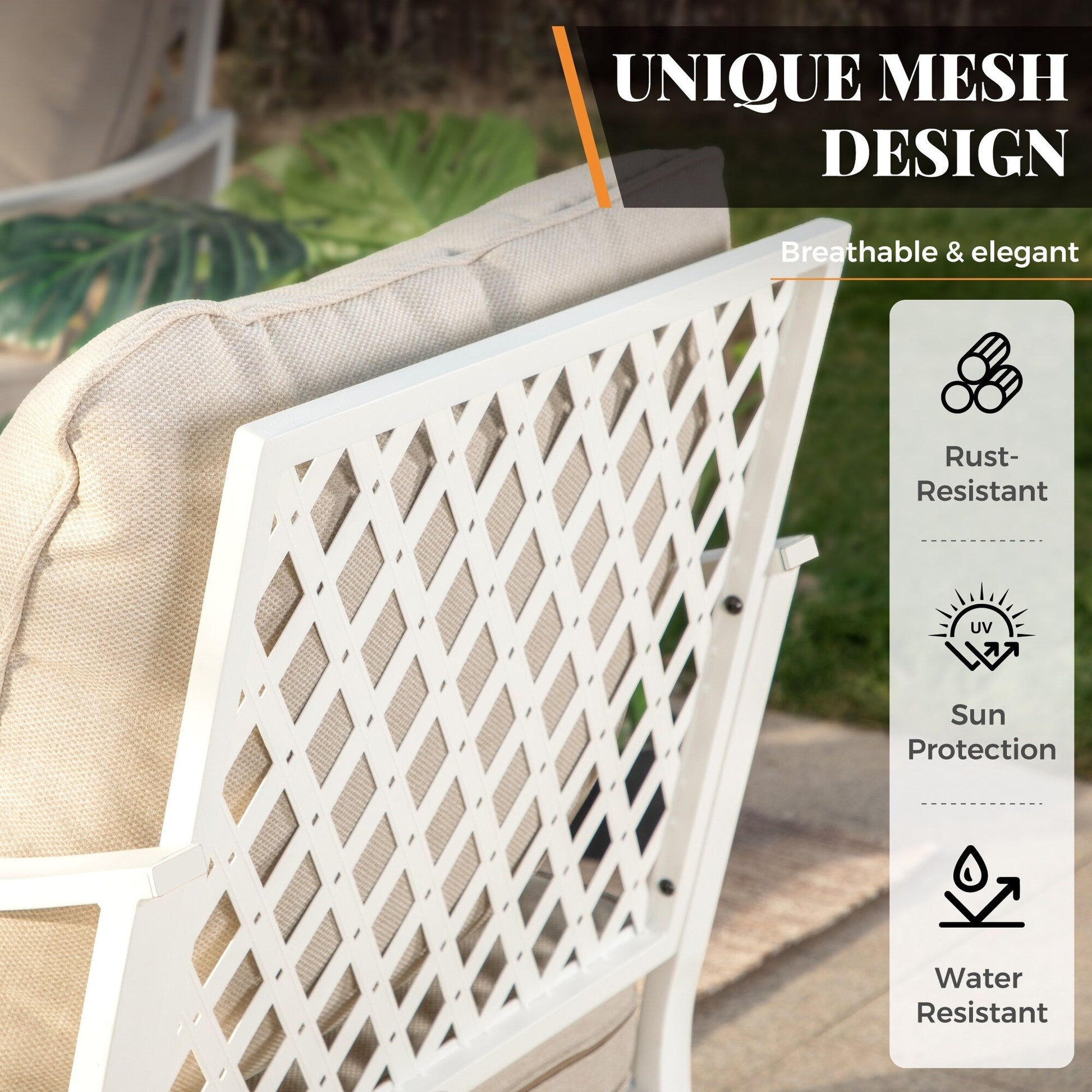 • Telaio in acciaio verniciato a polvere resistente e antiruggine, resistente agli agenti atmosferici esterni, utilizzabile stagione dopo stagione