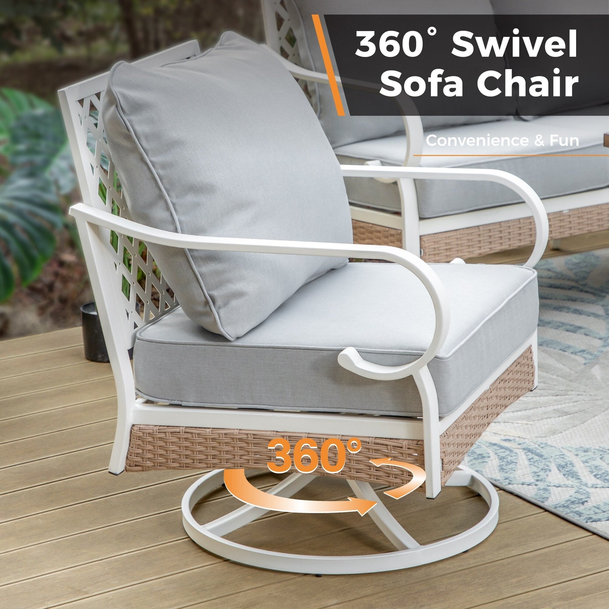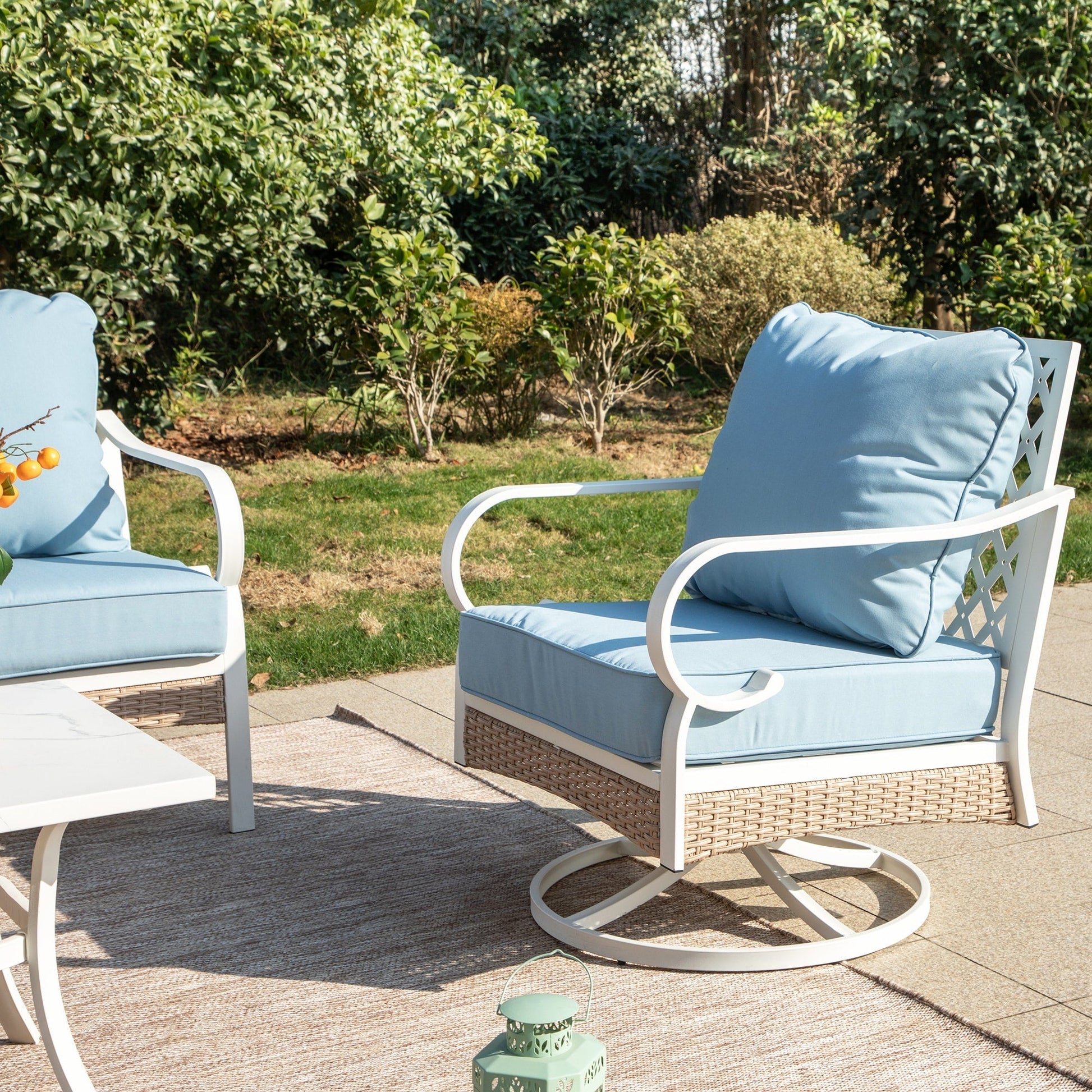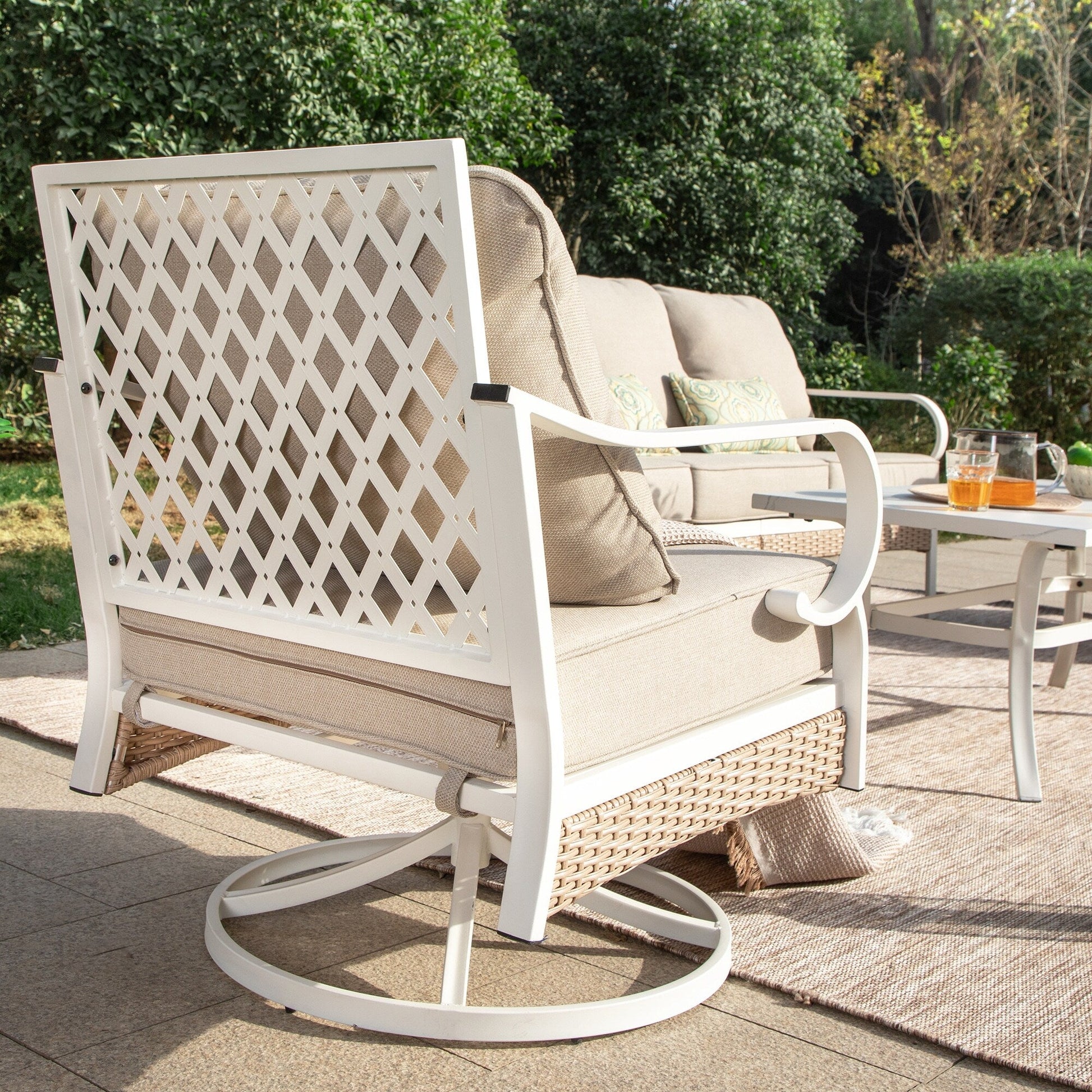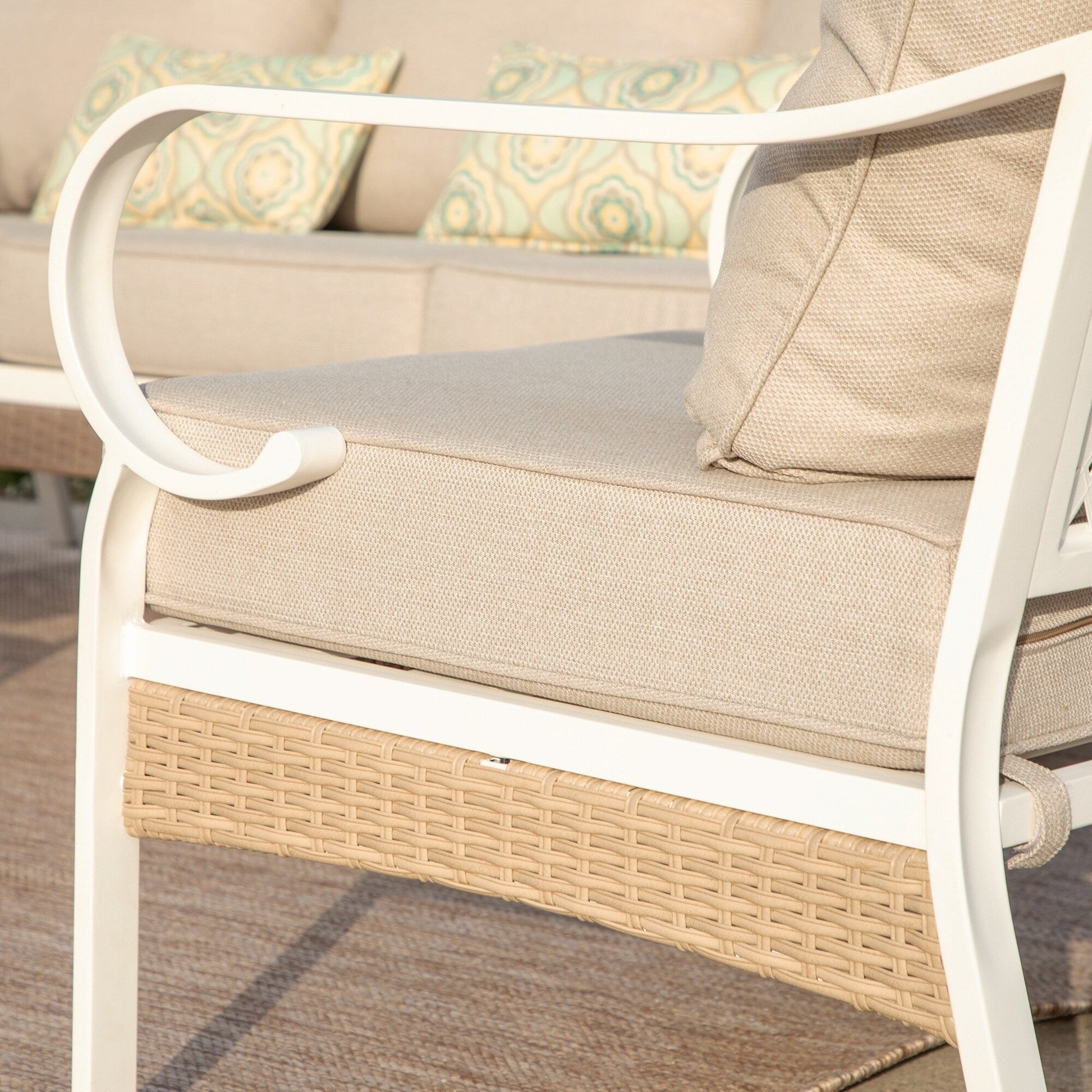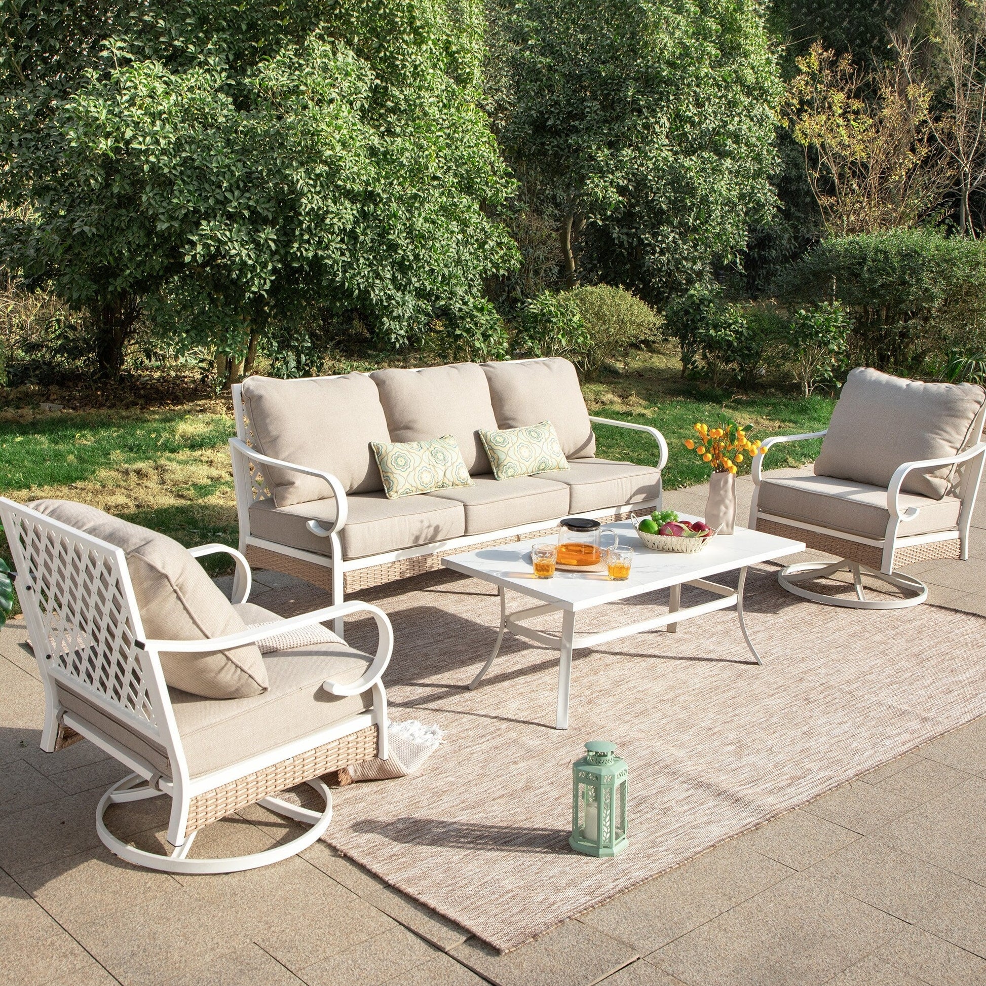 Trasforma il tuo spazio esterno in un accogliente rifugio con il nostro set da conversazione per patio. Che tu voglia rilassarti con un libro o intrattenere gli ospiti, il nostro set elegante e resistente offre ampie sedute e comfort. Realizzato con materiali resistenti alle intemperie, questo set è progettato per resistere agli agenti atmosferici e mantenere la sua bellezza stagione dopo stagione. Migliora la tua esperienza di vita all'aperto con il nostro set da conversazione per patio di alta qualità. Tessuto per esterni brevettato CushionPro con proprietà idrorepellenti, antimacchia e antimacchia, facile da pulire con una semplice spugna e uno spray detergente.