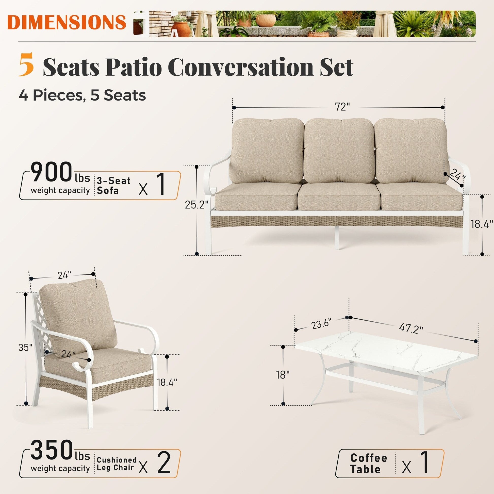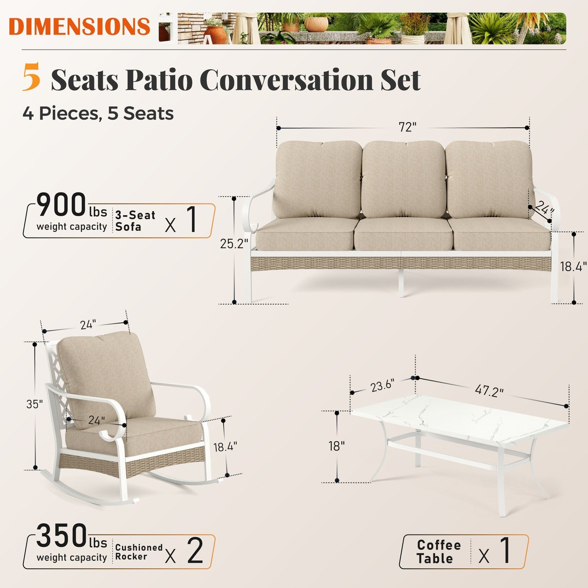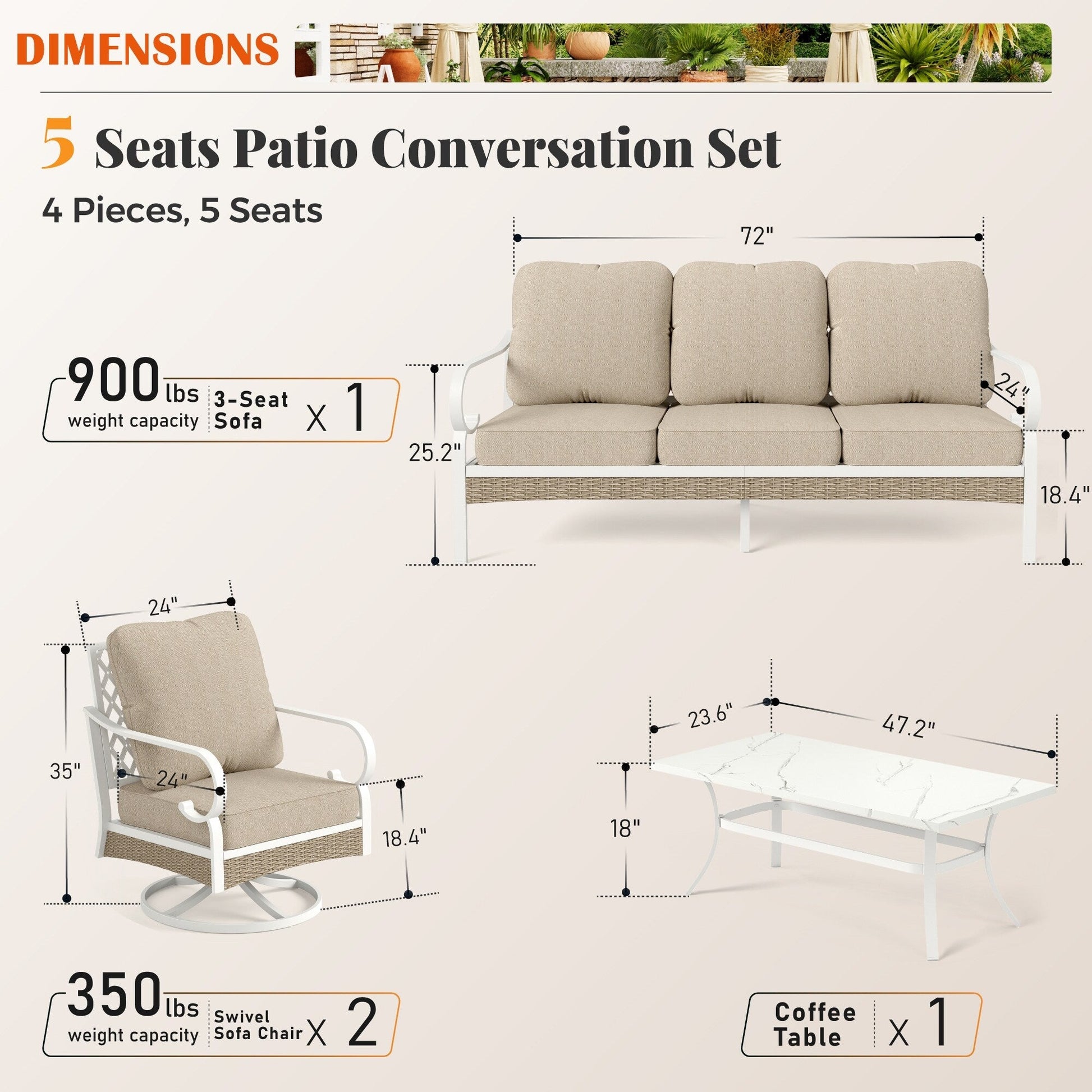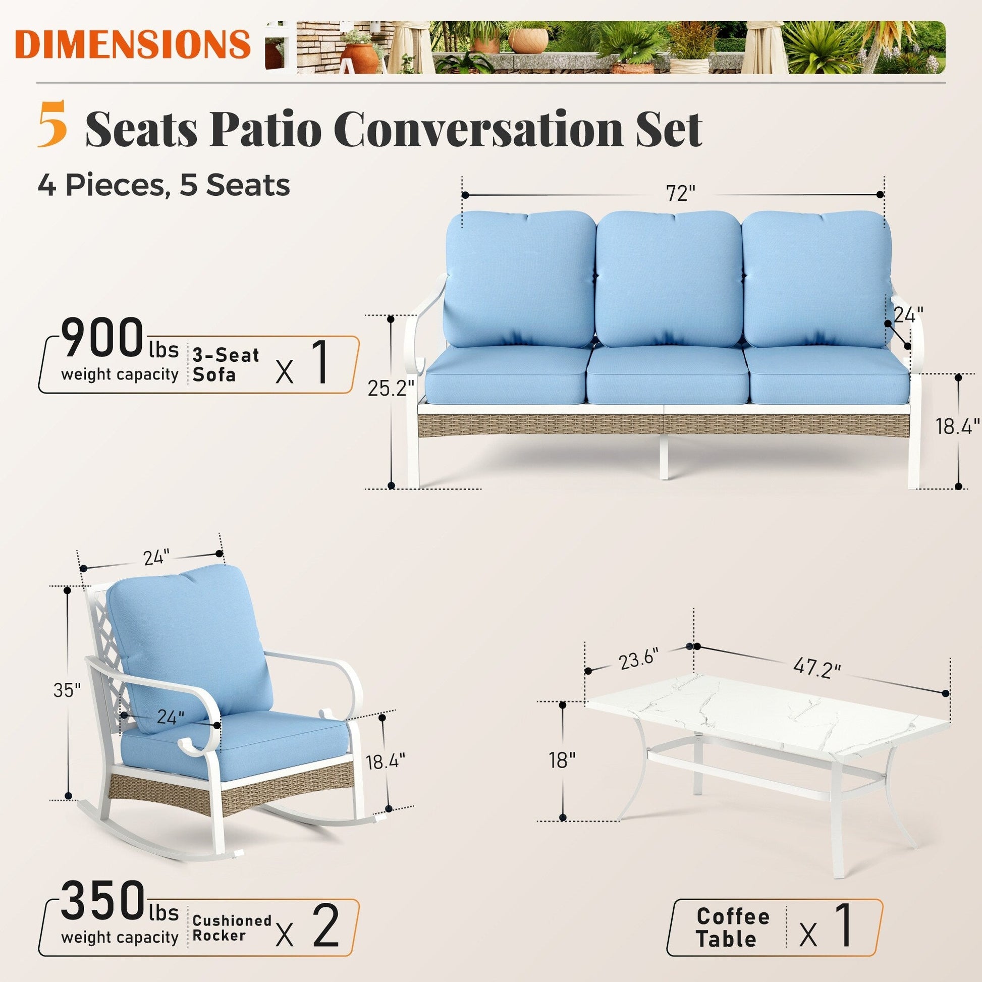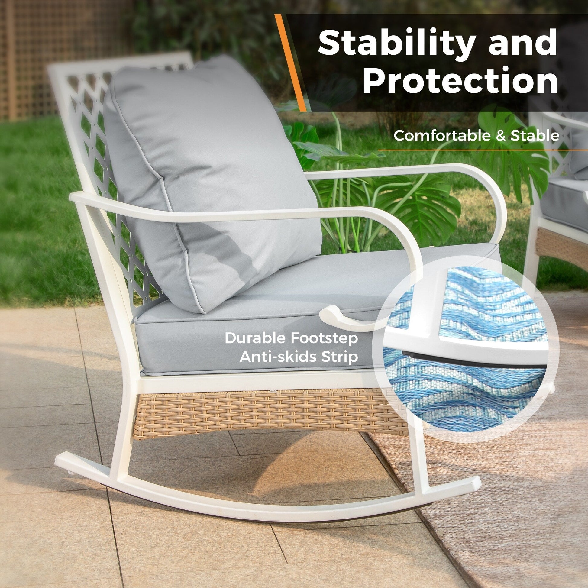 Trasforma il tuo spazio esterno in un accogliente rifugio con il nostro set da conversazione per patio. Che tu voglia rilassarti con un libro o intrattenere gli ospiti, il nostro set elegante e resistente offre ampie sedute e comfort. Realizzato con materiali resistenti alle intemperie, questo set è progettato per resistere agli agenti atmosferici e mantenere la sua bellezza stagione dopo stagione. Migliora la tua esperienza di vita all'aperto con il nostro set da conversazione per patio di alta qualità. Tessuto per esterni brevettato CushionPro con proprietà idrorepellenti, antimacchia e antimacchia, facile da pulire con una semplice spugna e uno spray detergente.