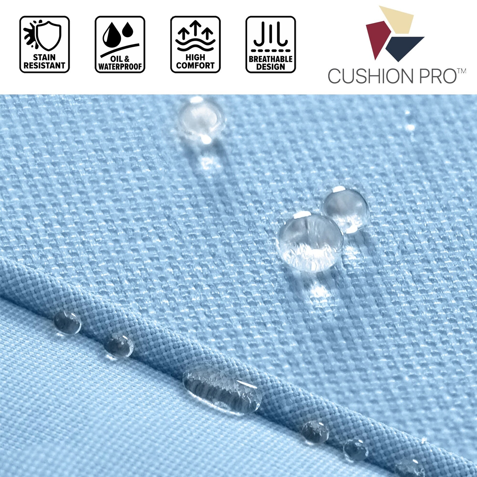 • Cuscino in tessuto olefinico blu da 200 g, resistente all'acqua, all'olio e alle macchie.