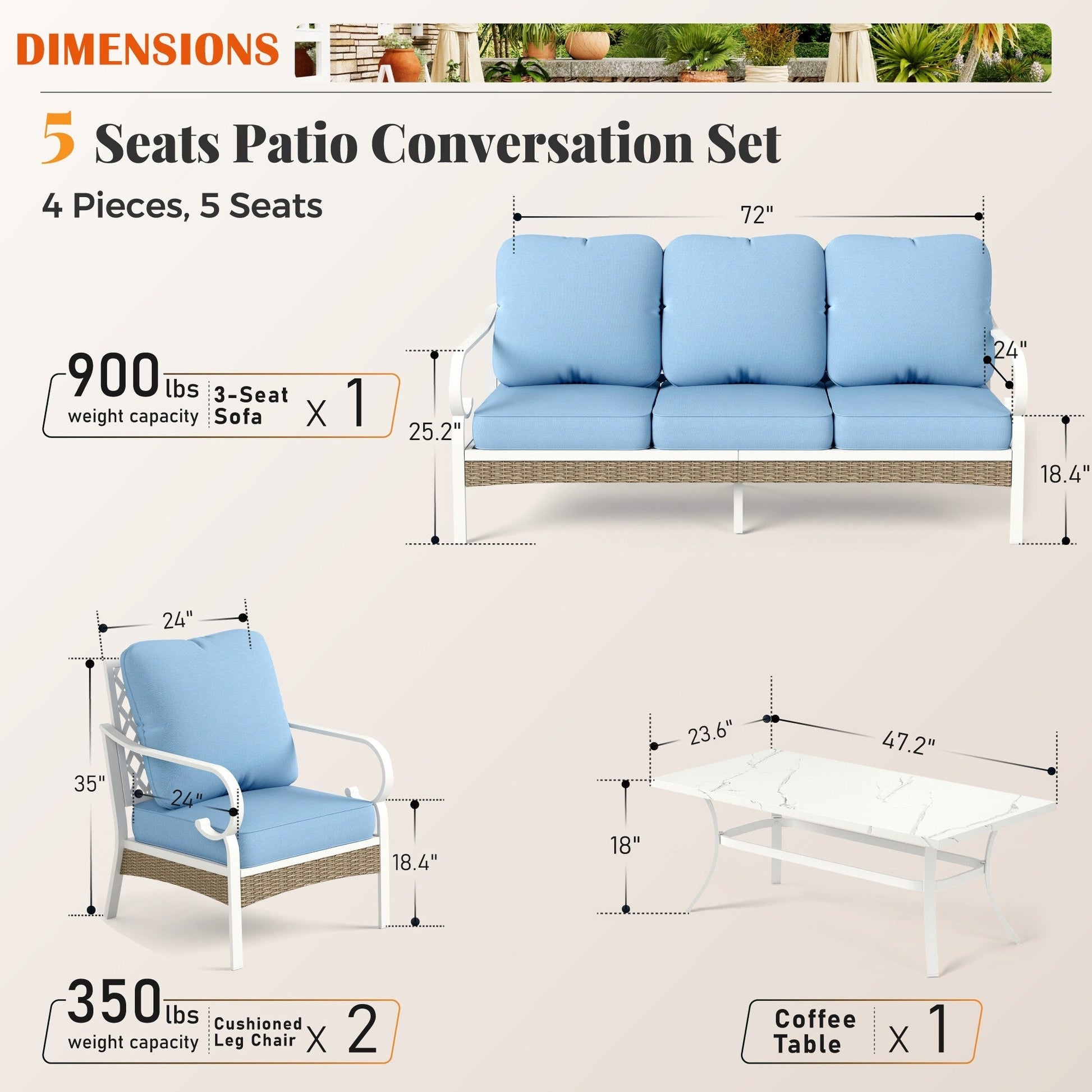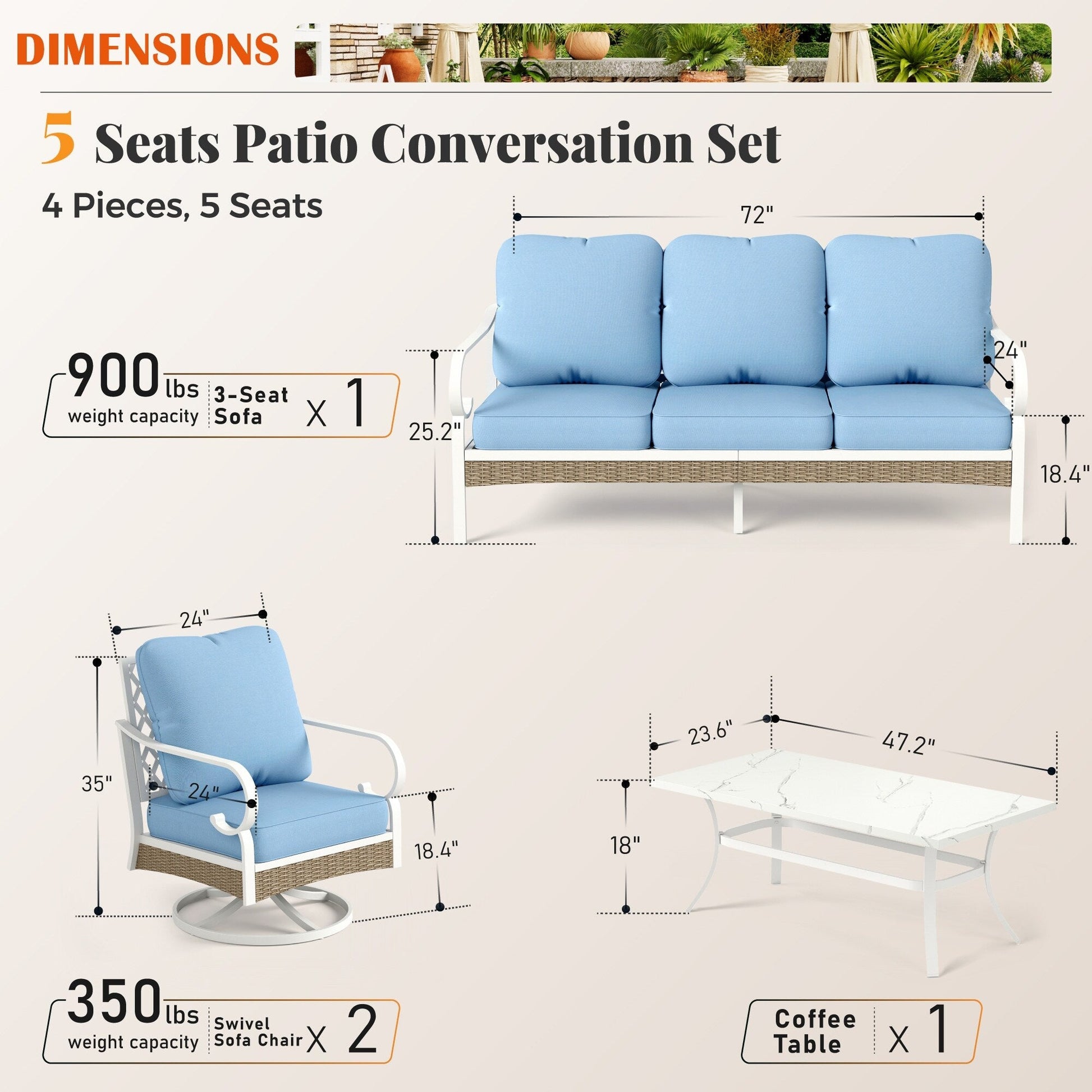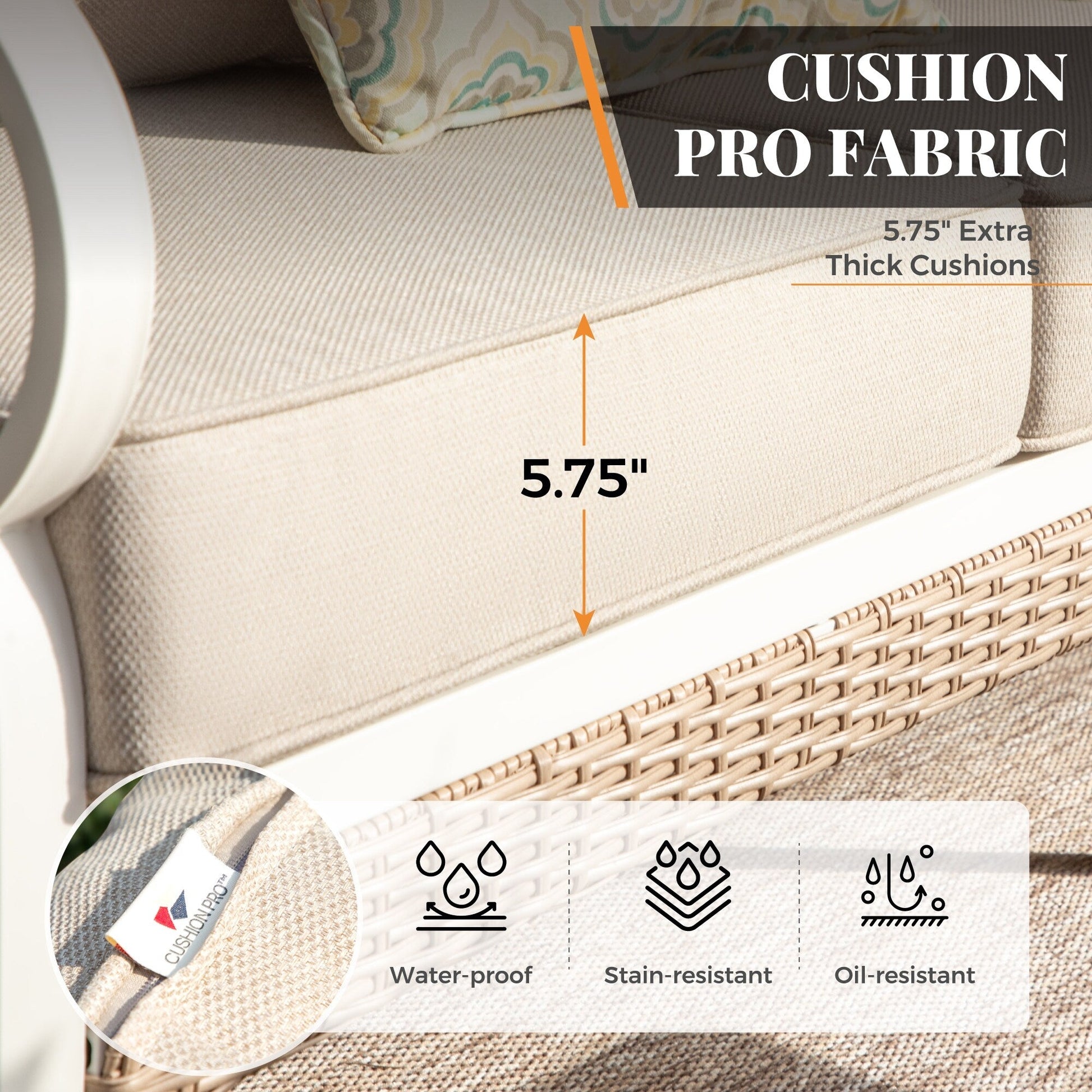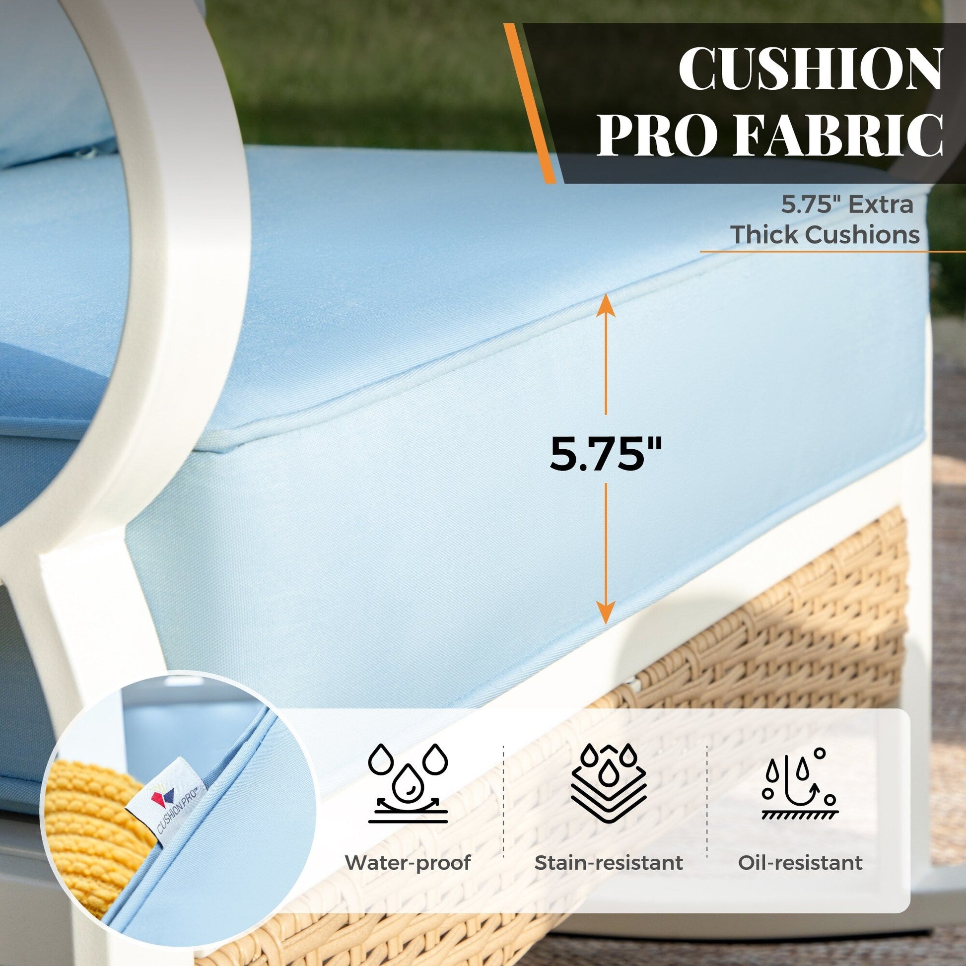 • I cuscini di seduta extra spessi da 5,75' aggiungono un ulteriore livello di comfort, rendendolo perfetto per lunghe ore di relax