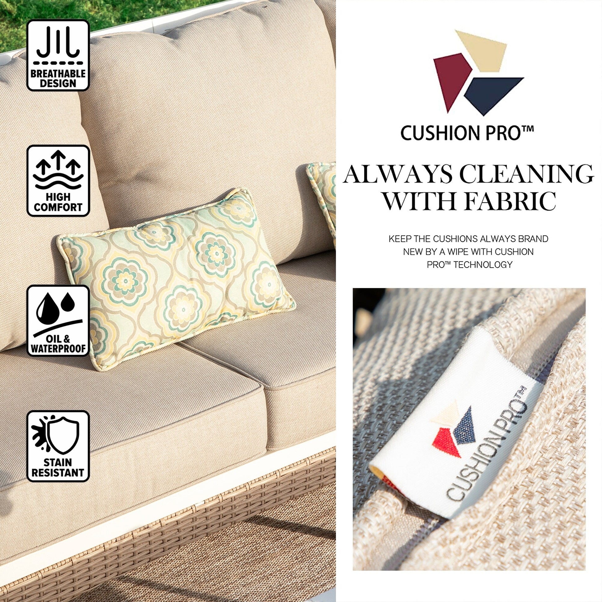 • I cuscini sono trattati con la speciale tecnologia CUSHION PRO, che consente di rimuovere facilmente sporco e macchie