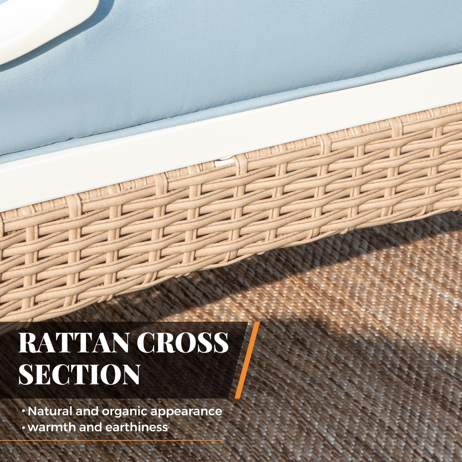 • Colore blu/beige e bianco con rattan in legno grezzo, che dona una sensazione calda e pulita