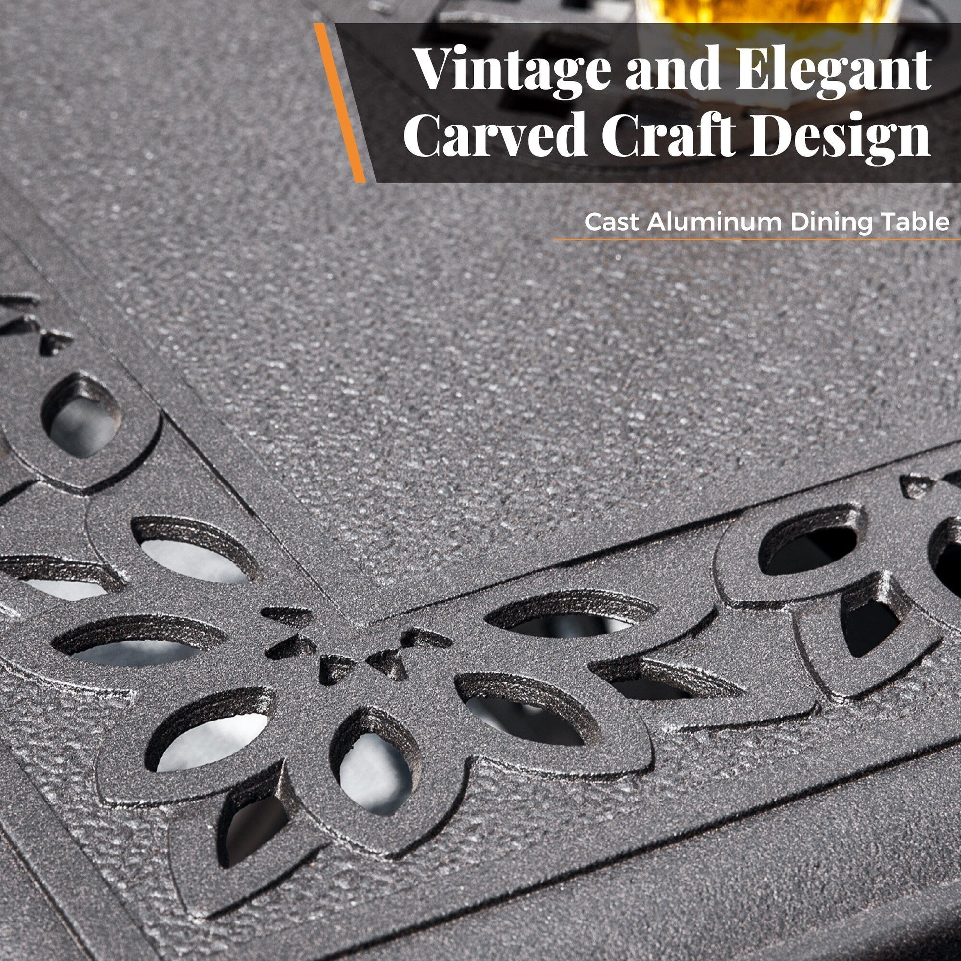 • Foro per ombrellone al centro del tavolo, adatto alla maggior parte degli ombrelloni da esterno