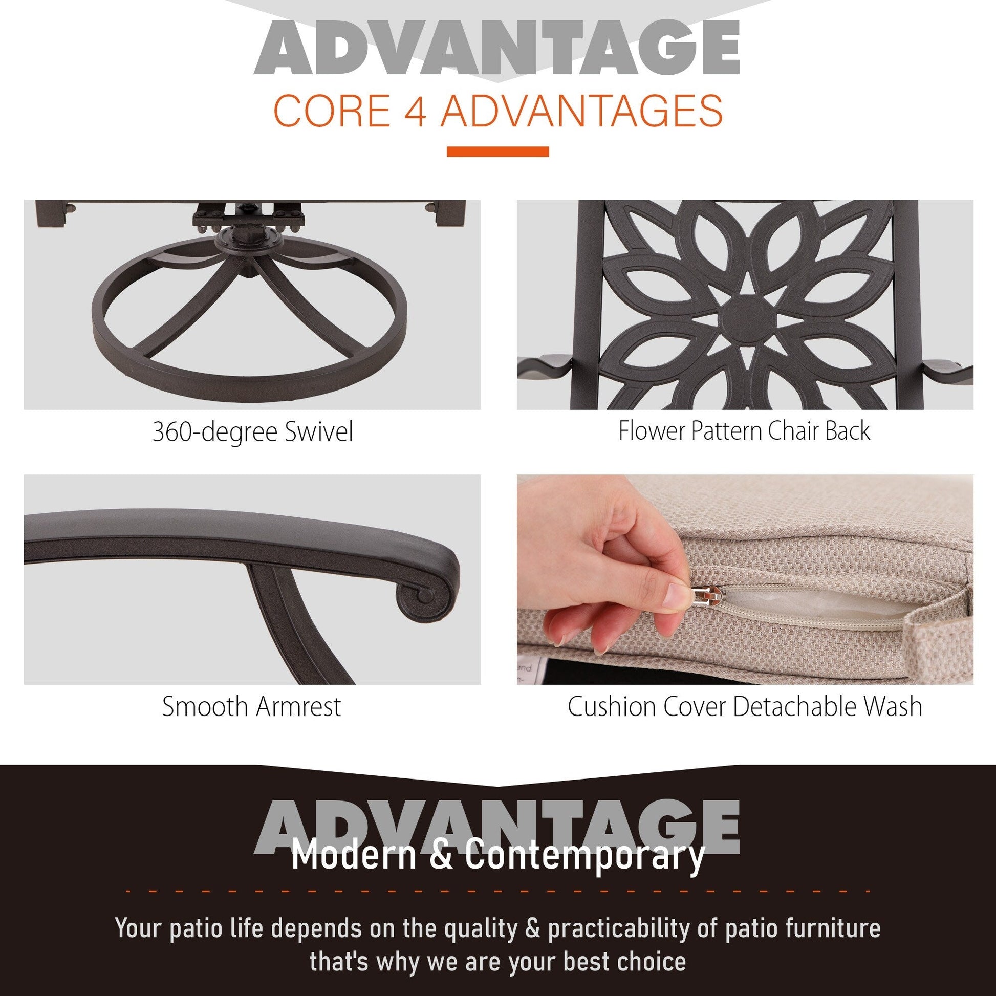 Questo set da pranzo da giardino in alluminio pressofuso può essere posizionato ovunque in casa, può essere posizionato all'esterno senza particolari cure e può essere utilizzato a lungo. Questo set da giardino può essere utilizzato per prendere il tè pomeridiano con la famiglia e gli amici, mangiare, lavorare o leggere un libro: è molto pratico e soddisfa tutte le esigenze. È il complemento d'arredo perfetto per la vostra casa.
