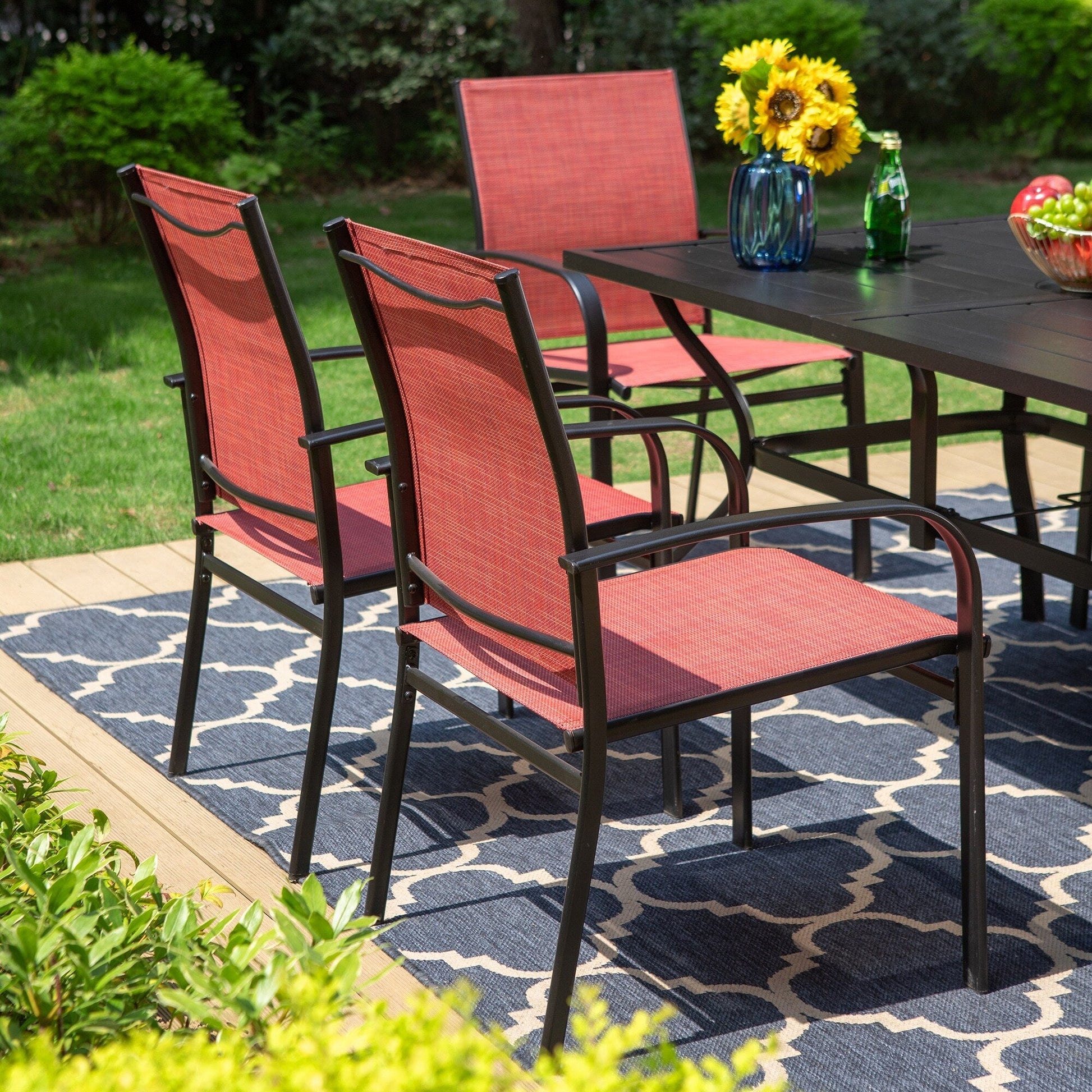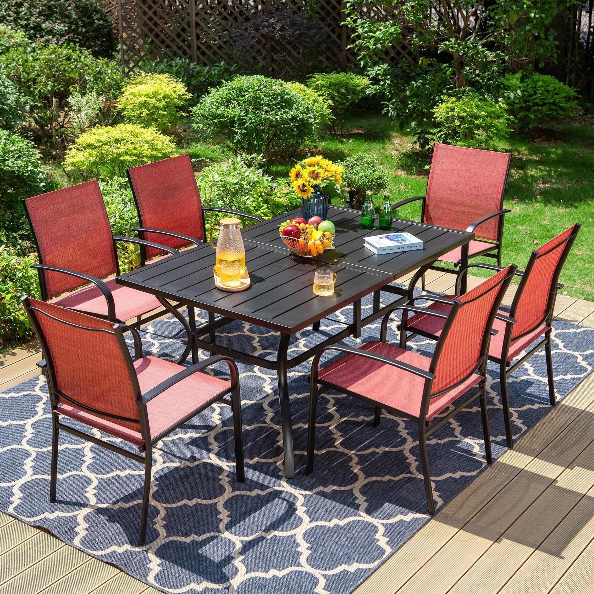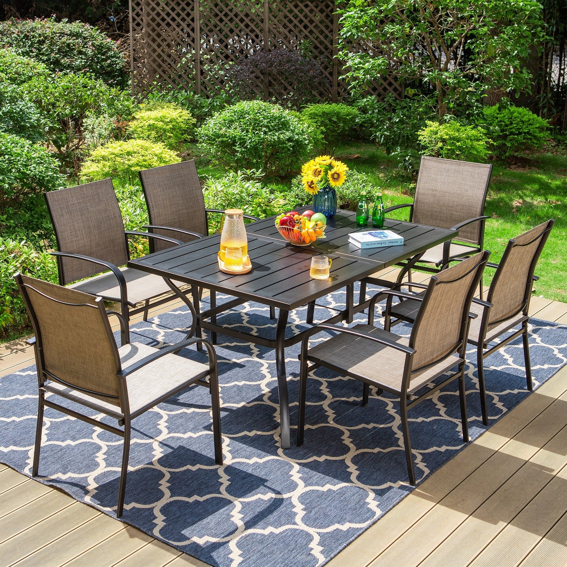 MAISON ARTS Set da pranzo per patio da 7 pezzi con tavolo rettangolare in metallo e 6 sedie da pranzo in textilene