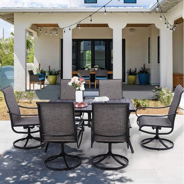 MAISON ARTS Set da pranzo da giardino da 7 pezzi con sedie girevoli in textilene