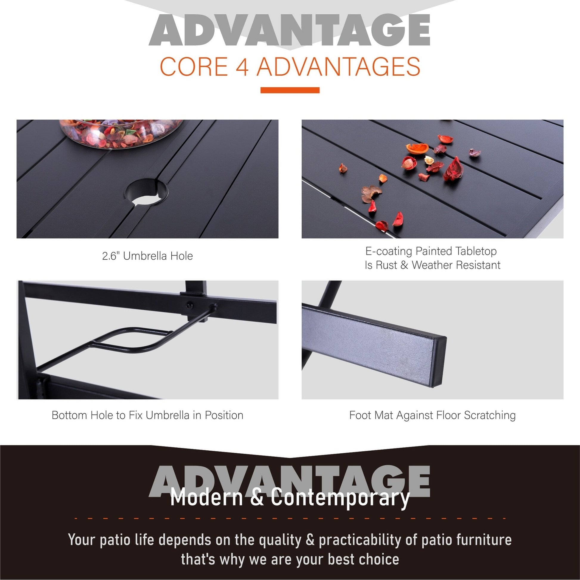 • Il tavolo ha un foro per ombrellone da 2,6 pollici (copertura inclusa)
