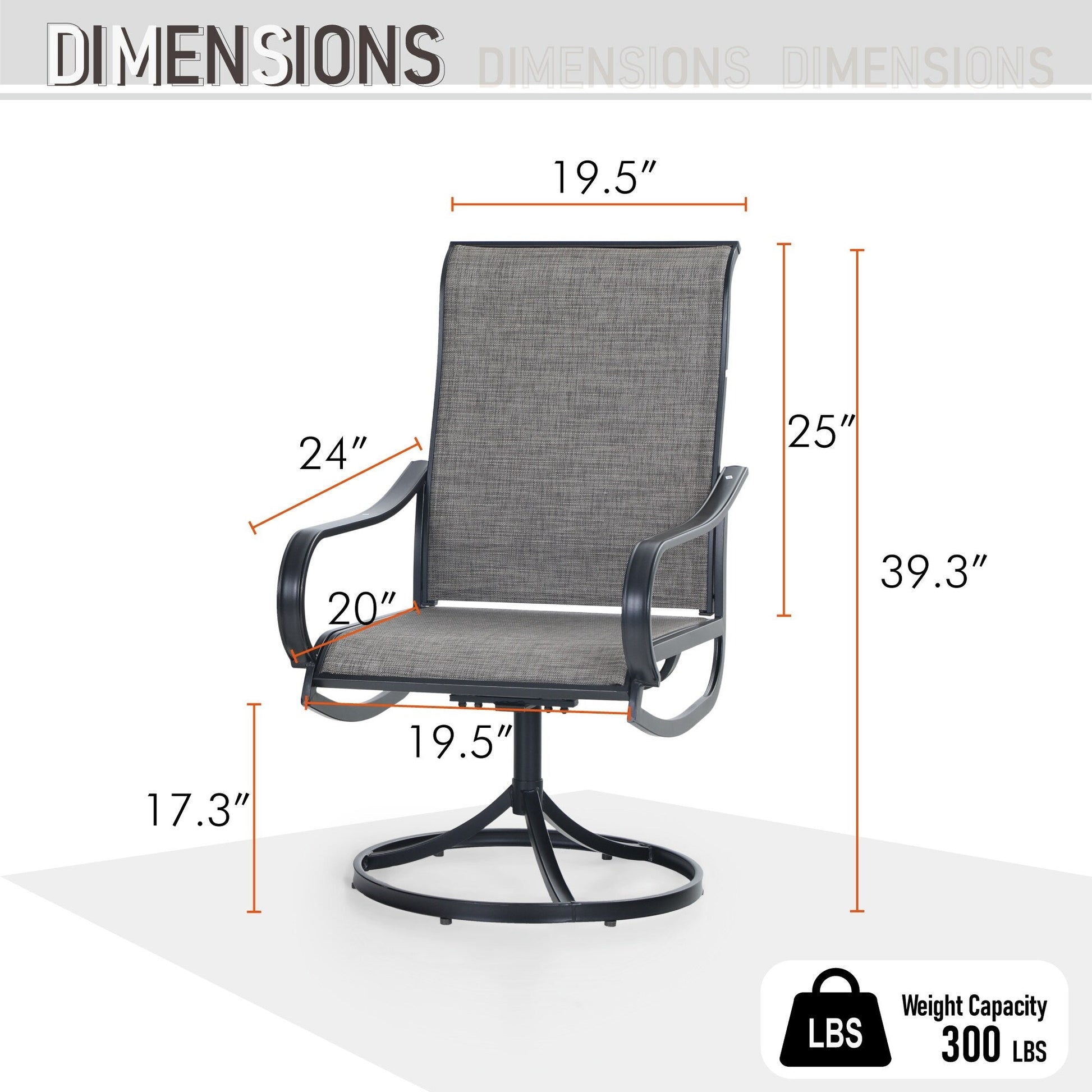 • Dimensioni della sedia girevole: 19,5 pollici di larghezza x 24 pollici di profondità x 39,3 pollici di altezza