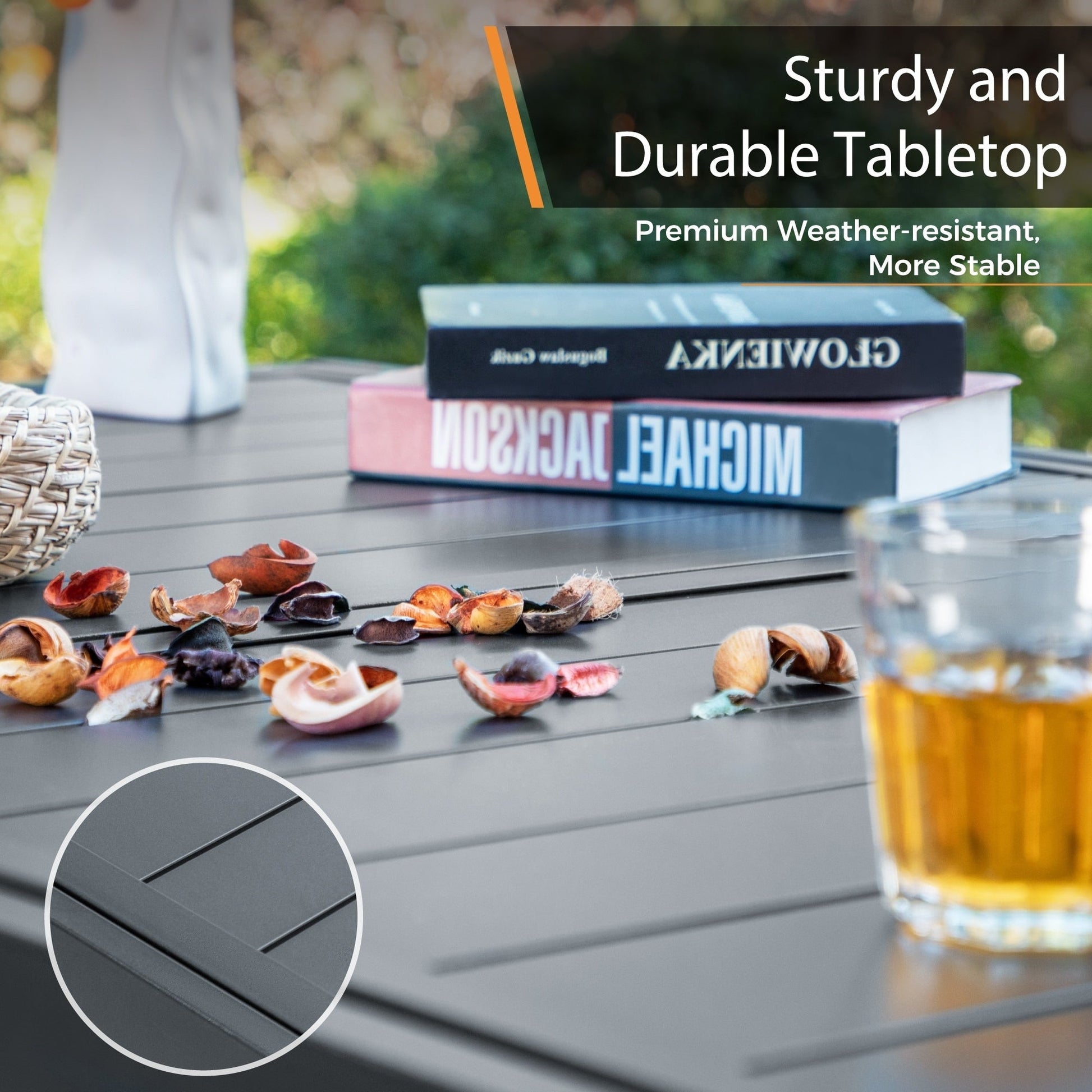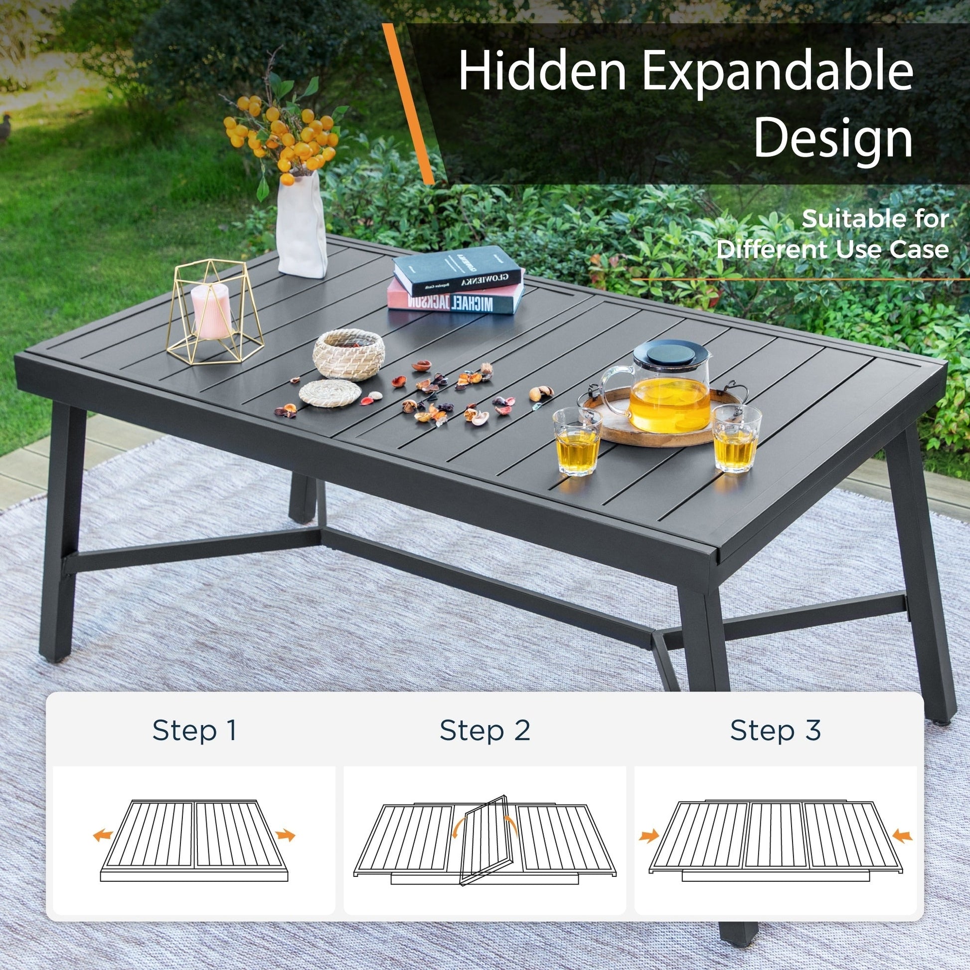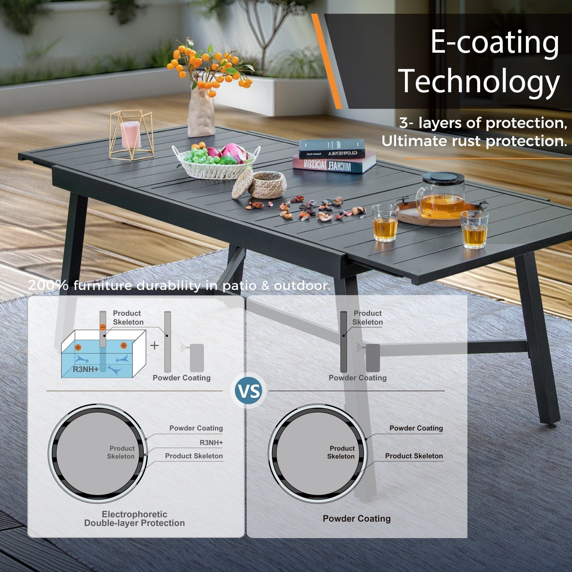 MAISON ARTS Set da pranzo per esterni da 7/9 pezzi con tavolo rettangolare espandibile in metallo e 6/8 sedie da pranzo in textilene