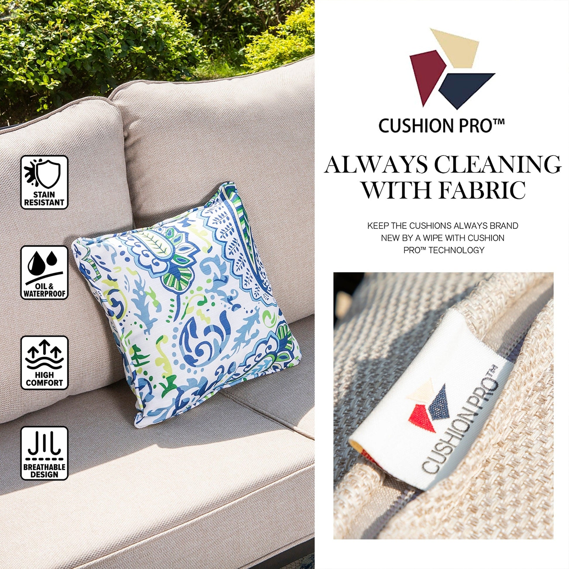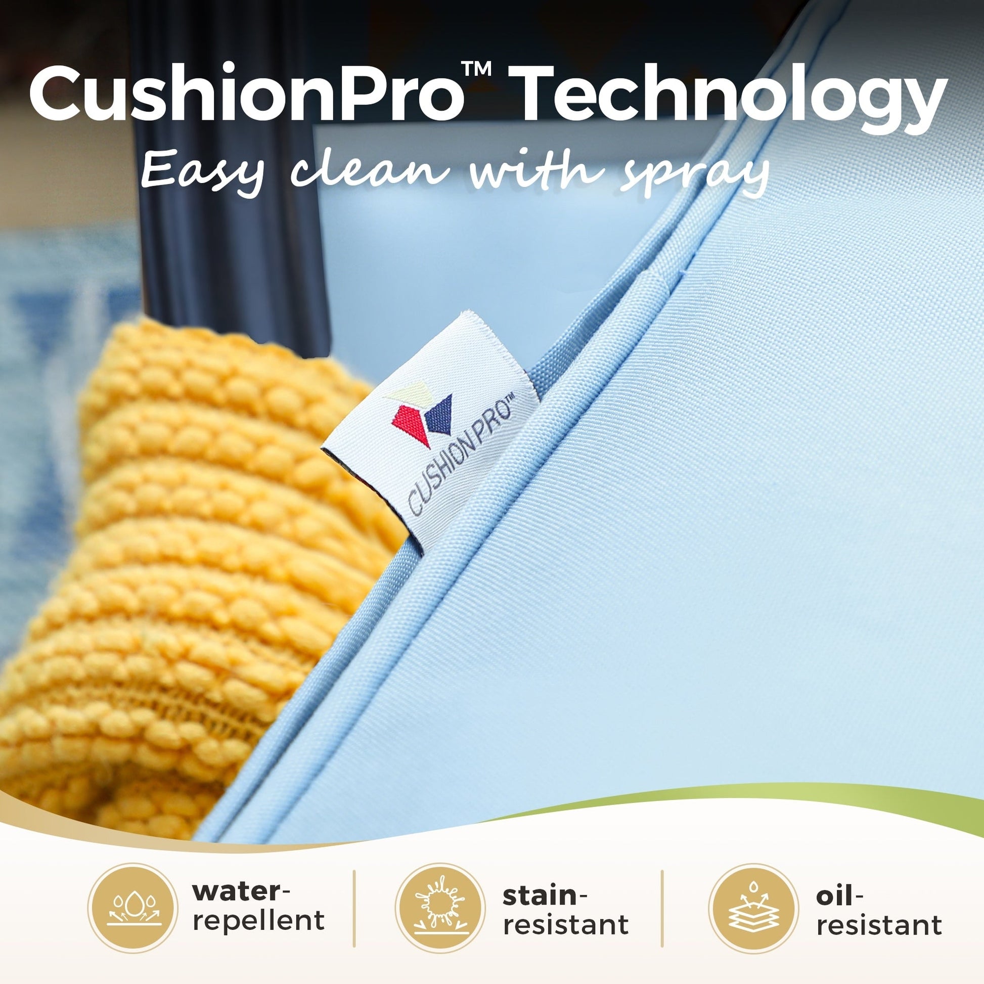 - Cuscino in tessuto waffle olefin da 230 g, resistente all'acqua, all'olio e alle macchie.