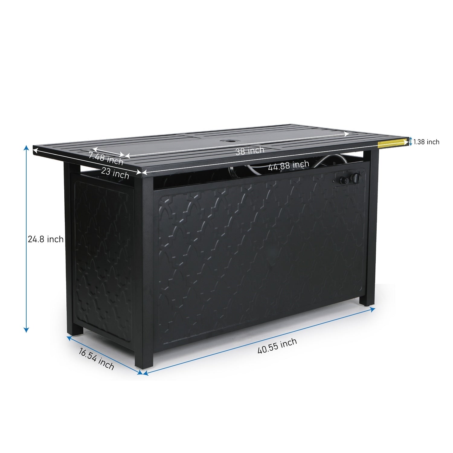 - Aggiungi calore ed eleganza al tuo spazio esterno con il tavolo da fuoco rettangolare in metallo da 50.000 BTU
