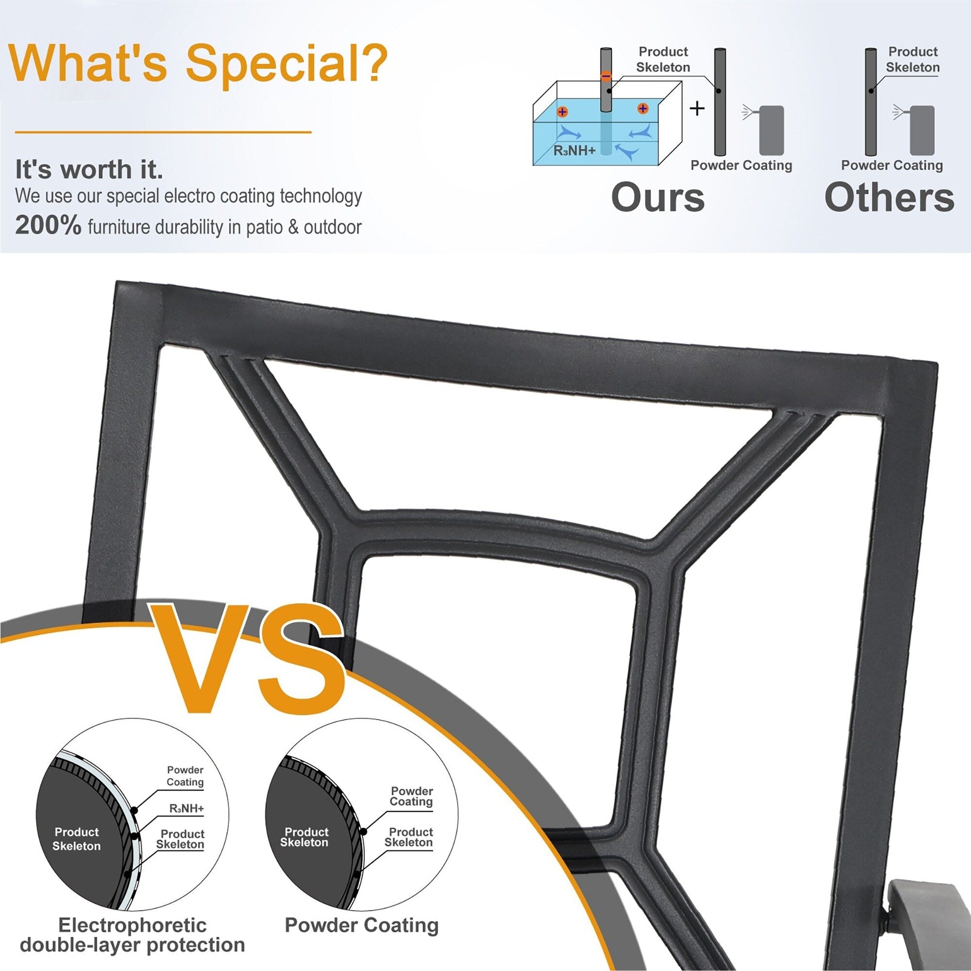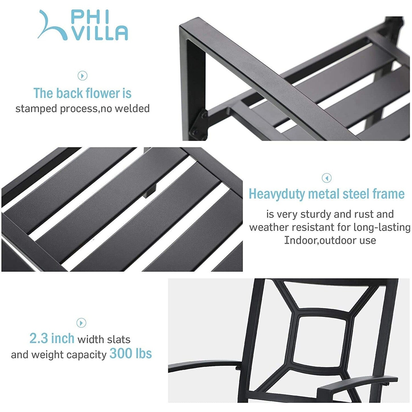 Rinnova la tua zona pranzo con questo set da 3 pezzi. Realizzato in metallo di alta qualità, questo set di sedie da pranzo in metallo è perfetto non solo per l'uso esterno in giardino, prato, patio, piscina, per un caffè, ma anche per l'uso interno in cucina, soggiorno e sala da pranzo.