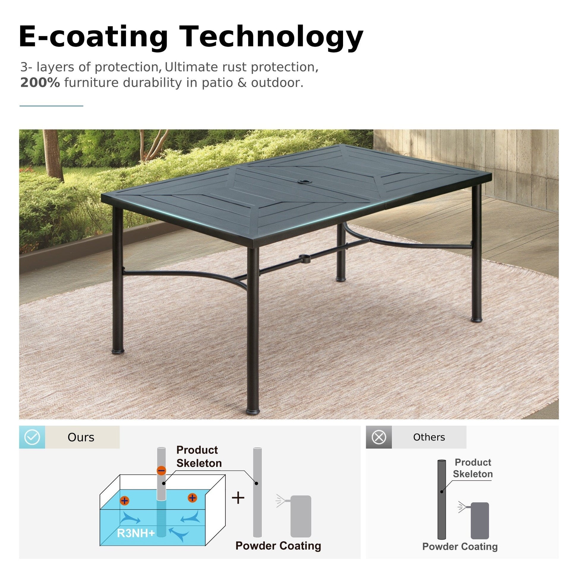 MAISON ARTS Set da pranzo per patio esterno per 6/8 persone, 6/8 sedie impilabili in metallo, 1 tavolo rettangolare espandibile