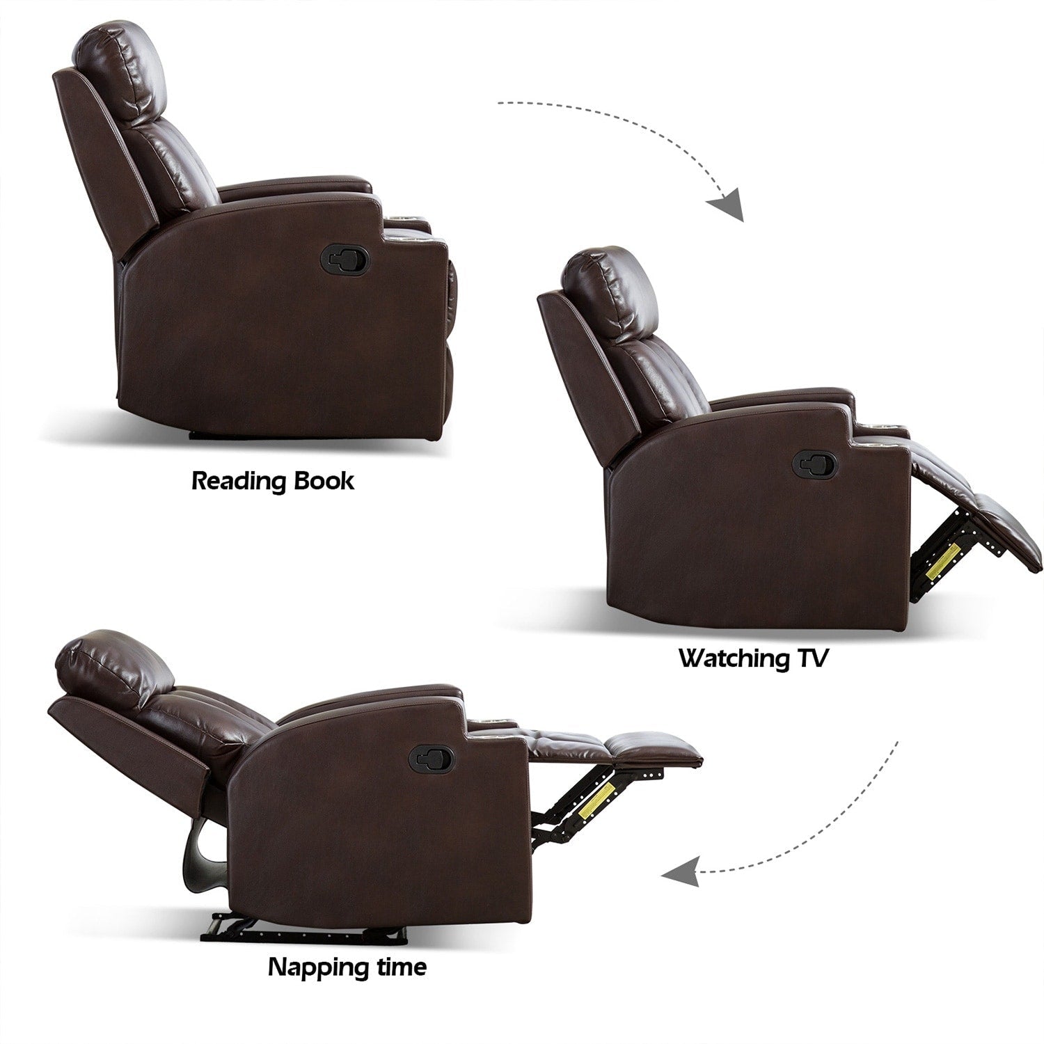 Poltrona reclinabile manuale con massaggio e riscaldamento, divano con 2 portabicchieri, tessuto traspirante