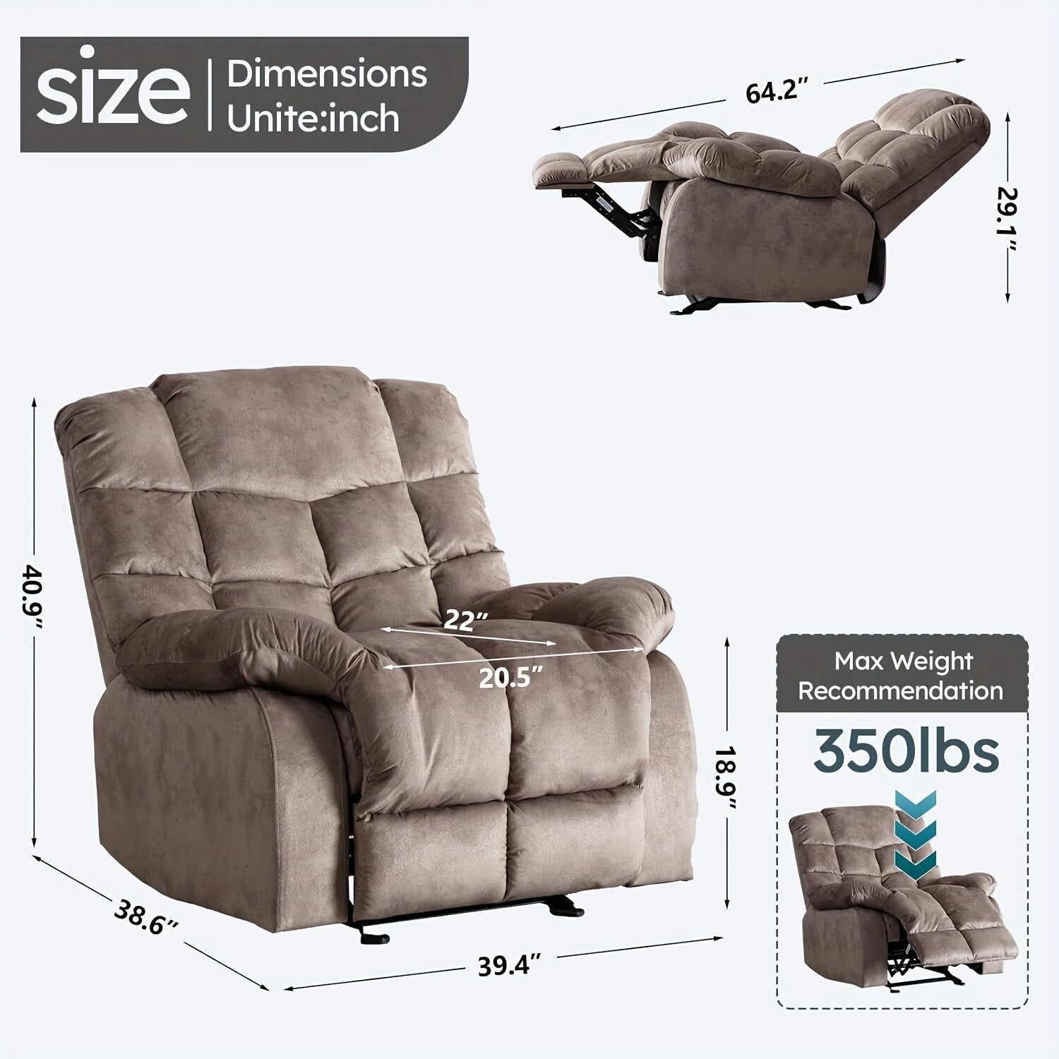 Divano reclinabile manuale imbottito in tessuto traspirante per...