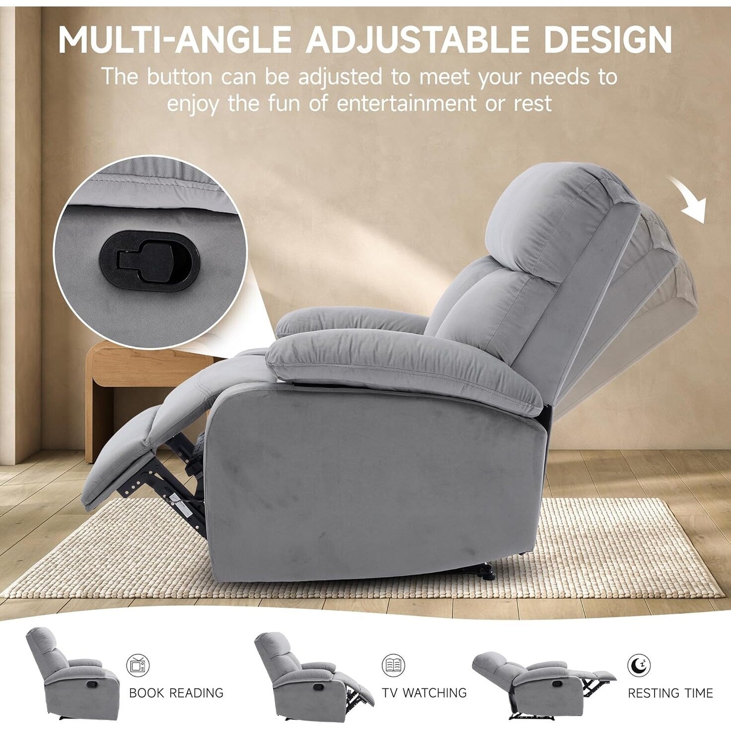 Poltrona reclinabile in stile moderno: le poltrone reclinabili nere per adulti sono progettate per essere classiche e versatili, donando alla tua casa un look nuovo e immediato. Possono essere utilizzate come poltrone reclinabili per il soggiorno o come poltrone reclinabili con schienale alto. Le nostre poltrone reclinabili manuali per il soggiorno si abbinano perfettamente a una varietà di stili moderni di mobili/poltrone reclinabili per il soggiorno e sono una scelta elegante per soggiorni, camere da letto, teatri e uffici, camper/roulotte.