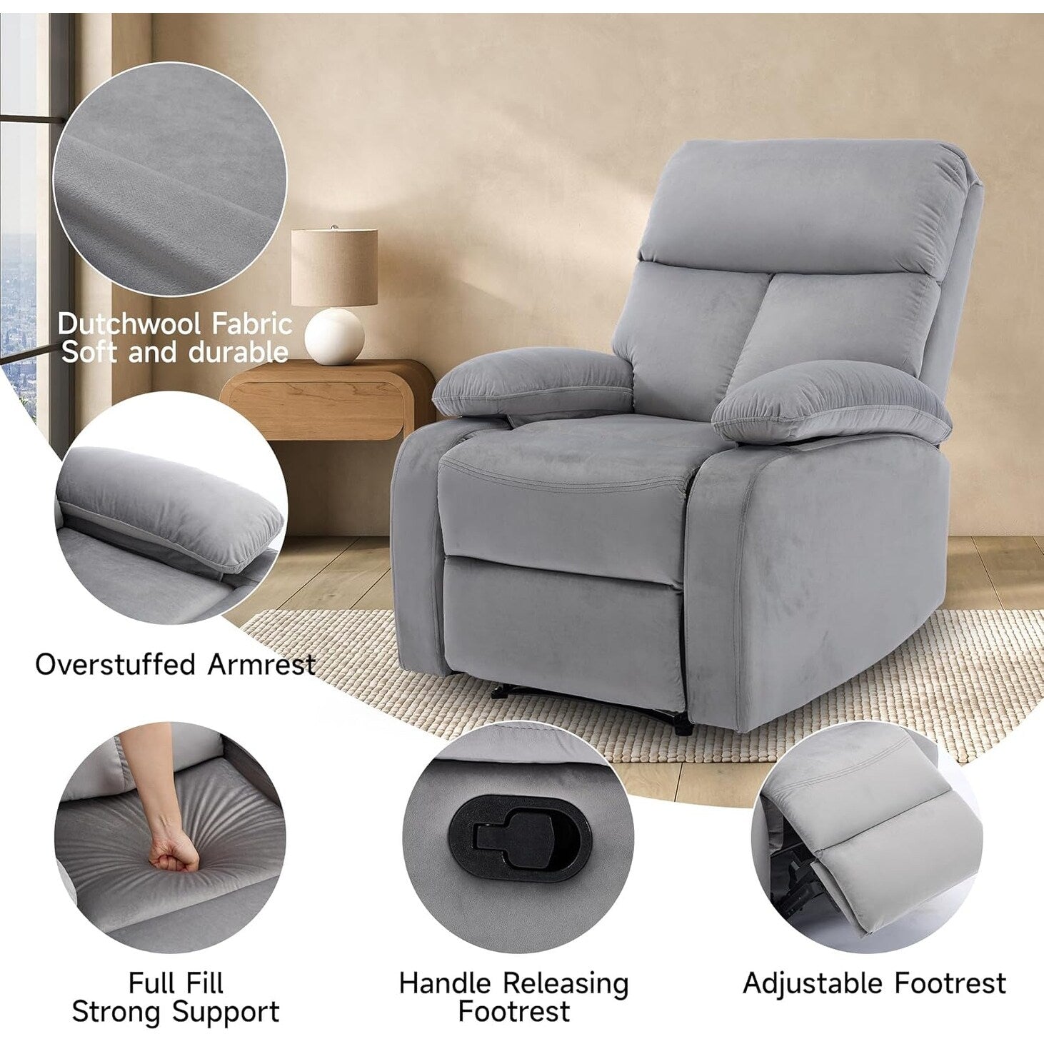 Facile da montare: meno di 5 minuti per il montaggio con istruzioni incluse per le piccole poltrone reclinabili da soggiorno. La piccola poltrona reclinabile manuale hzlagm offre assistenza gratuita per problemi, parti danneggiate e mancanti con 1 anno di garanzia. Questa piccola poltrona reclinabile per adulti è un elemento essenziale per la casa e un regalo perfetto per la tua famiglia.