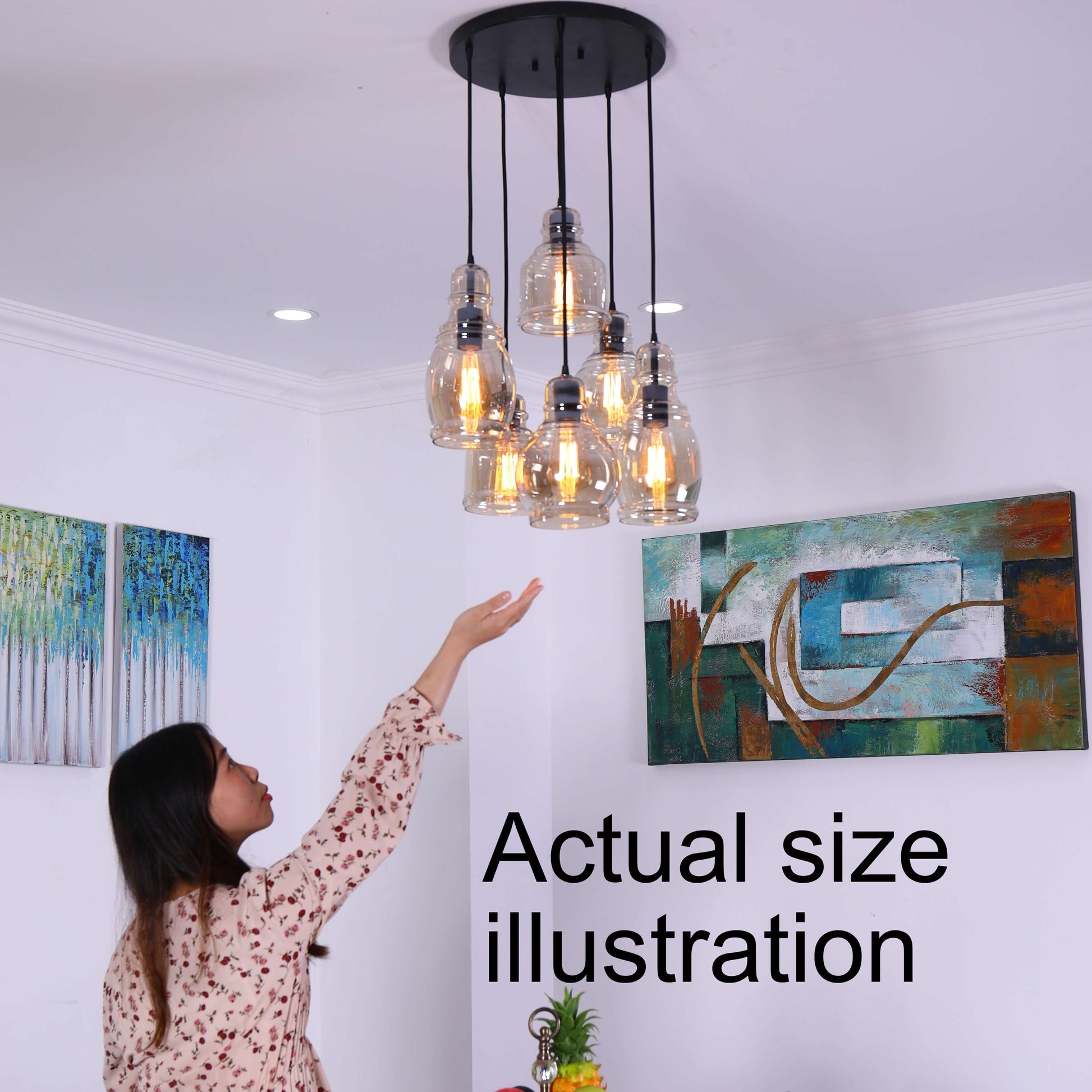 Esalta l'arredamento della tua casa con l'elegante e artistica lampada a sospensione di Mariana. Lo stile di transizione, la finitura nero anticato e i paralumi in vetro color cognac creano un look unico e contemporaneo che valorizzerà qualsiasi spazio. Questa lampada a sei luci è perfetta per l'installazione sopra un tavolo da pranzo o in un ingresso poco illuminato per aggiungere un tocco di raffinatezza.