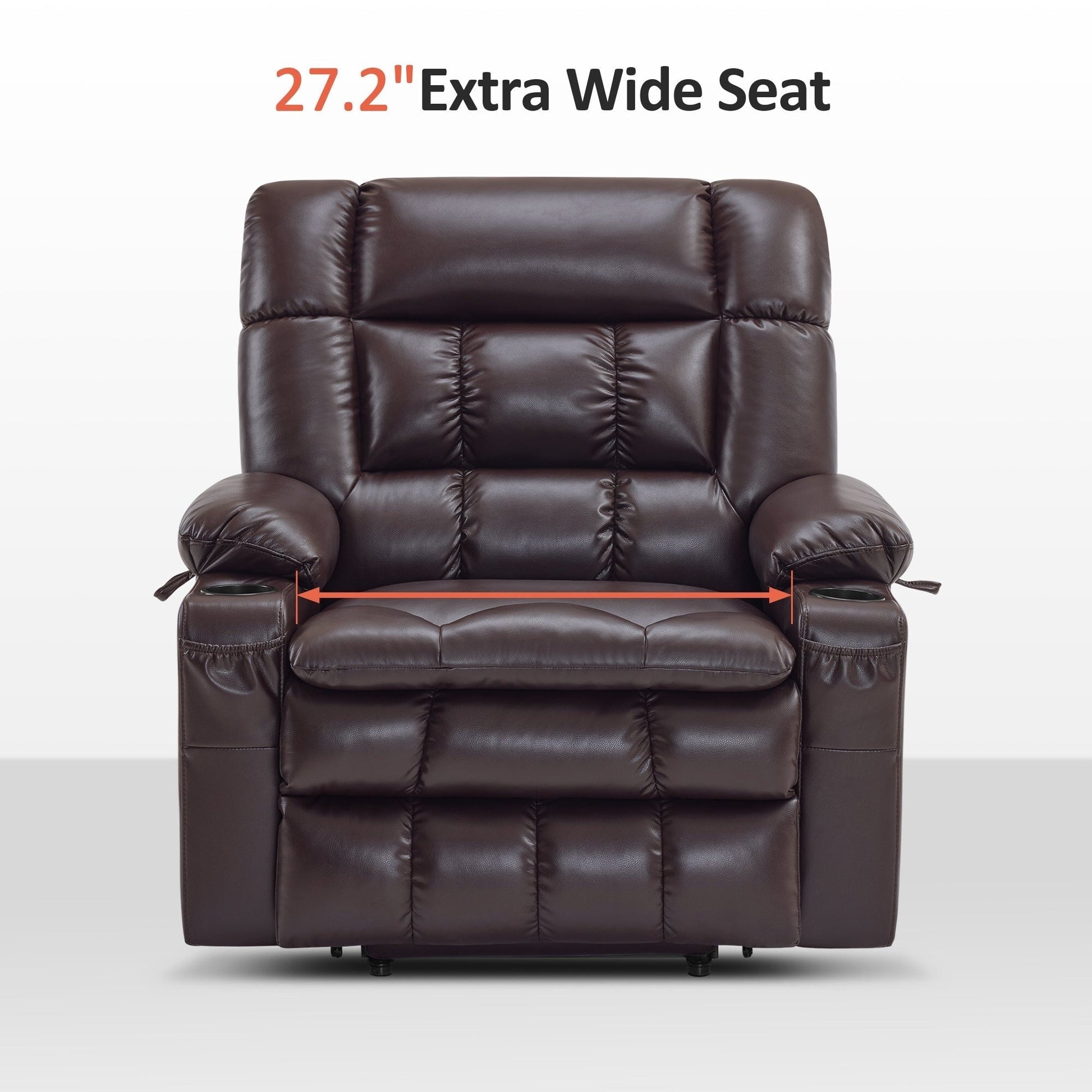 • Sedile extra largo: la larghezza del sedile di 27,2'' offre ampio spazio e supporto per le persone di corporatura robusta o per coloro che necessitano di spazio extra, consentendo all'utente di regolare la postura più liberamente senza alcuna sensazione di costrizione (altezza consigliata: 5'3'-5'9')