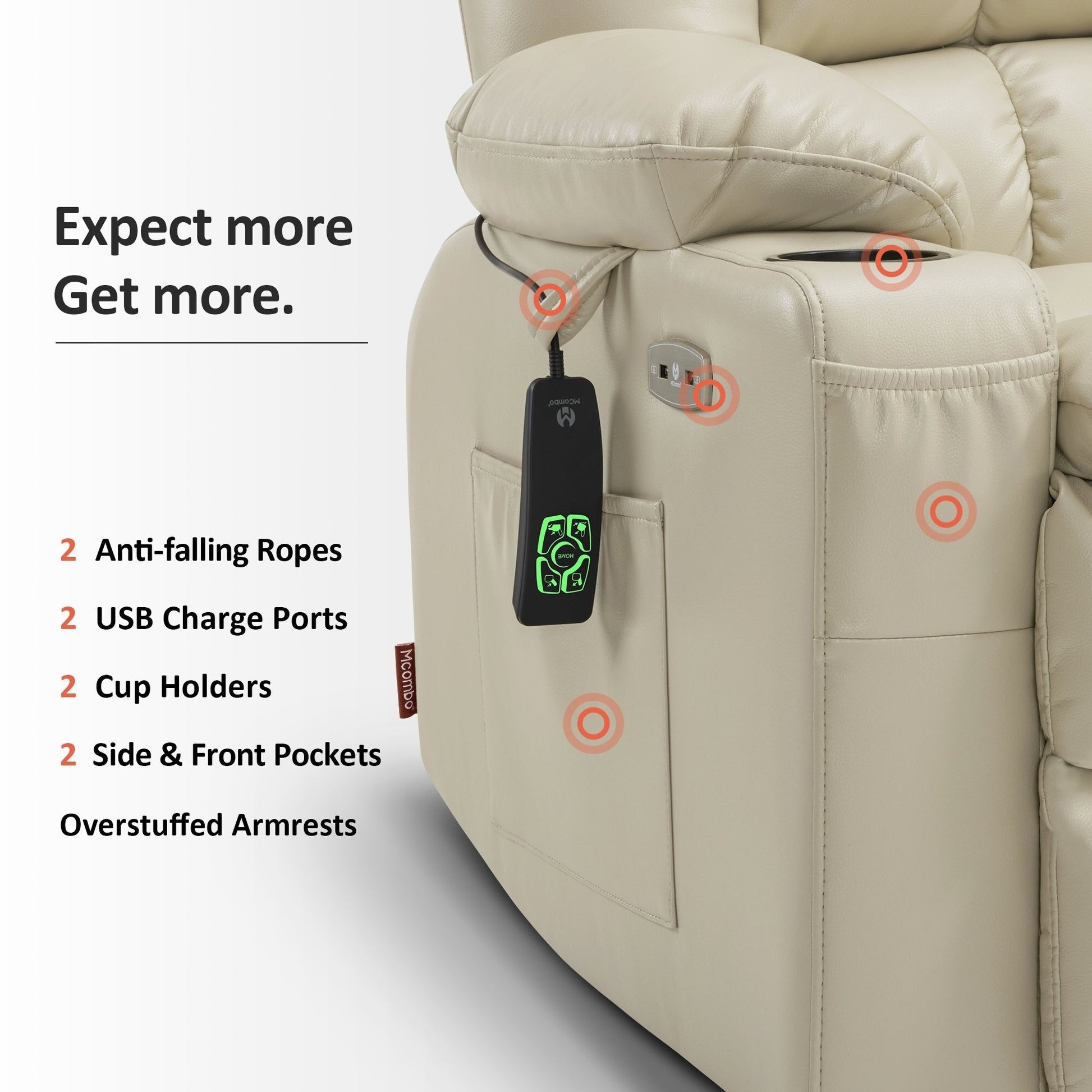 Poltrona reclinabile elettrica MCombo a doppio motore con massaggio e calore, posizione infinita, similpelle R7897 (media-larga)
