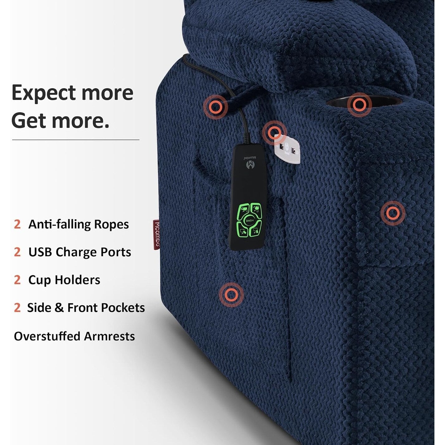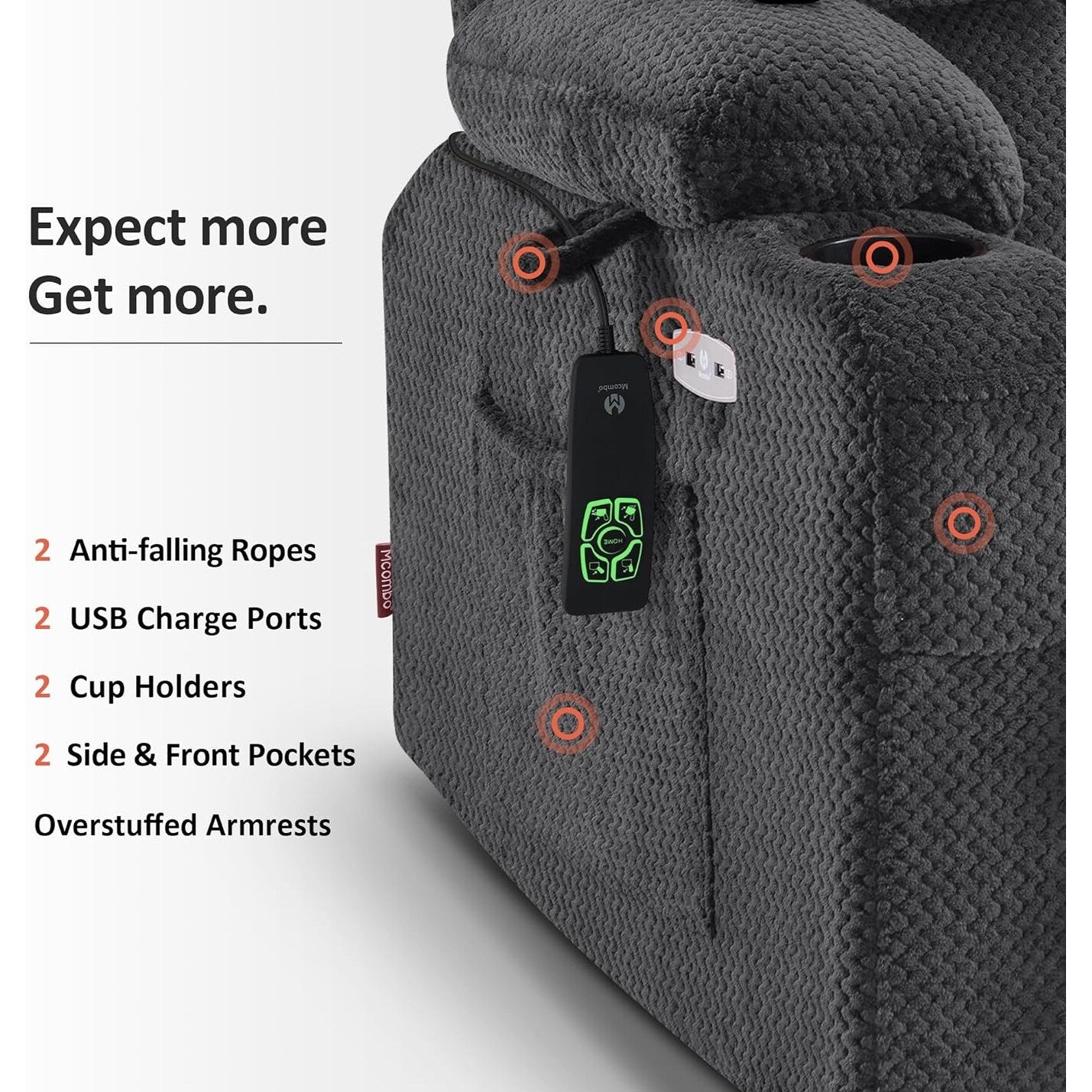 • Porte di ricarica USB e portabicchieri: le doppie porte USB e i portabicchieri nella poltrona reclinabile ti consentiranno di mettere la tua bevanda sul portabicchieri e di caricare i tuoi dispositivi mobili mentre ti godi un film o le tue app preferite