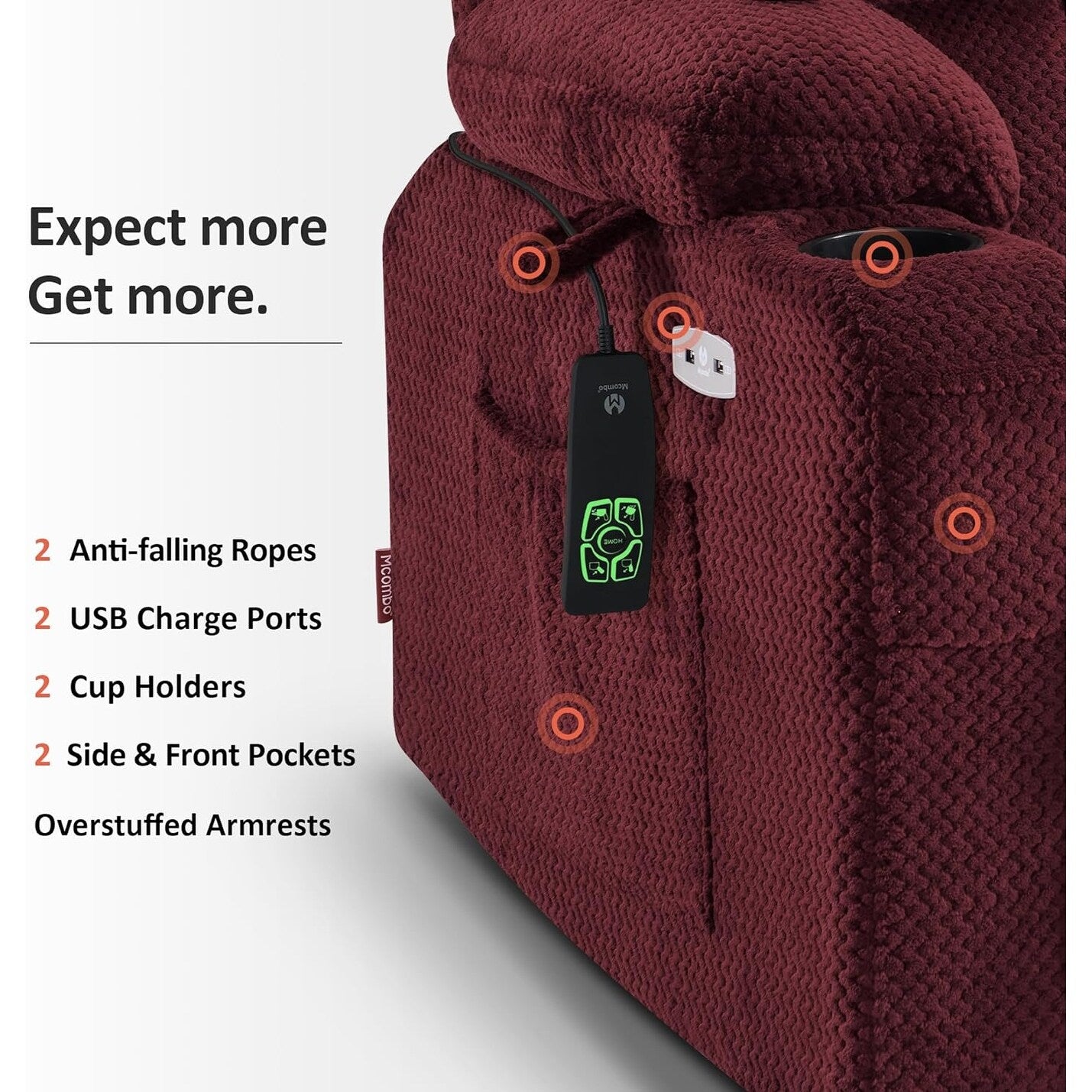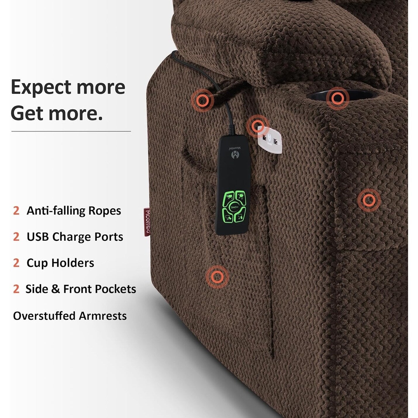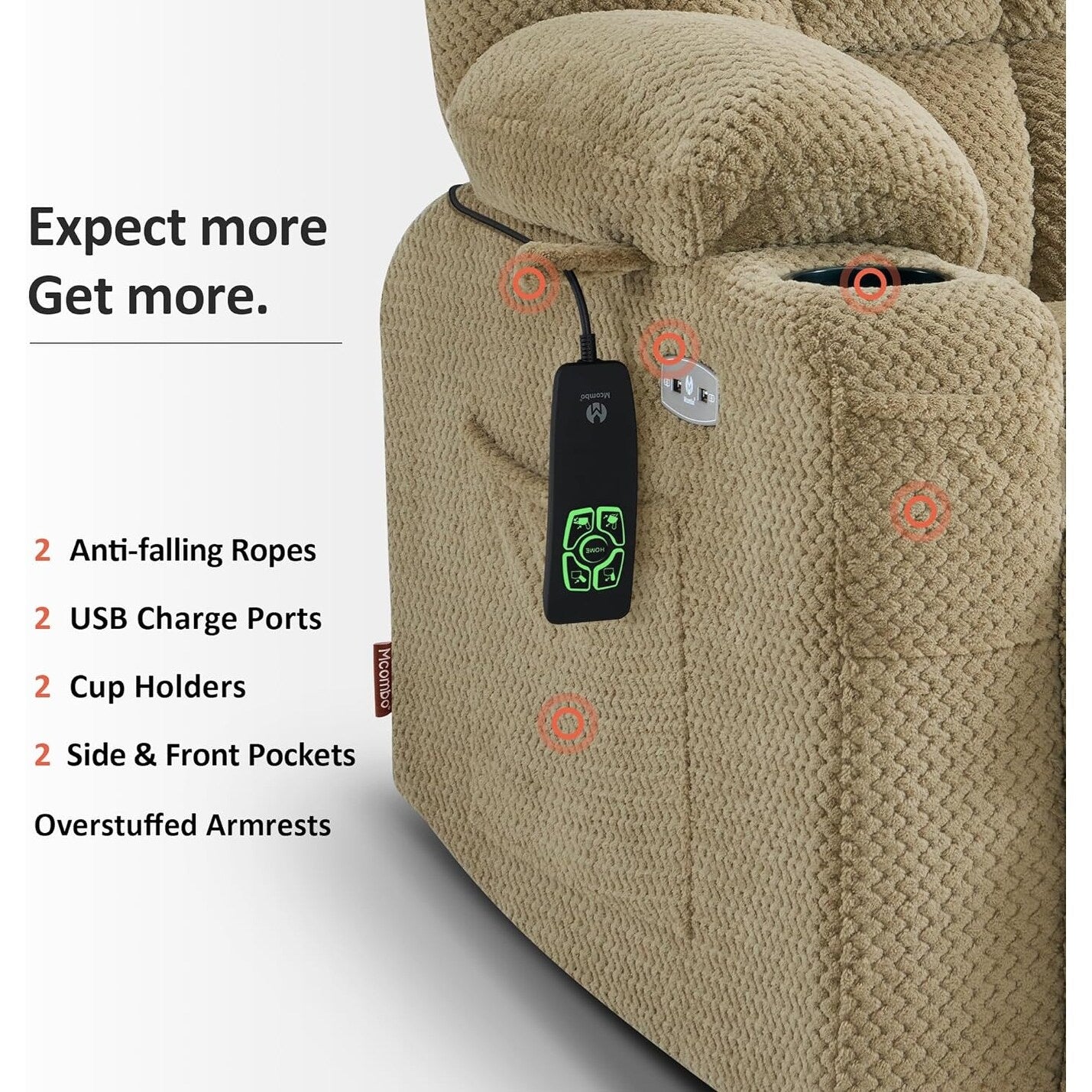 Poltrona reclinabile elettrica MCombo a doppio motore con massaggio e calore, posizione infinita, tessuto R7894 (piccola-larga)