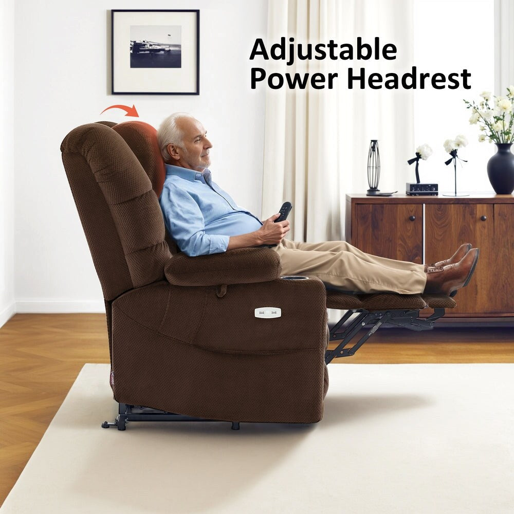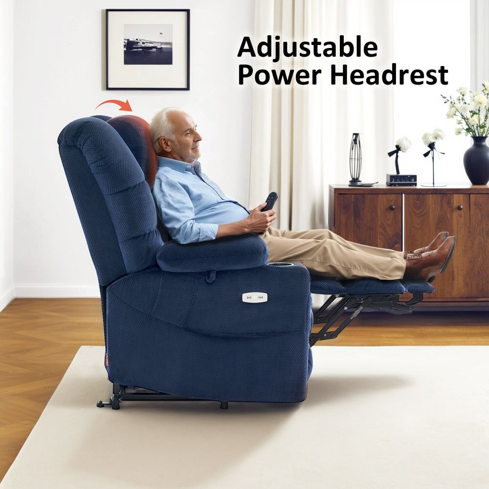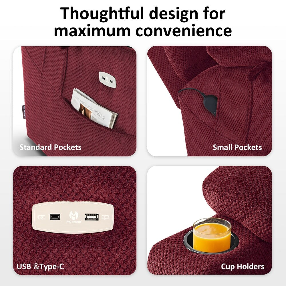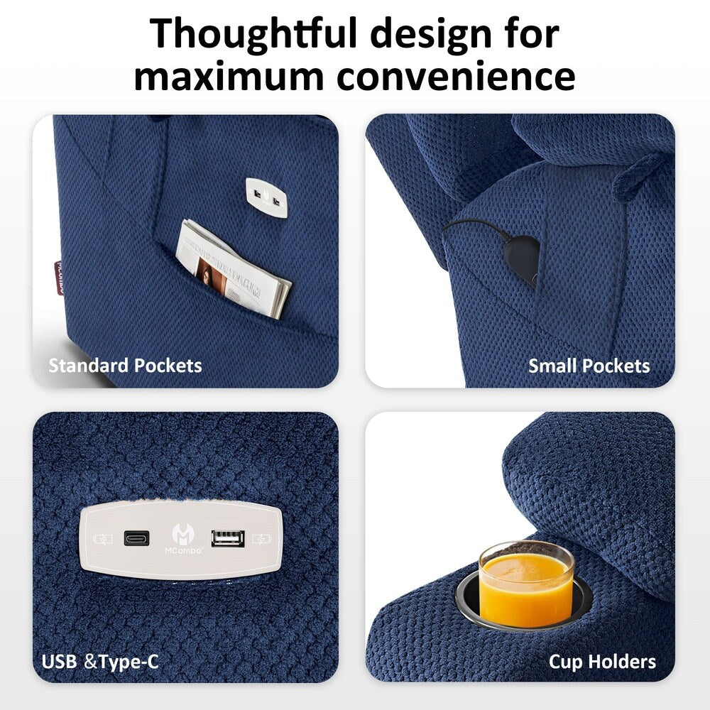 Poltrona reclinabile elettrica MCombo Large con doppio motore, massaggio e doppio riscaldamento per anziani alti e di grossa taglia, tessuto 7634