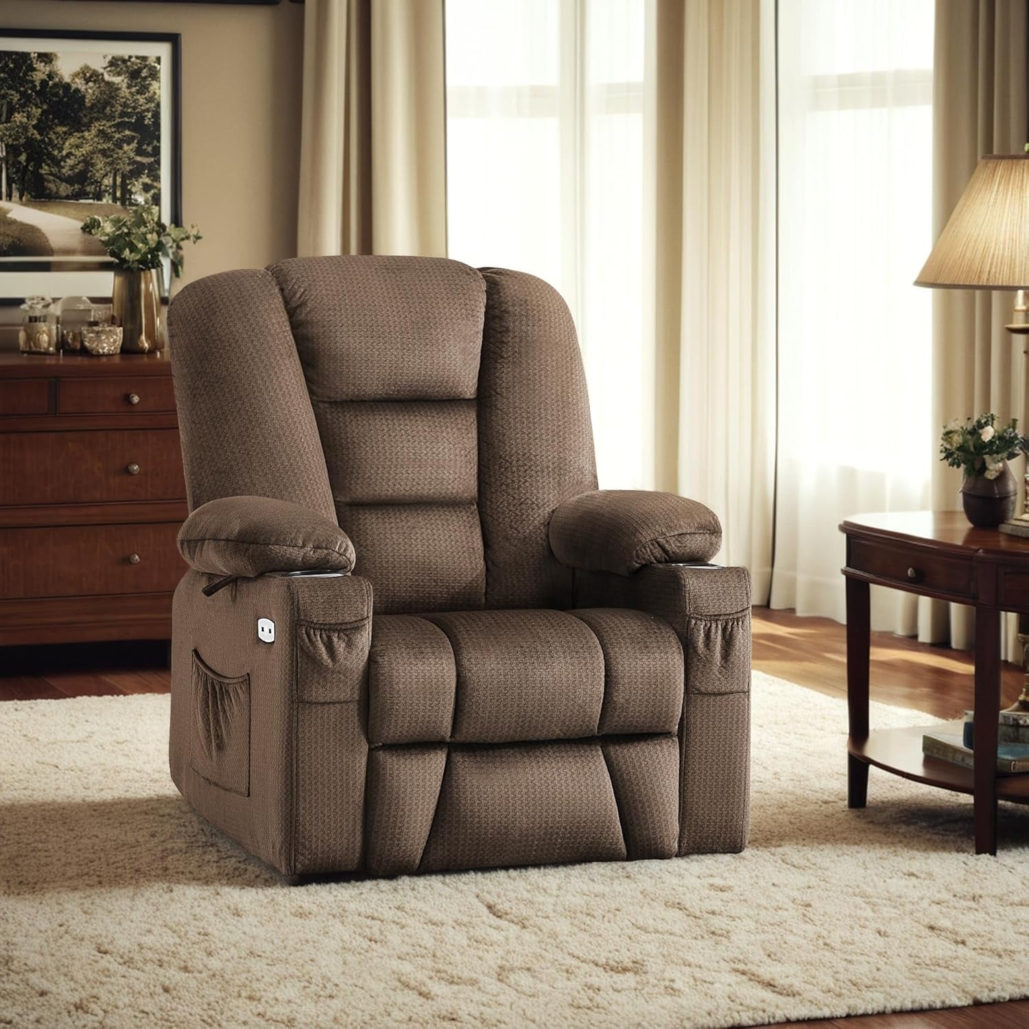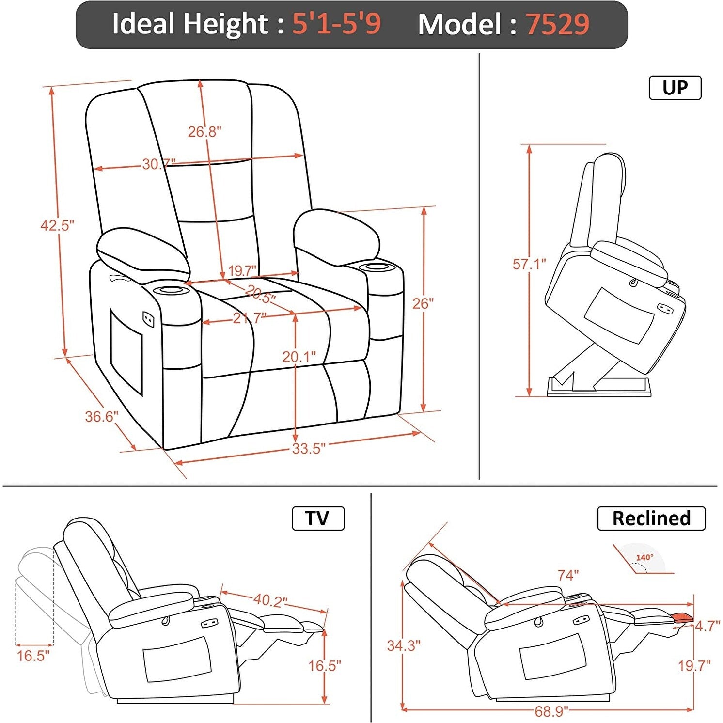 Poltrona reclinabile elettrica MCombo con massaggio e calore per anziani, poggiapiedi esteso, porte USB, tessuto (media)