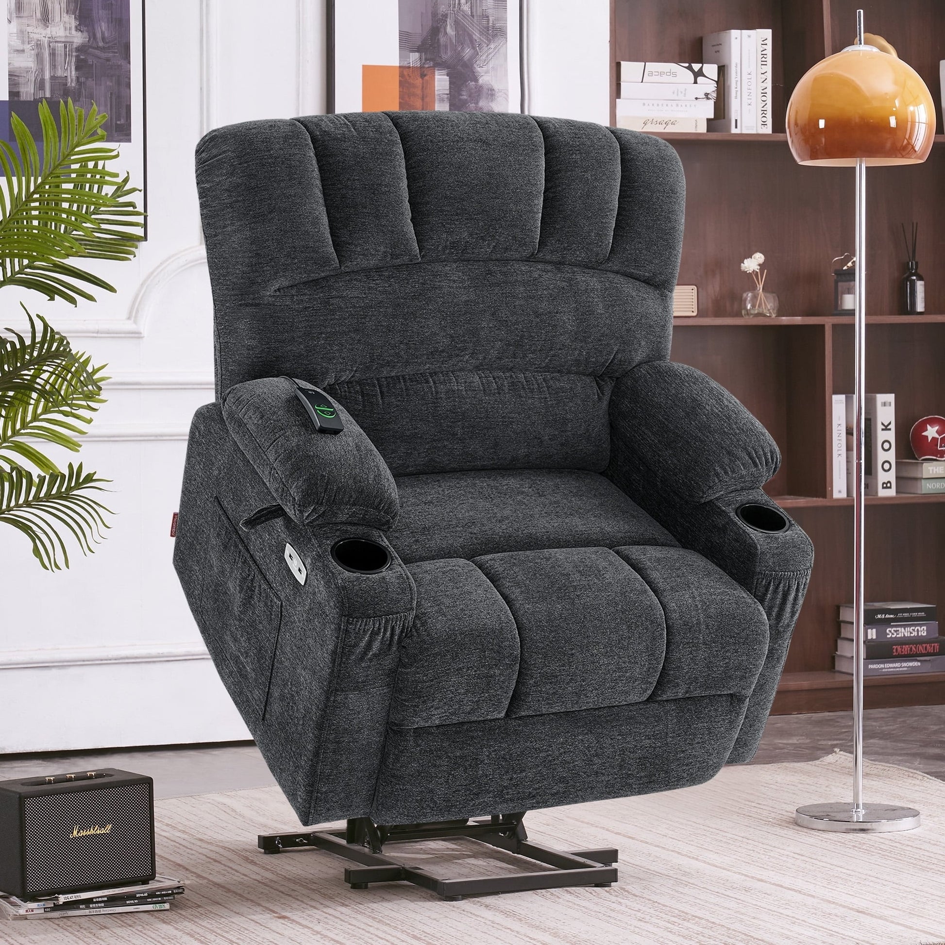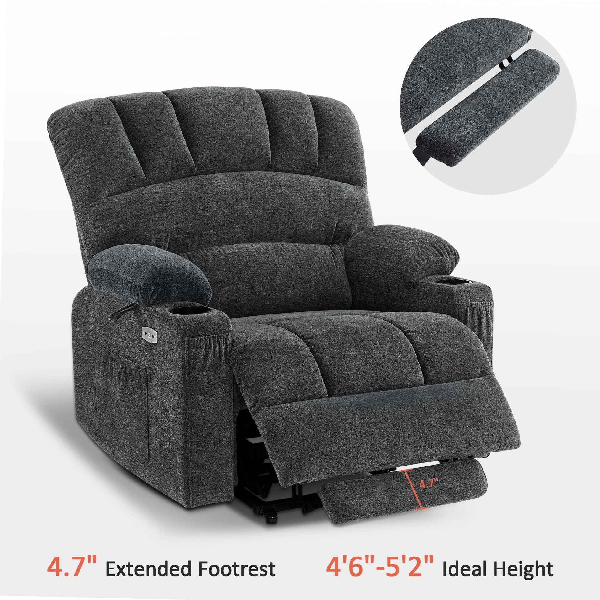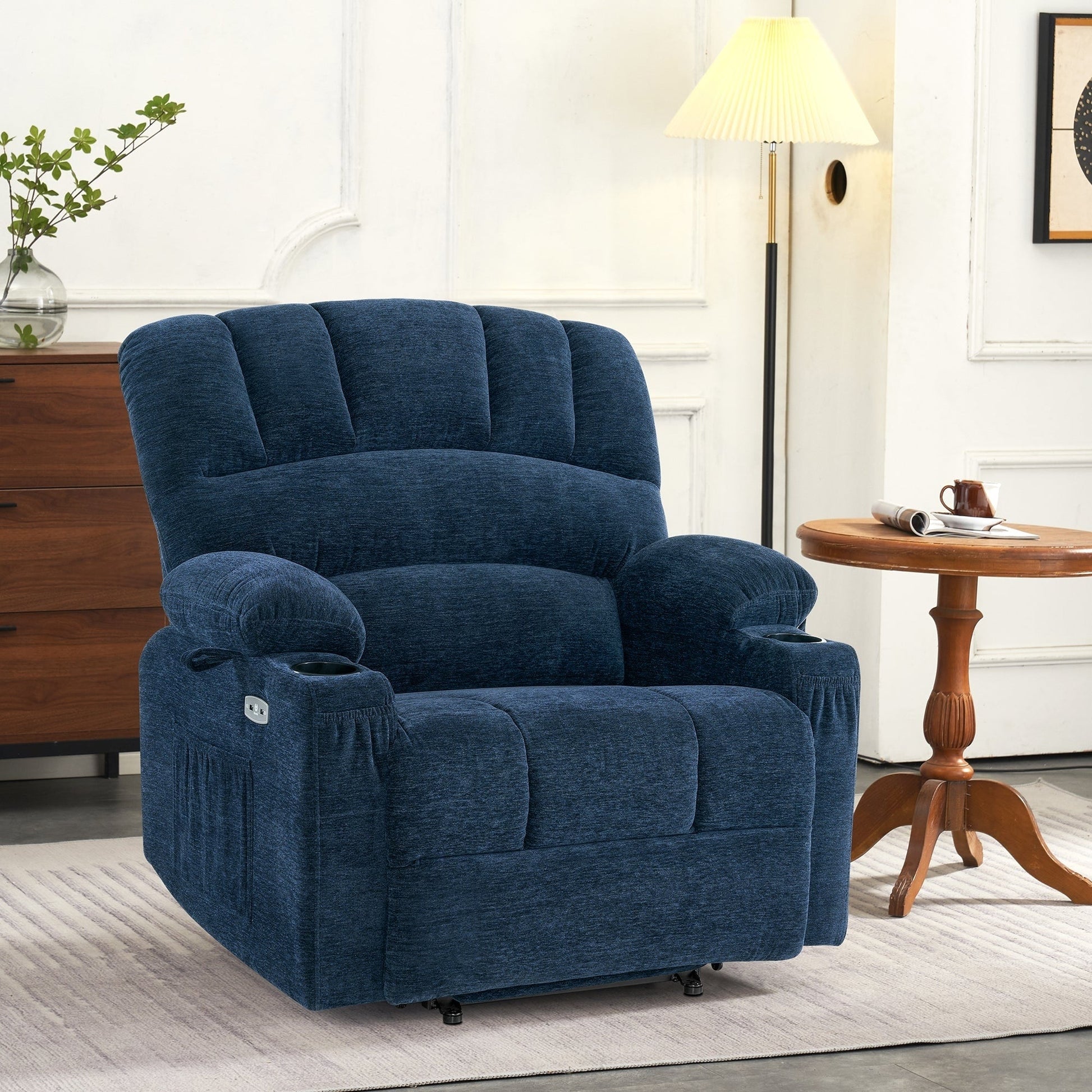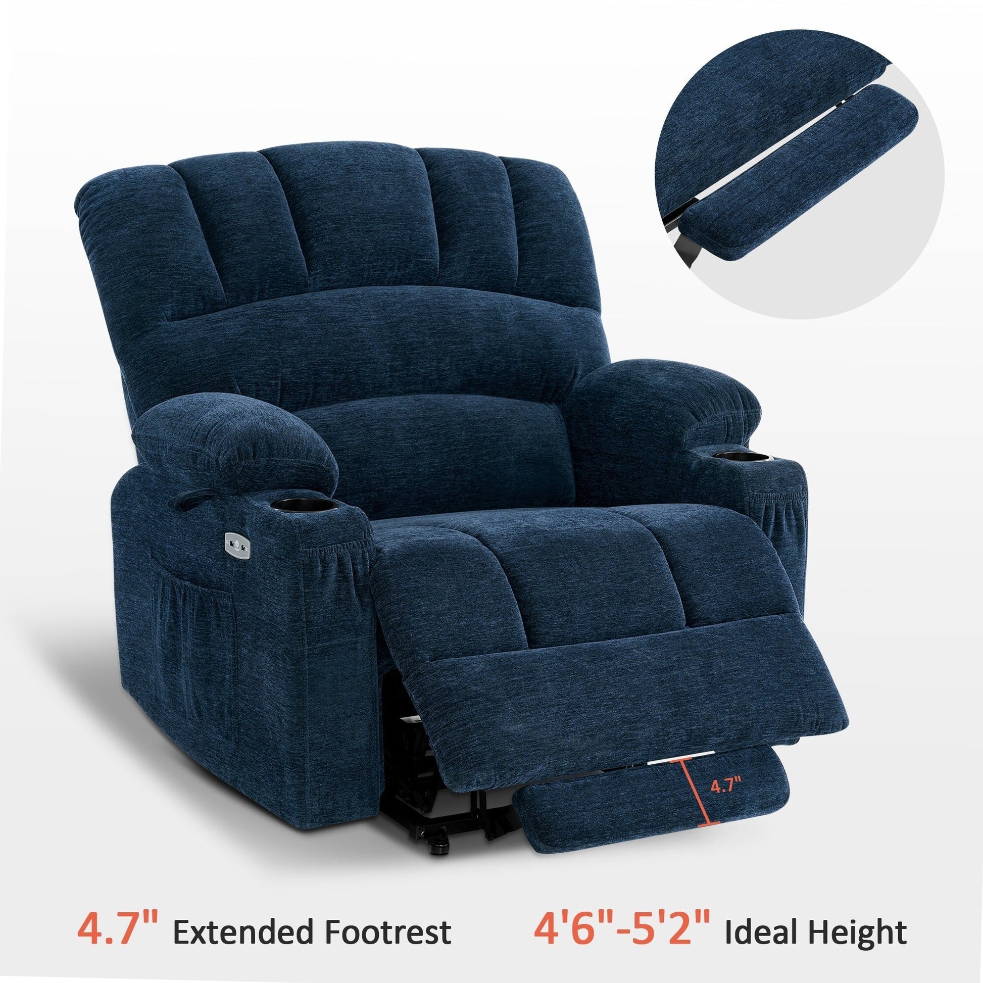 Poltrona reclinabile MCombo con massaggio e calore per anziani di corporatura robusta, tessuto R7093 (piccola-larga)