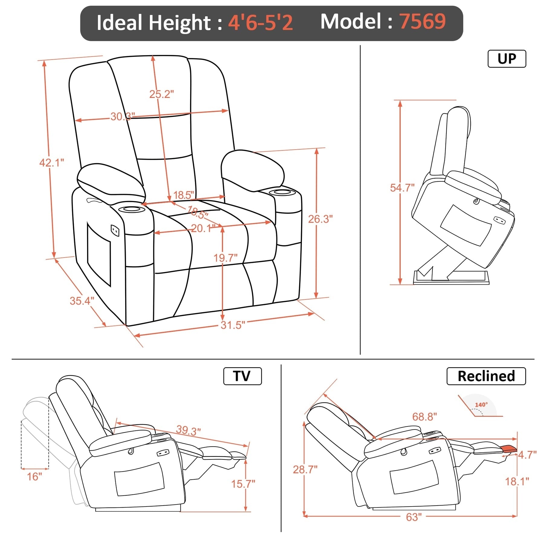 Poltrona reclinabile elettrica MCombo Small con massaggio e...