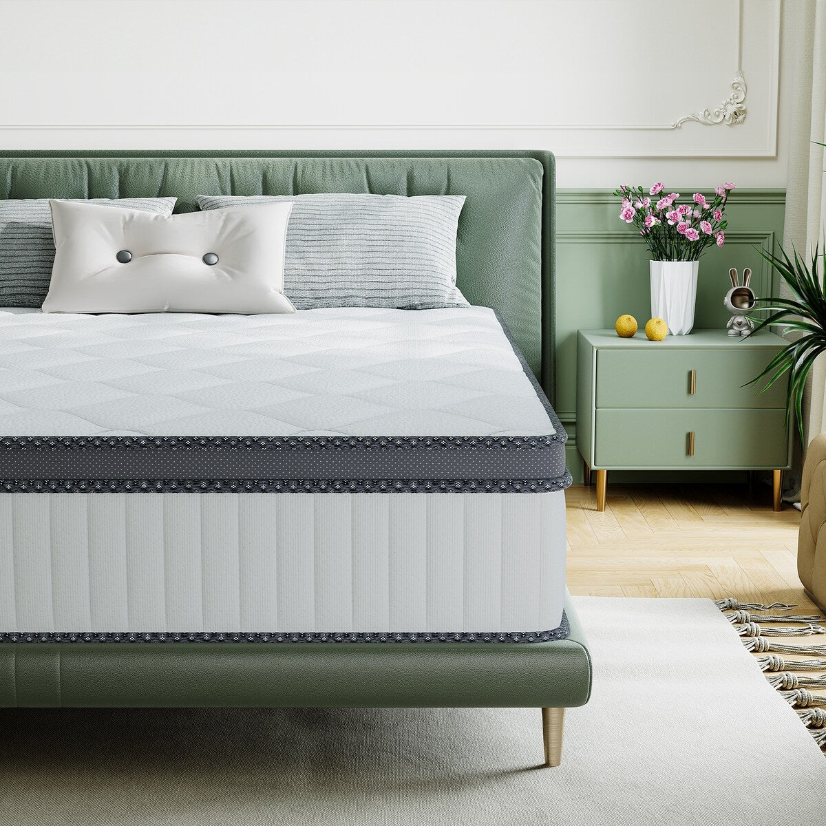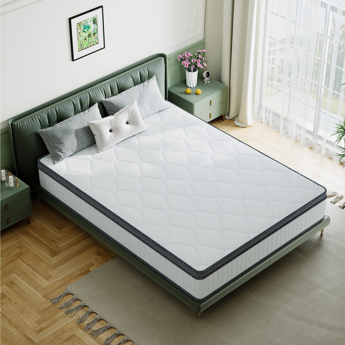 Benvenuti da SweDrea, dove uniamo un sonno di qualità superiore a un'eleganza moderna. I nostri materassi ibridi sono dotati di molle più spesse del 23,5% per un supporto superiore, materiali ignifughi certificati SGS e memory foam in gel ad alta densità per un sonno fresco e riposante. Ci occupiamo anche di problemi come la formazione di pilling, la rumorosità e la compatibilità con le reti del letto per garantire un'esperienza di sonno perfetta.