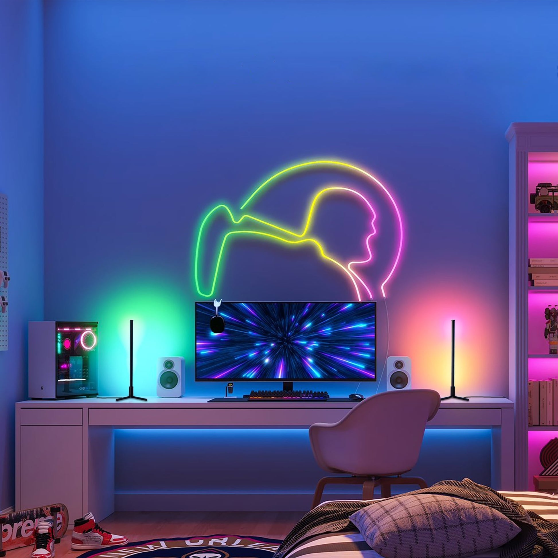 Valorizza il tuo spazio con la nostra versatile lampada da tavolo angolare dotata di striscia LED RGB di alta qualità per vivaci effetti di illuminazione. Goditi 3 livelli di luce bianca ed effetti di luce RGB, tra cui bianco caldo, bianco freddo e bianco freddo, oltre a impostazioni dimmerabili. La lampada da scrivania minimalista supporta il controllo tramite APP e il telecomando. Questa lampada salvaspazio include anche una porta di alimentazione USB, rendendola perfetta per le postazioni di gioco. Esalta il tuo arredamento con questa elegante e funzionale illuminazione d'atmosfera da tavolo per la notte. Adatta per sala giochi, studio e camera da letto.