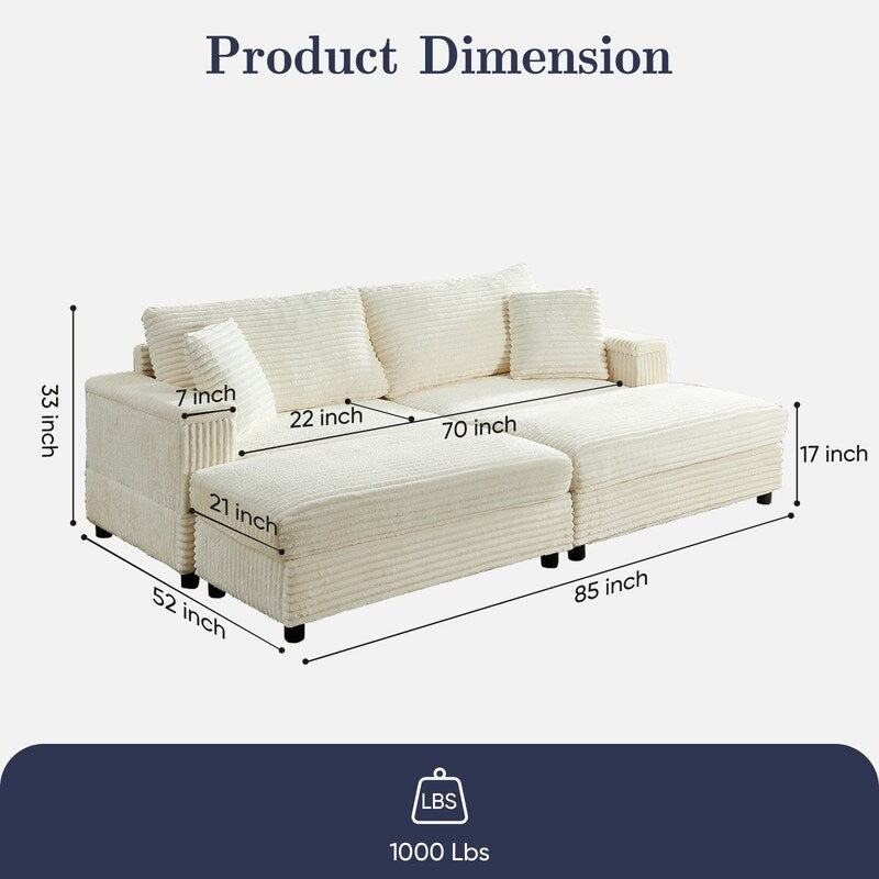 ðŸ'– 〠Durata senza pariã€'Realizzato con precisione e costruito per durare, il nostro divano in velluto a coste presenta una robusta struttura in legno che garantisce stabilità e durata senza pari. Sostenuto da gambe in legno massello nella parte inferiore, lo rende ideale per l'uso quotidiano. Che tu stia rilassandoti con la famiglia o ospitando ospiti, puoi stare certo che questo divano è progettato per resistere alla prova del tempo, mantenendo la sua eleganza e il suo comfort.