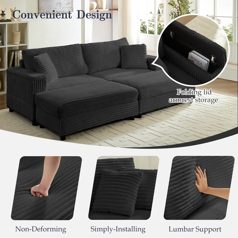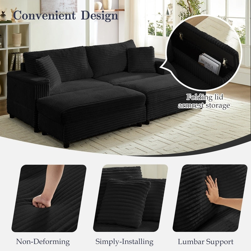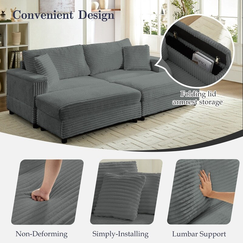 Divano a due posti in velluto a coste Mixoy da 85'' con chaise longue con contenitore e braccioli, poltrona reclinabile imbottita a 2 posti per interni