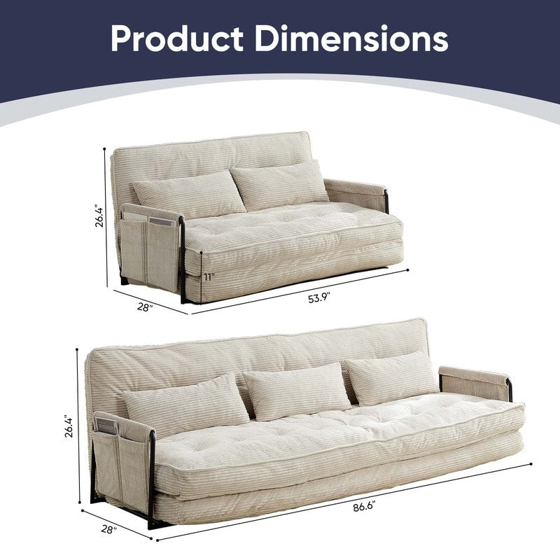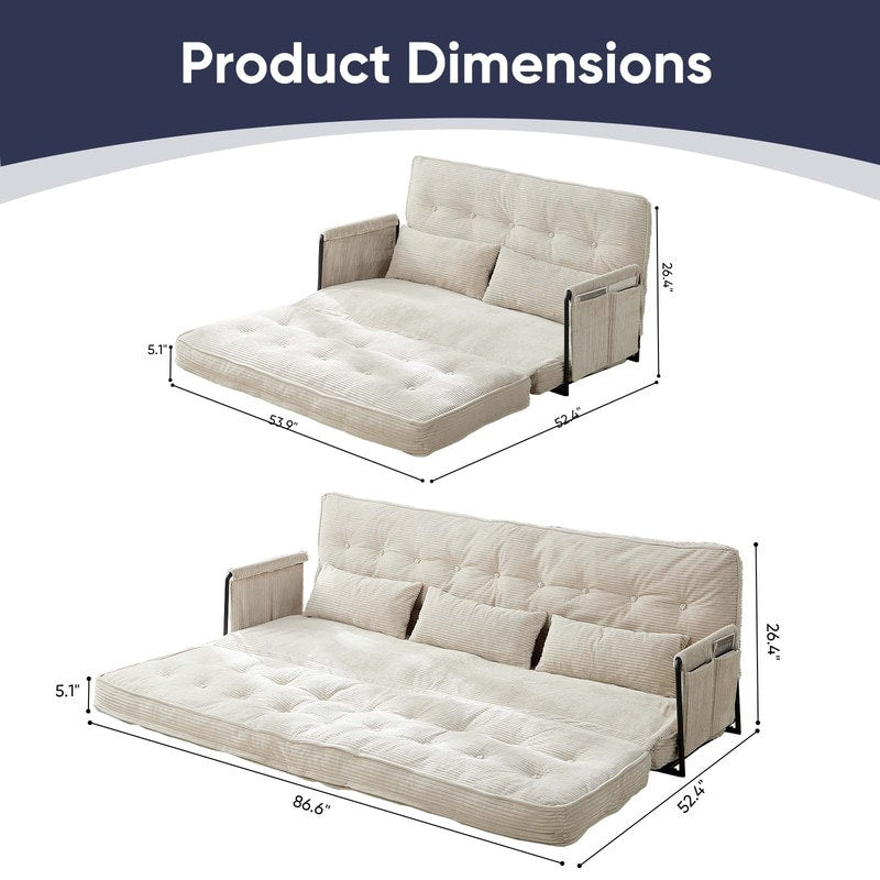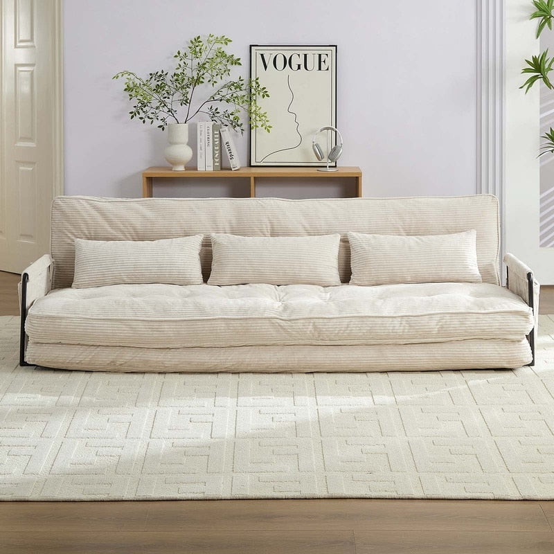 • Cuscini comodi: questo divano letto è dotato di comodi cuscini, che possono essere utilizzati come supporto per la vita quando si è seduti o come cuscini per dormire. Sono dello stesso colore, quindi non è necessario abbinarli ad altri cuscini.
