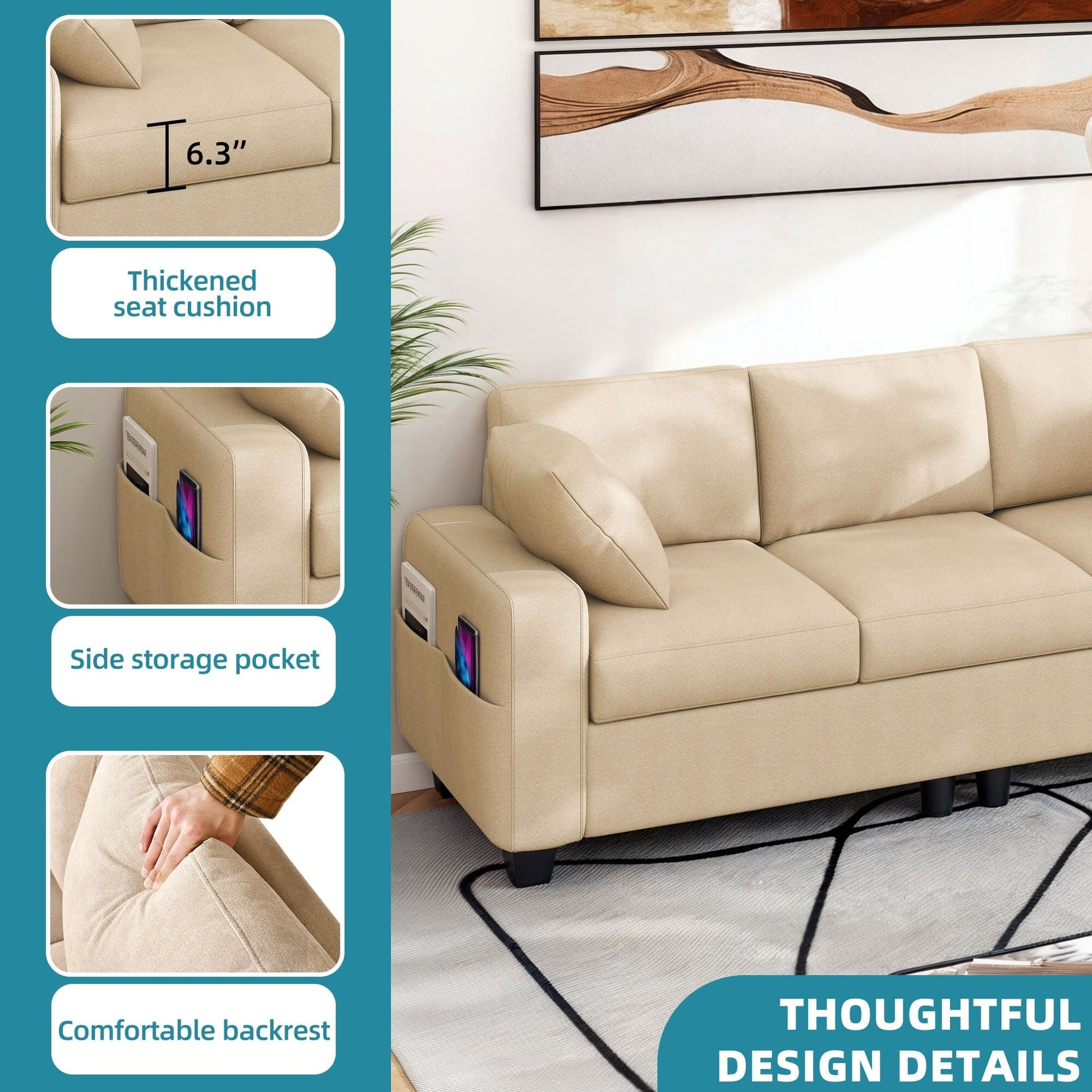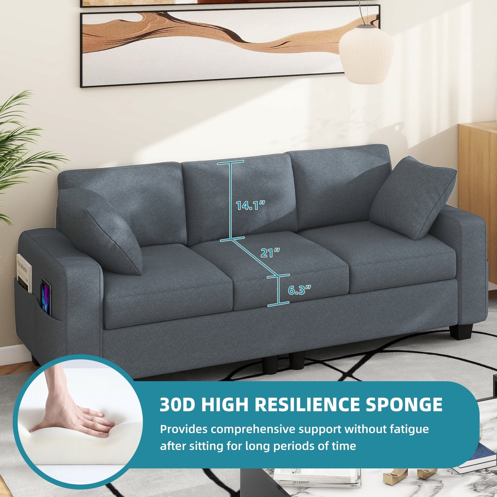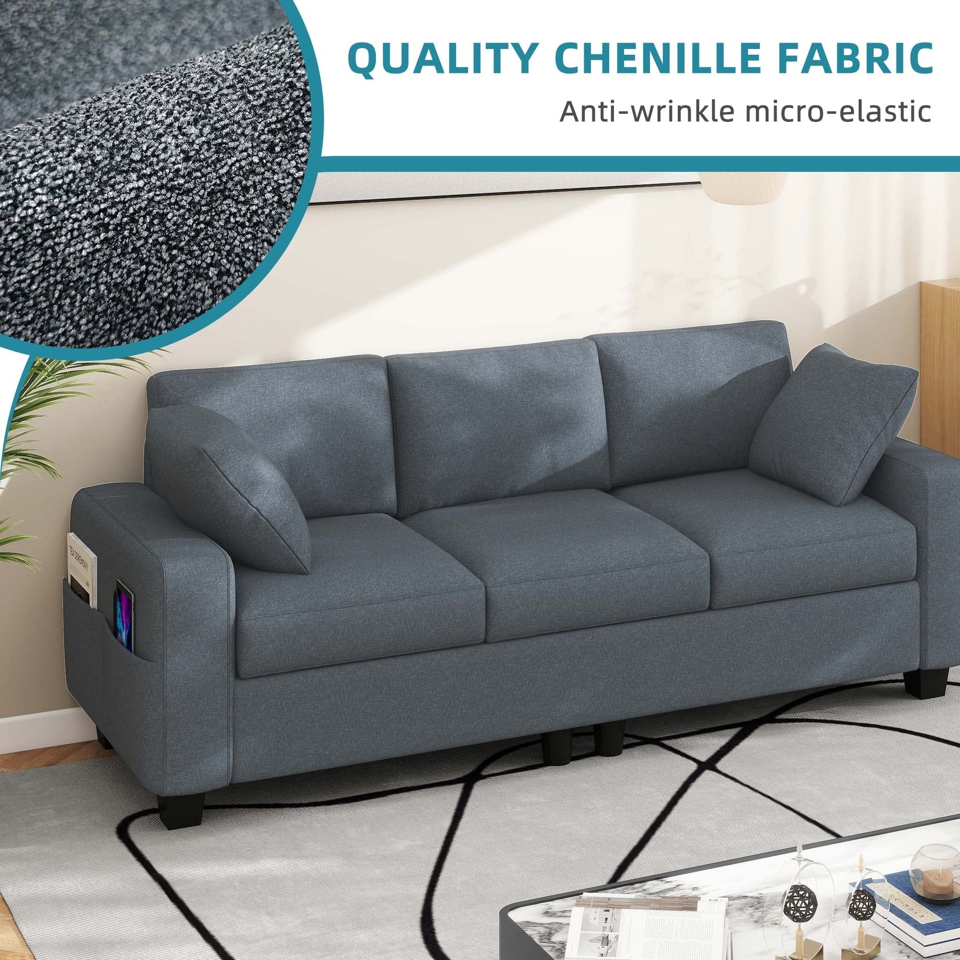 Divano imbottito Moasis 80 a 3 posti, 2 cuscini, divani con tasche laterali per soggiorno