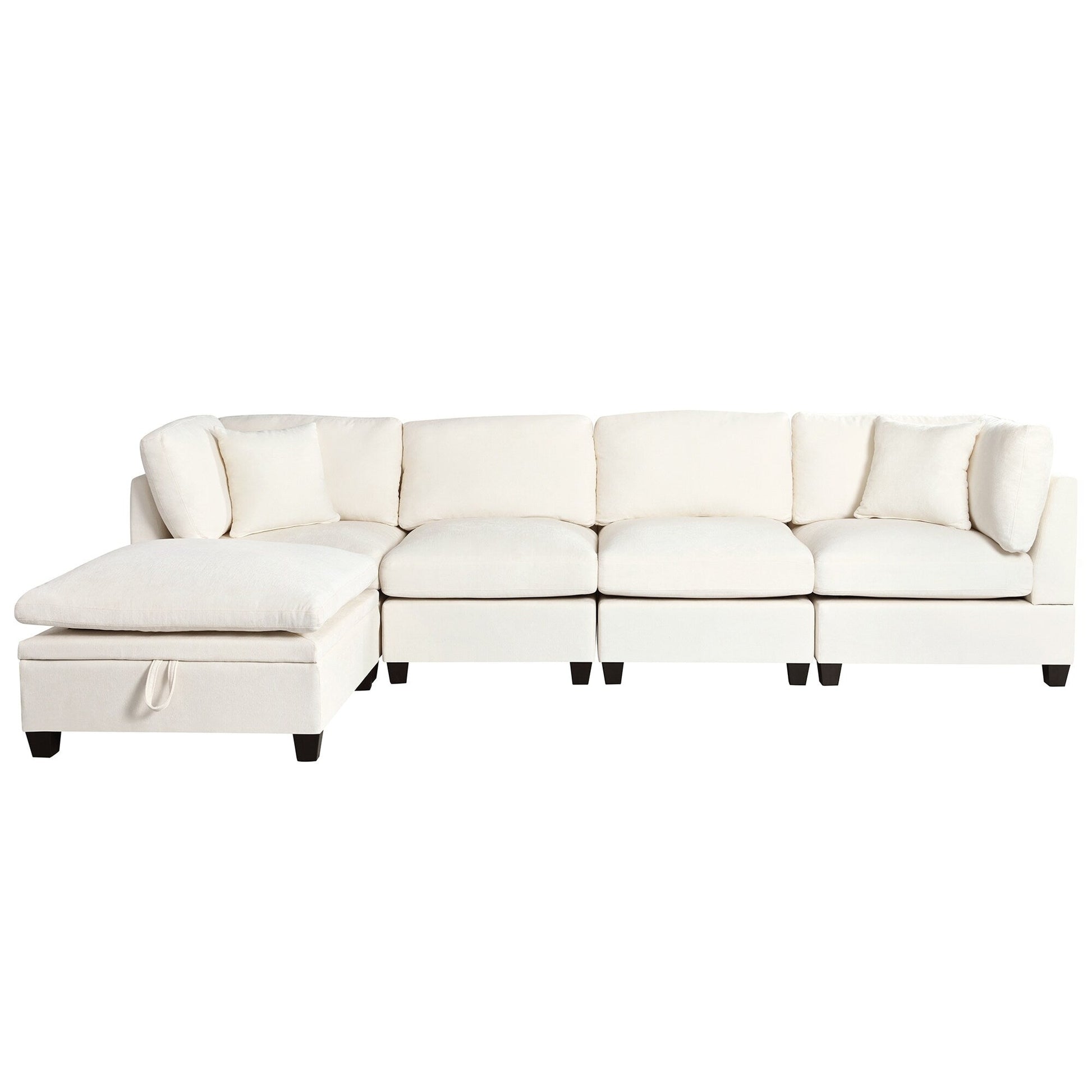 Divano componibile moderno a 5 posti a forma di U con pouf contenitore e portabicchieri nascosti per soggiorno e appartamento