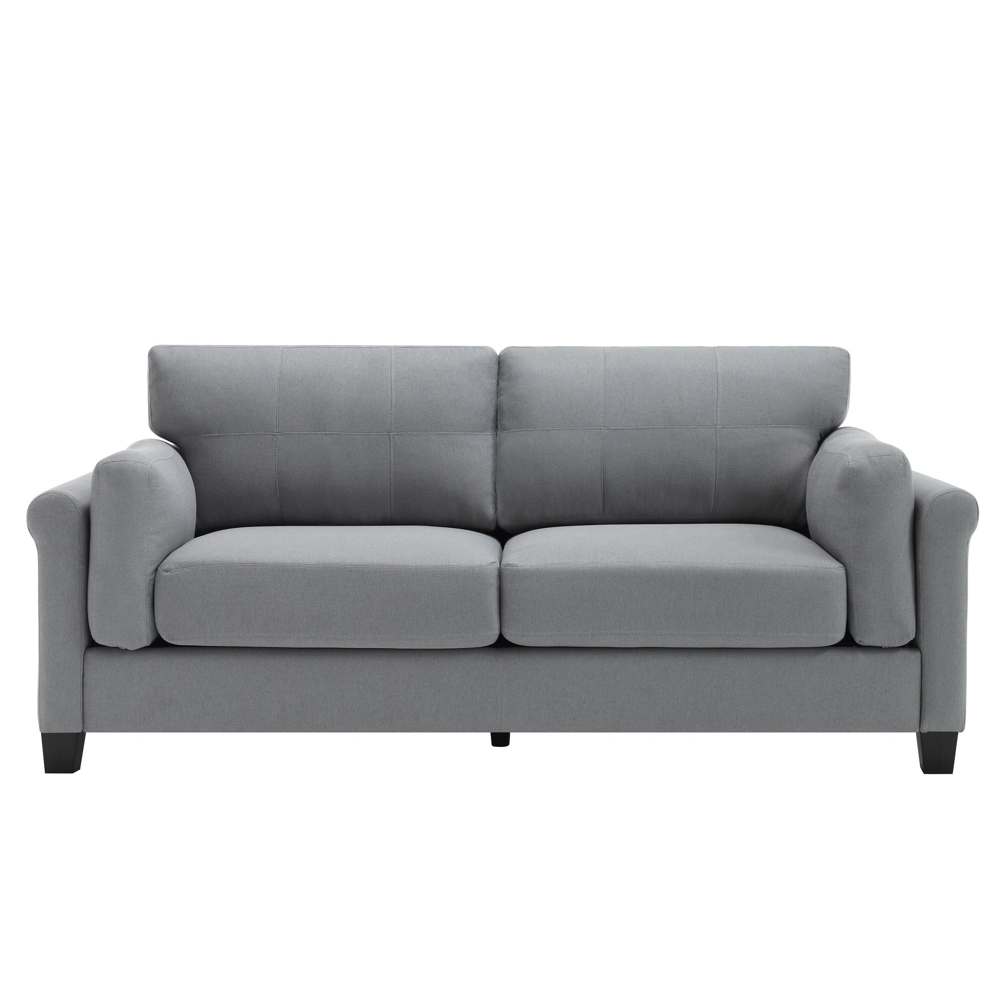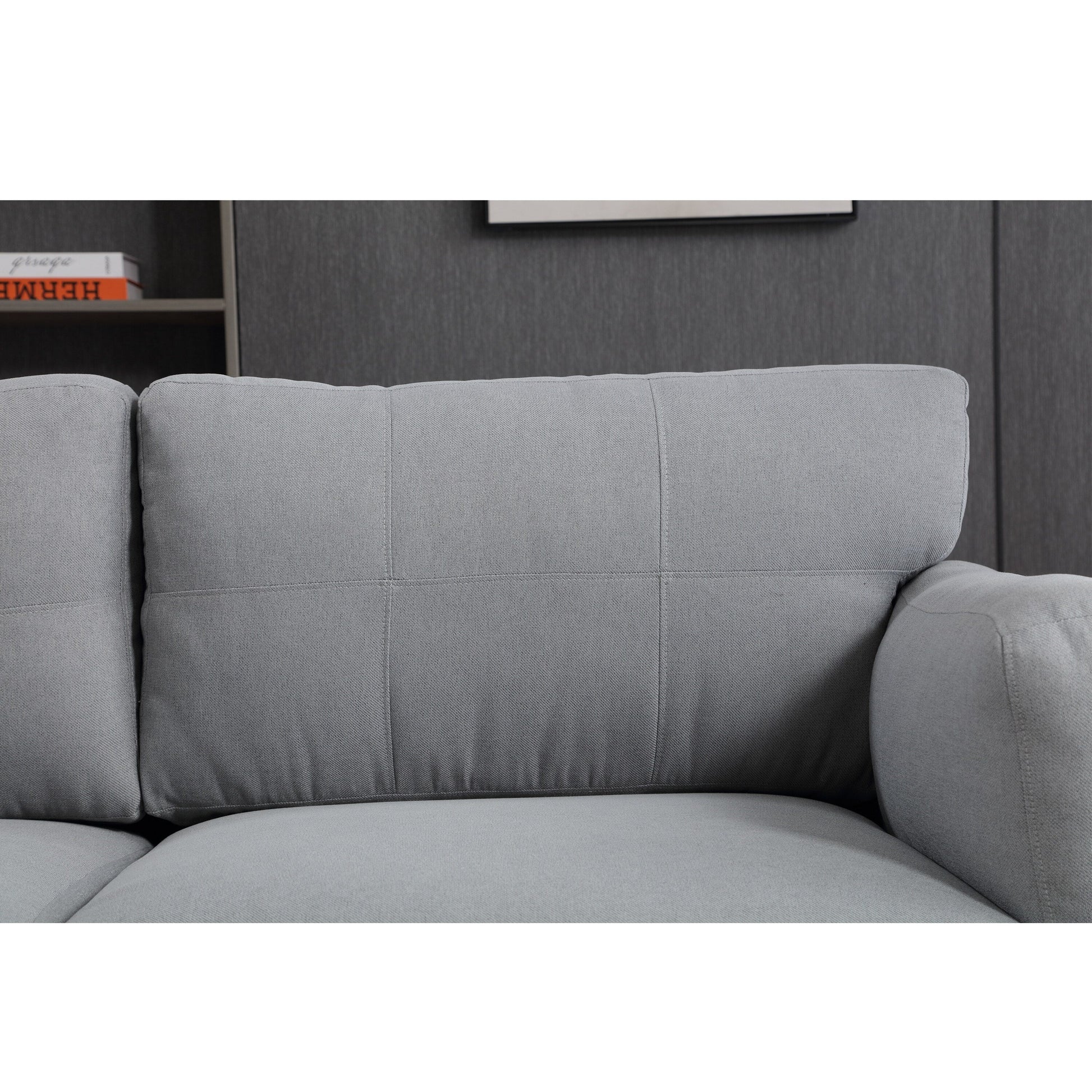 Divano moderno a 3 posti con 79 bottoni, rivestimento in lino trapuntato, 2 porte USB e piedino quadrato in plastica solida