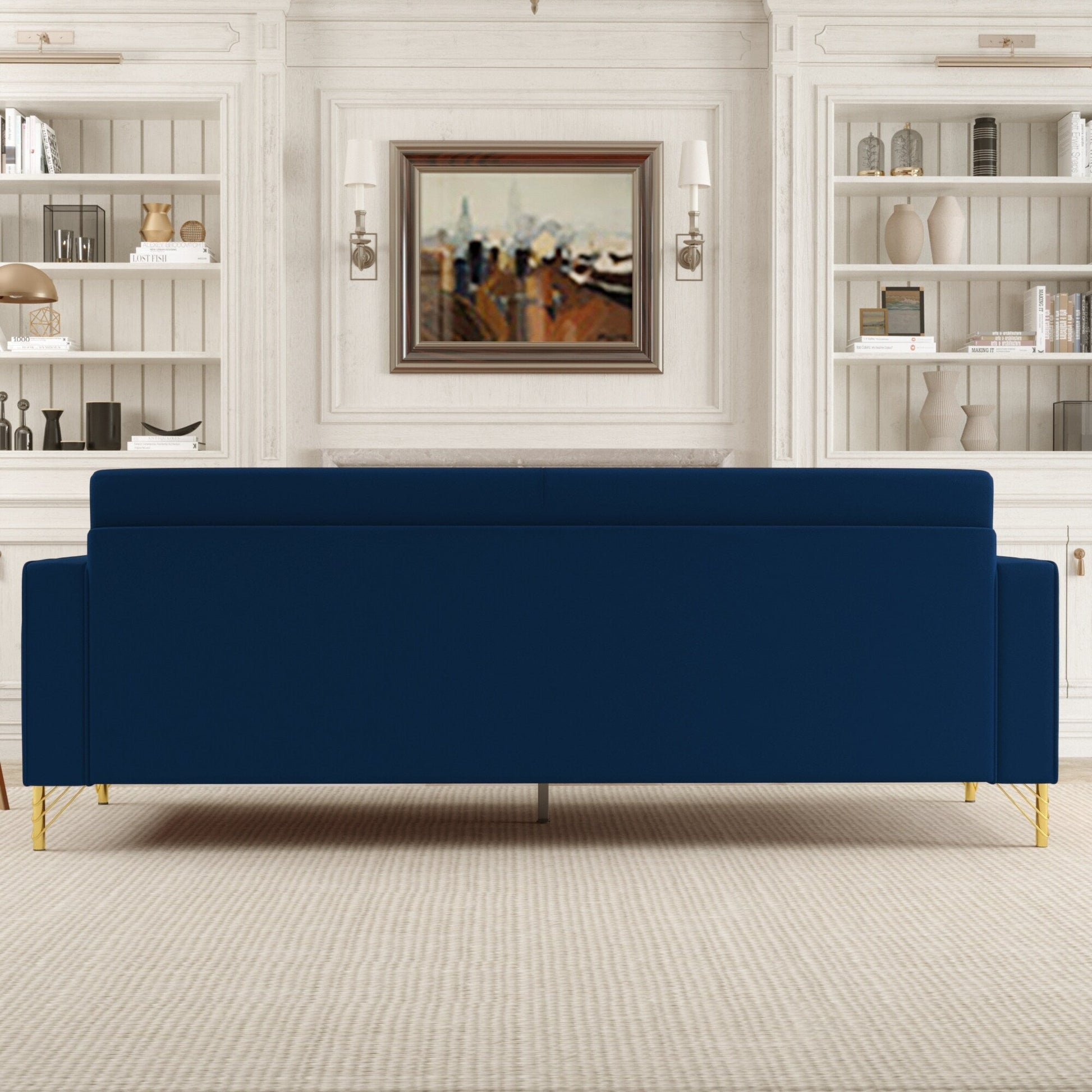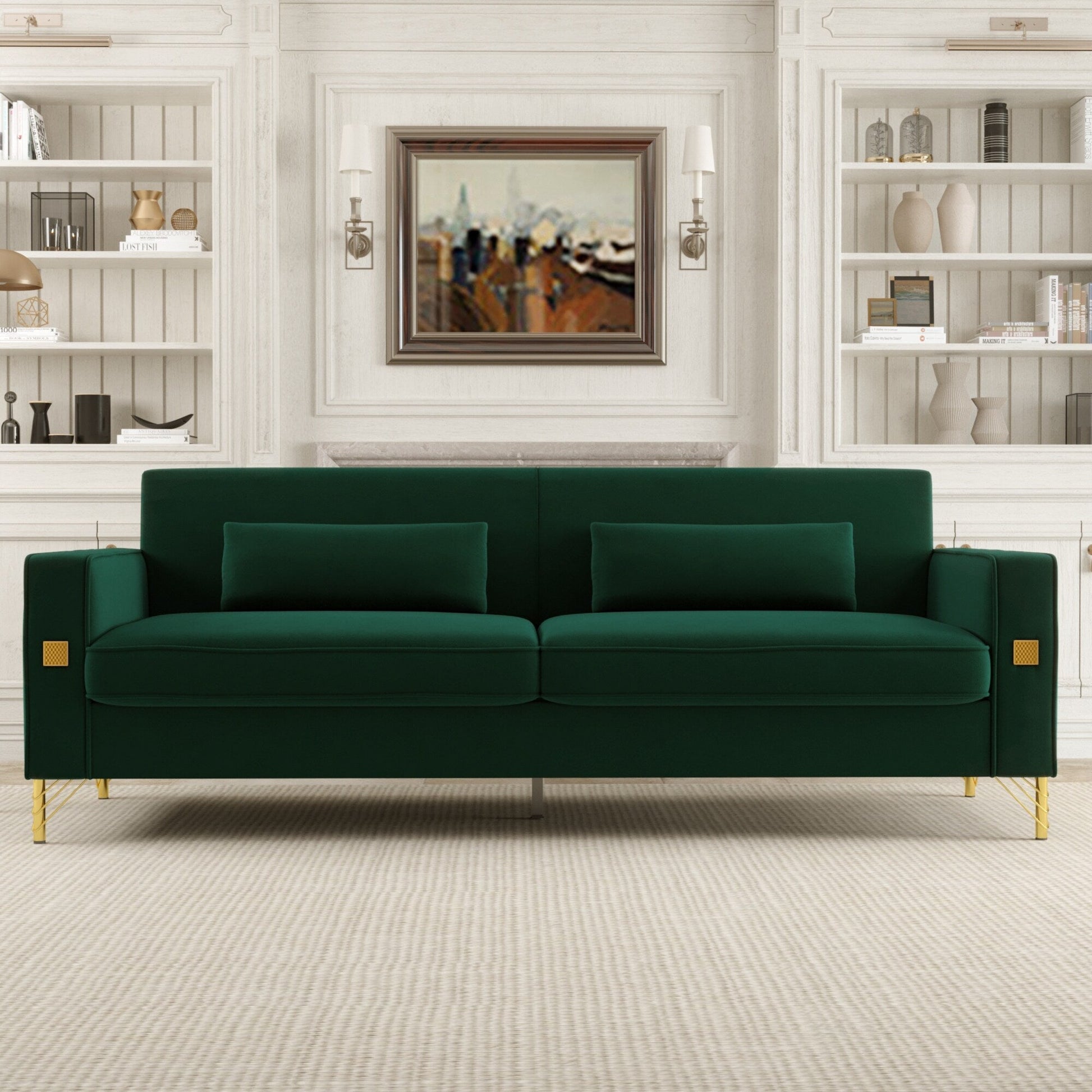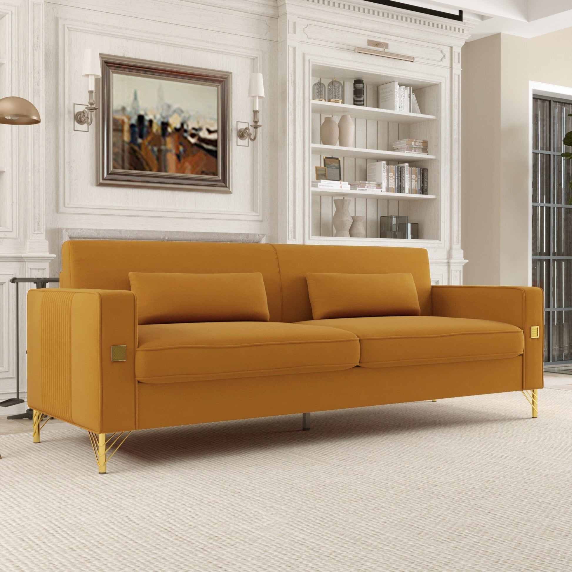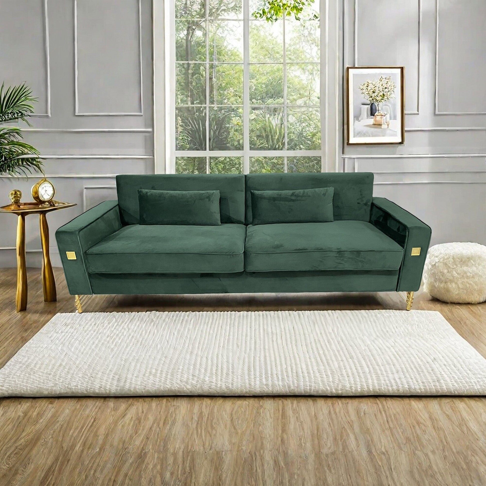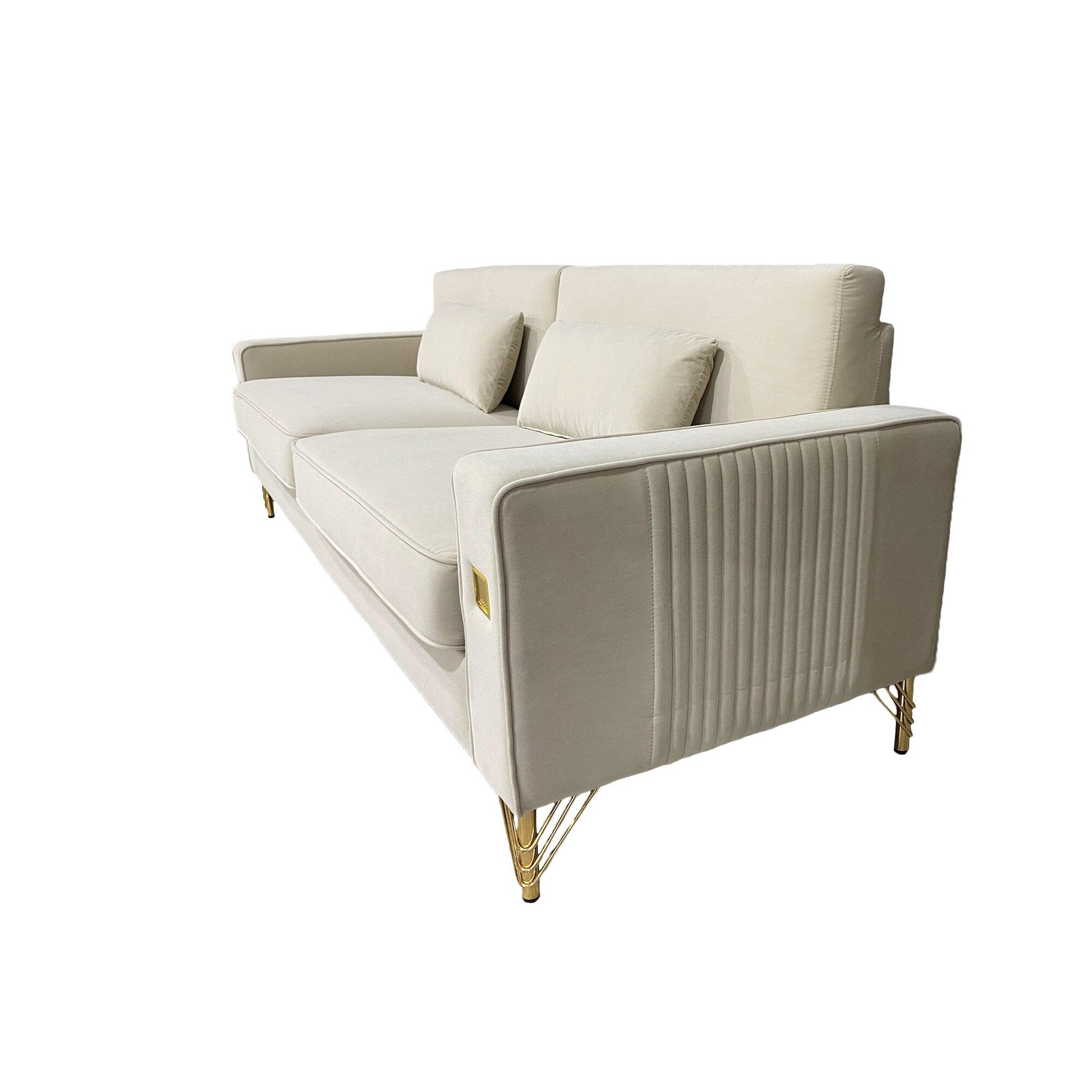 Divano moderno in velluto a 3 posti 85.63 con dettagli dorati e cuscini morbidi per il soggiorno