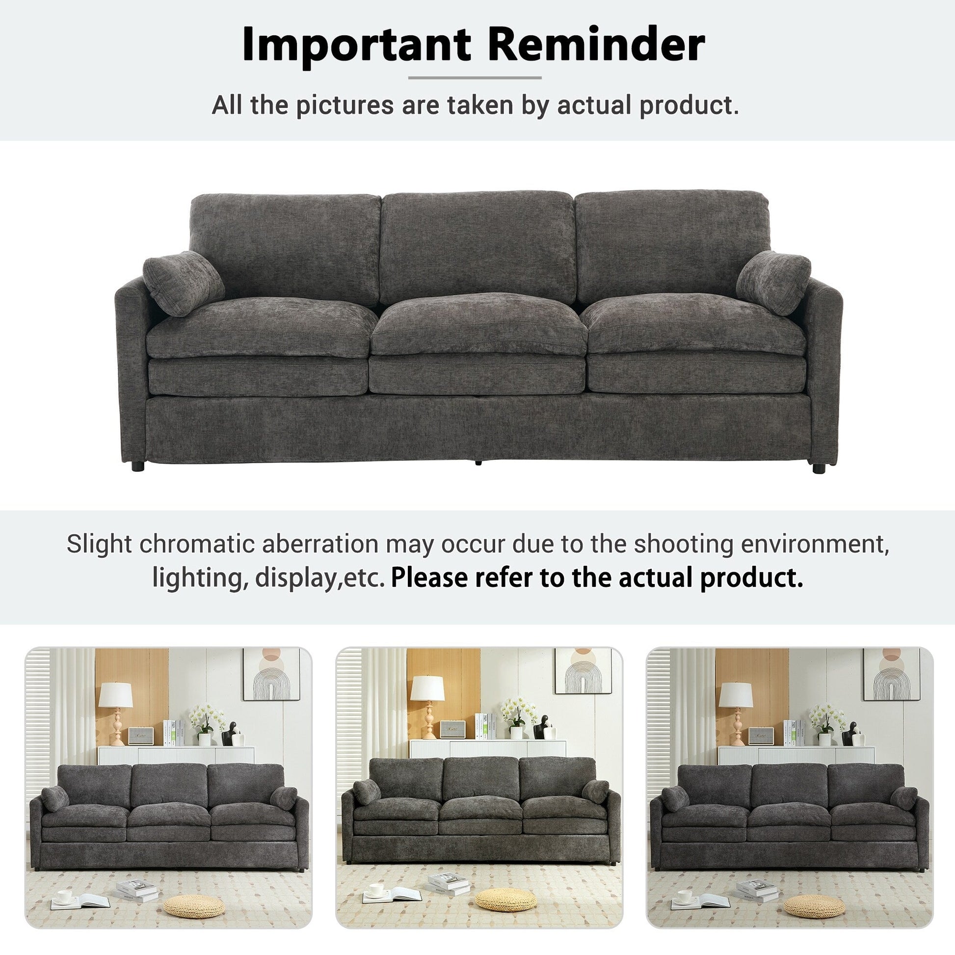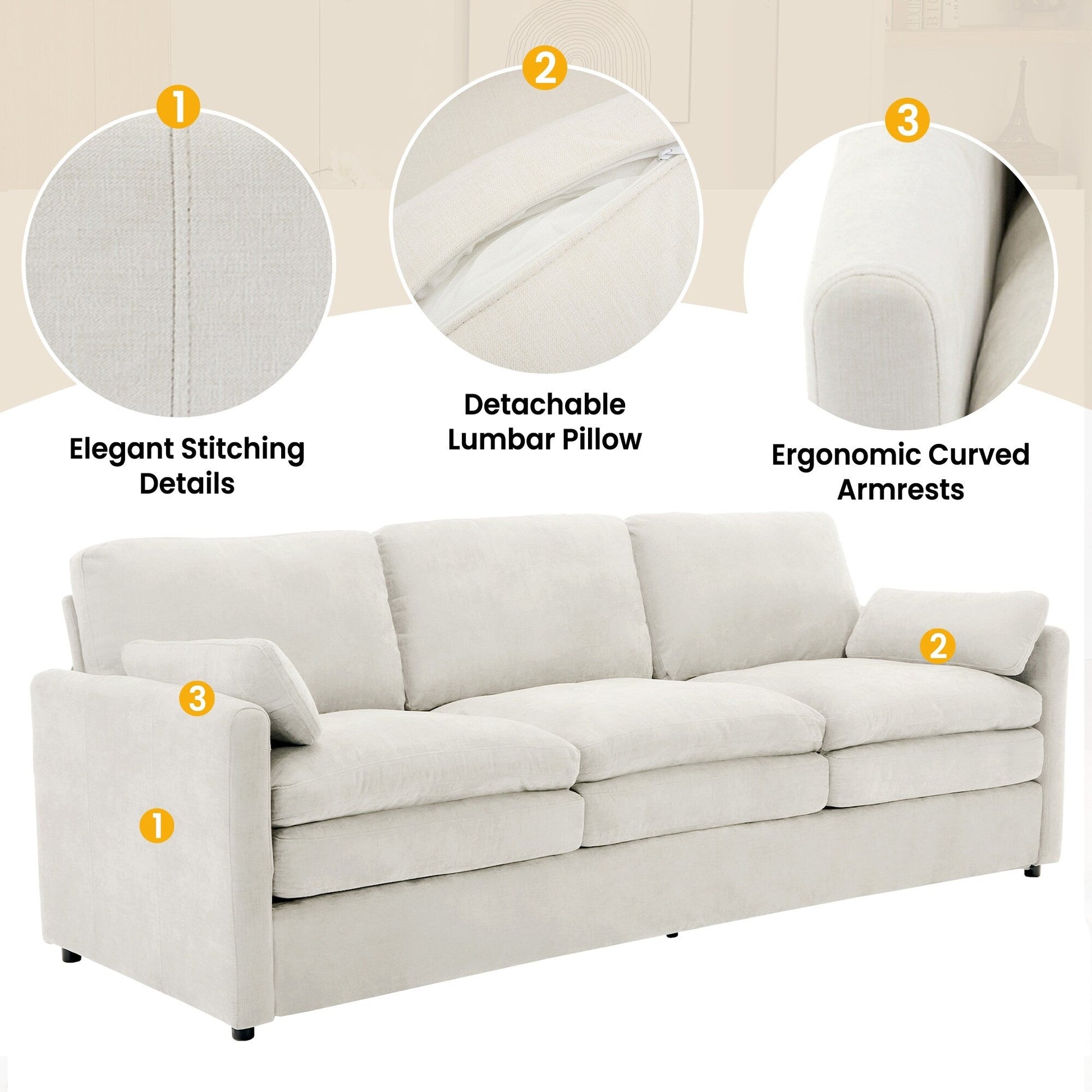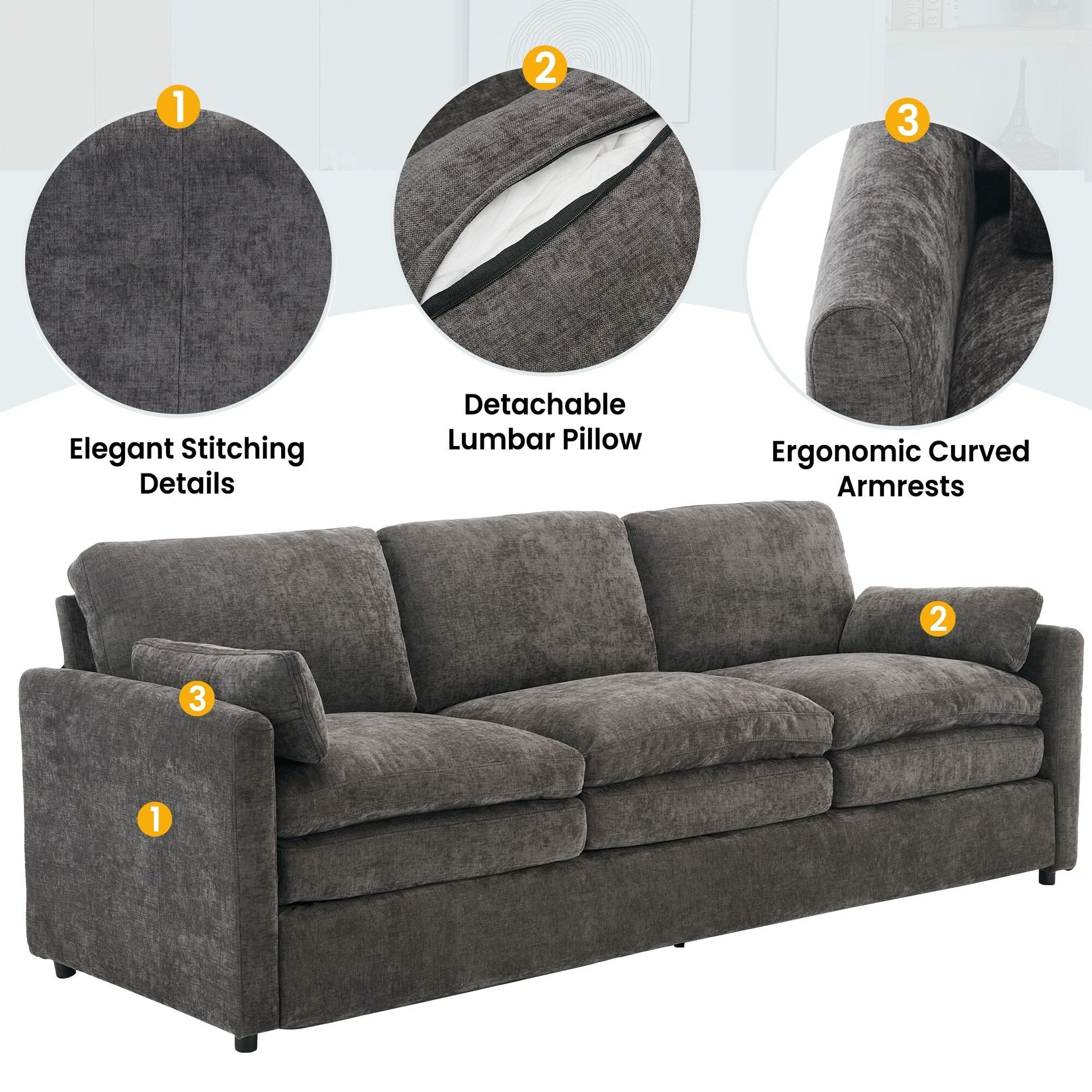 Divano moderno a 3 posti imbottito e confortevole in ciniglia, divano a 3 posti Comfy Cloud con 2 cuscini lombari, divano con cuscino di peluche