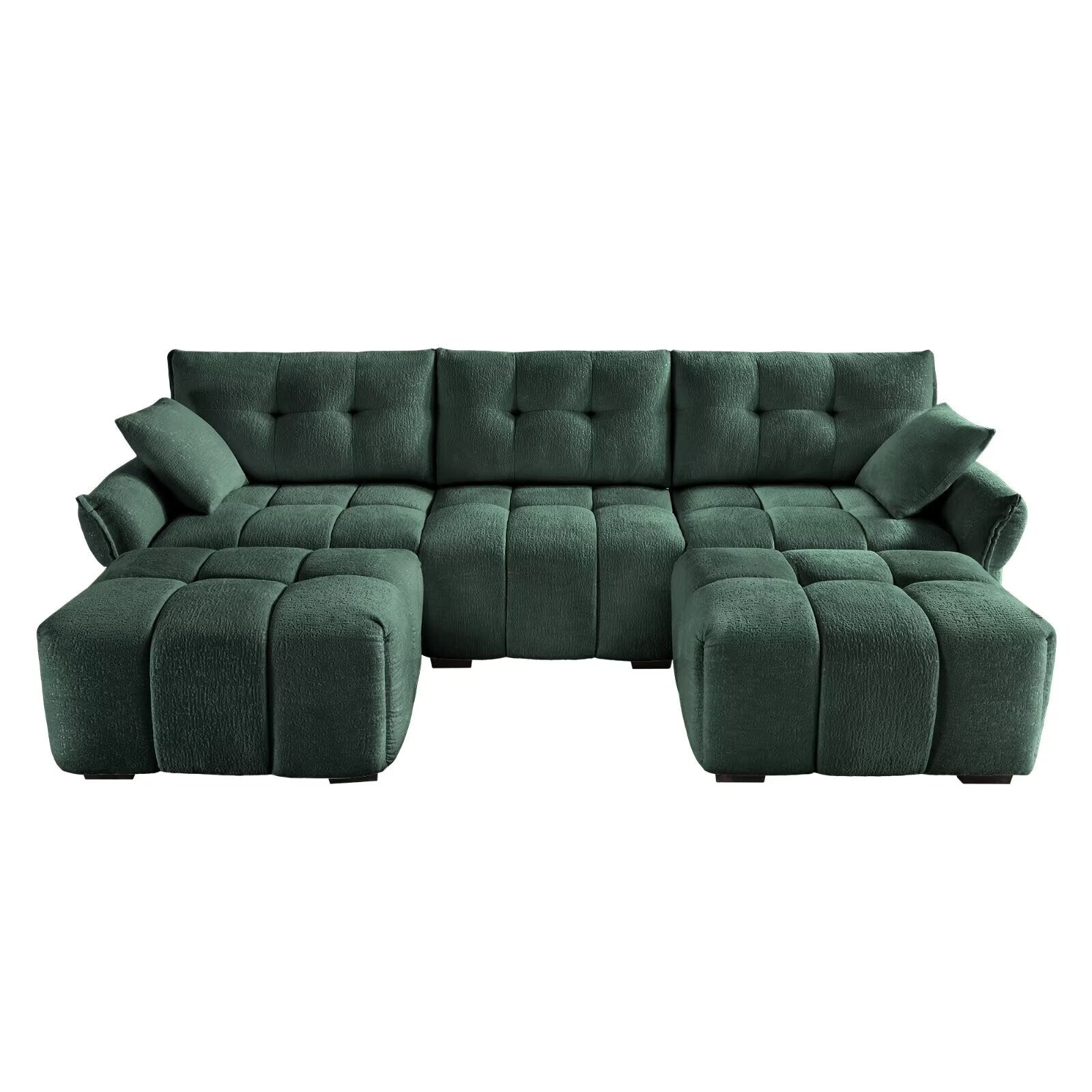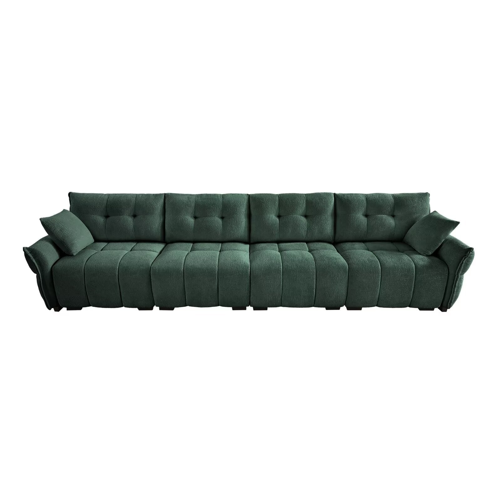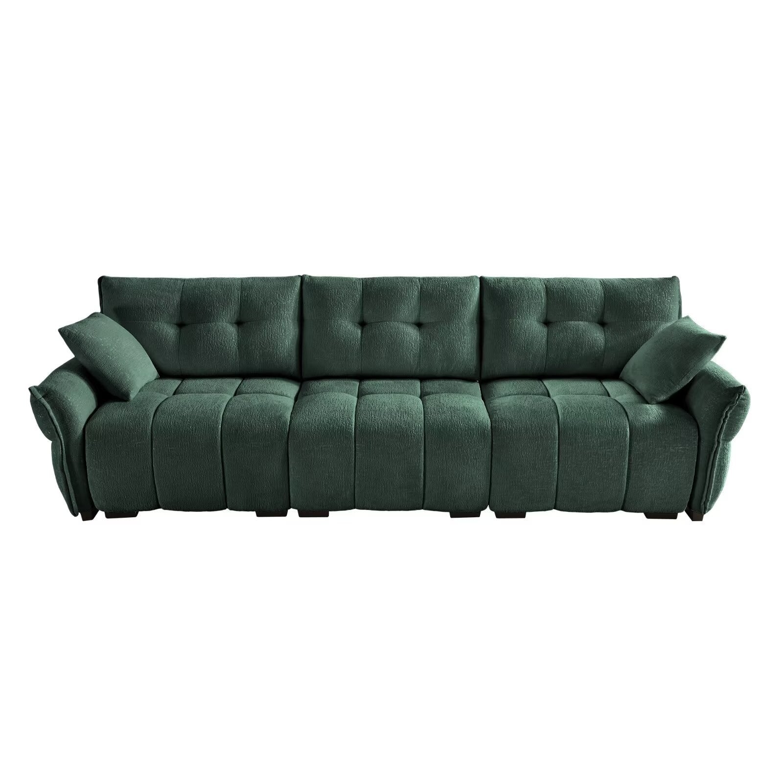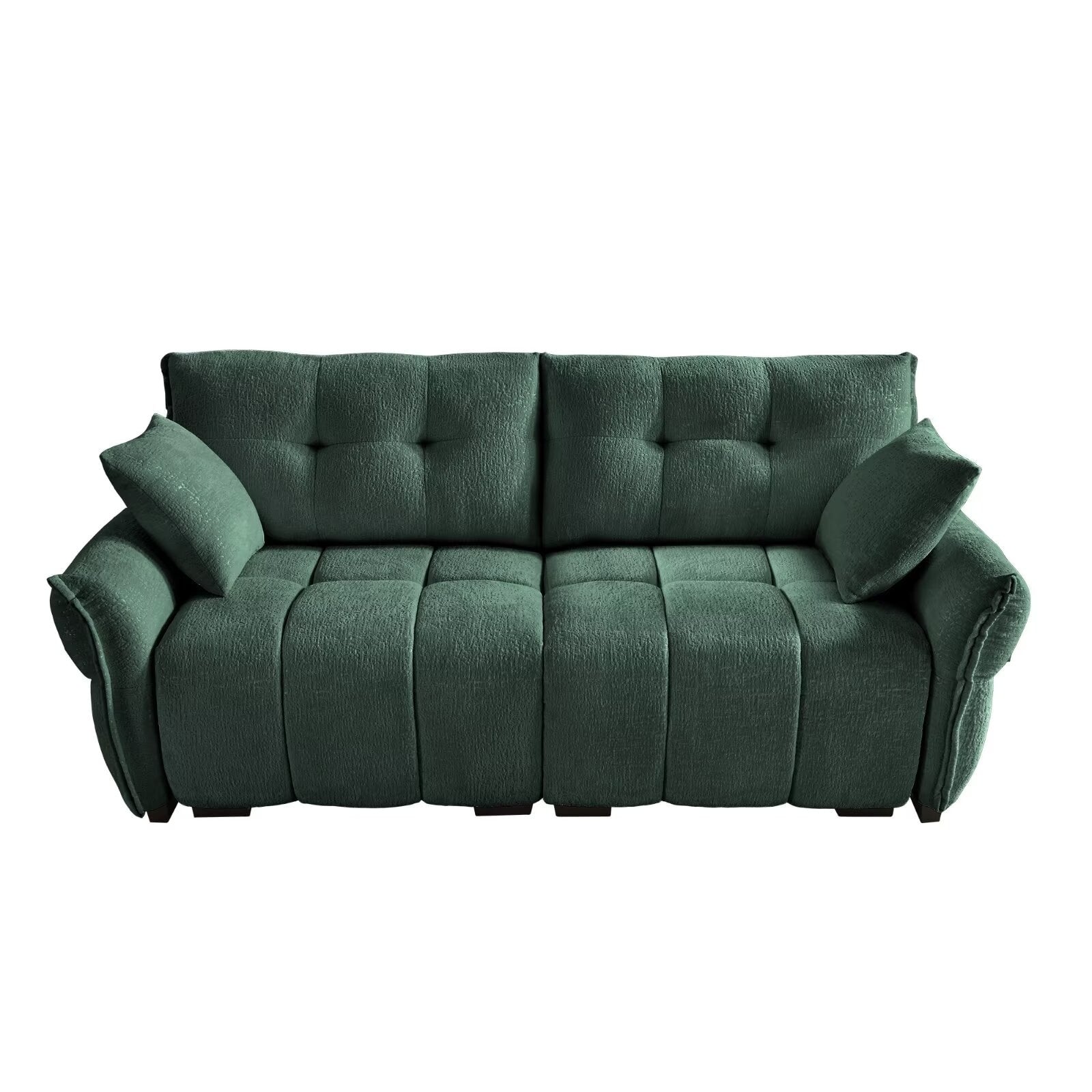 Tessuto in ciniglia: il divano è rivestito in pregiato e denso tessuto in ciniglia. Questo tessuto non solo offre un tocco incredibilmente morbido, ma emana anche un'aria di eleganza. La consistenza unica del materiale in ciniglia garantisce una sontuosa esperienza di seduta tutto l'anno. Oltre alla sua sensazione lussuosa, il tessuto in ciniglia di alta qualità è altamente durevole e resistente all'usura, rendendo questo divano un'aggiunta duratura alla vostra casa. L'imbottitura in spugna completamente compressa e ad alta resilienza