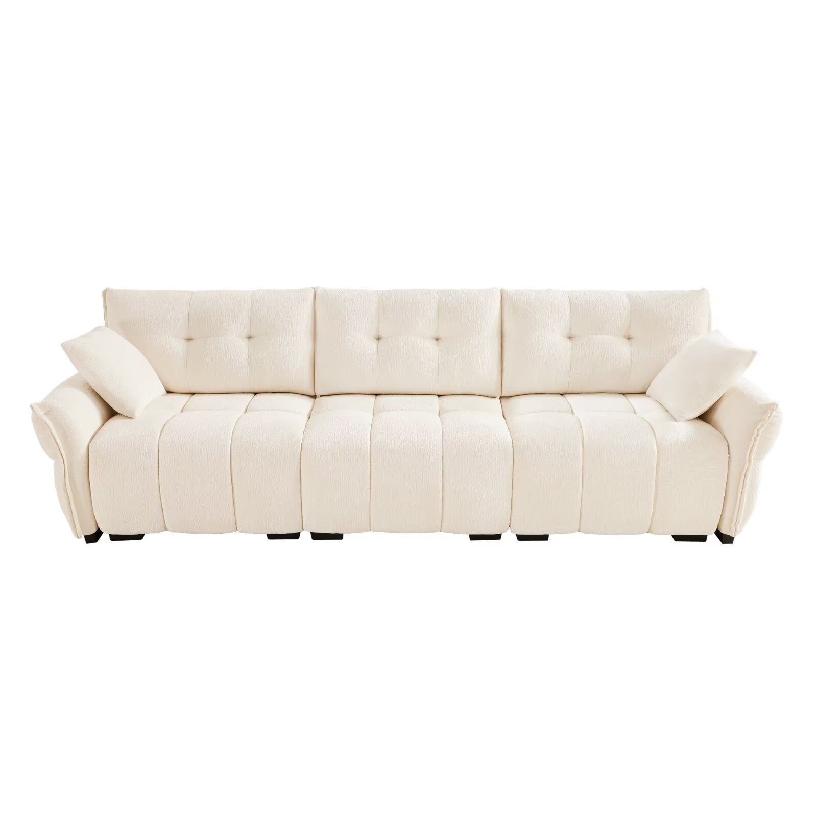 Comfort superiore: i cuscini di seduta di questo divano sono completamente compressi, imbottiti con spugna ad alta resilienza, offrendo un supporto e un'elasticità eccezionali per il corpo. Il design profondo offre un comfort extra per la parte bassa della schiena, garantendo una posizione di seduta rilassante. Completato da cuscini decorativi e cuscini per la vita, puoi godere di un supporto migliorato mentre guardi la TV, leggi un libro o chiacchieri con la famiglia. Lo schienale del divano è progettato ergonomicamente per adattarsi e sostenere il tuo corpo.