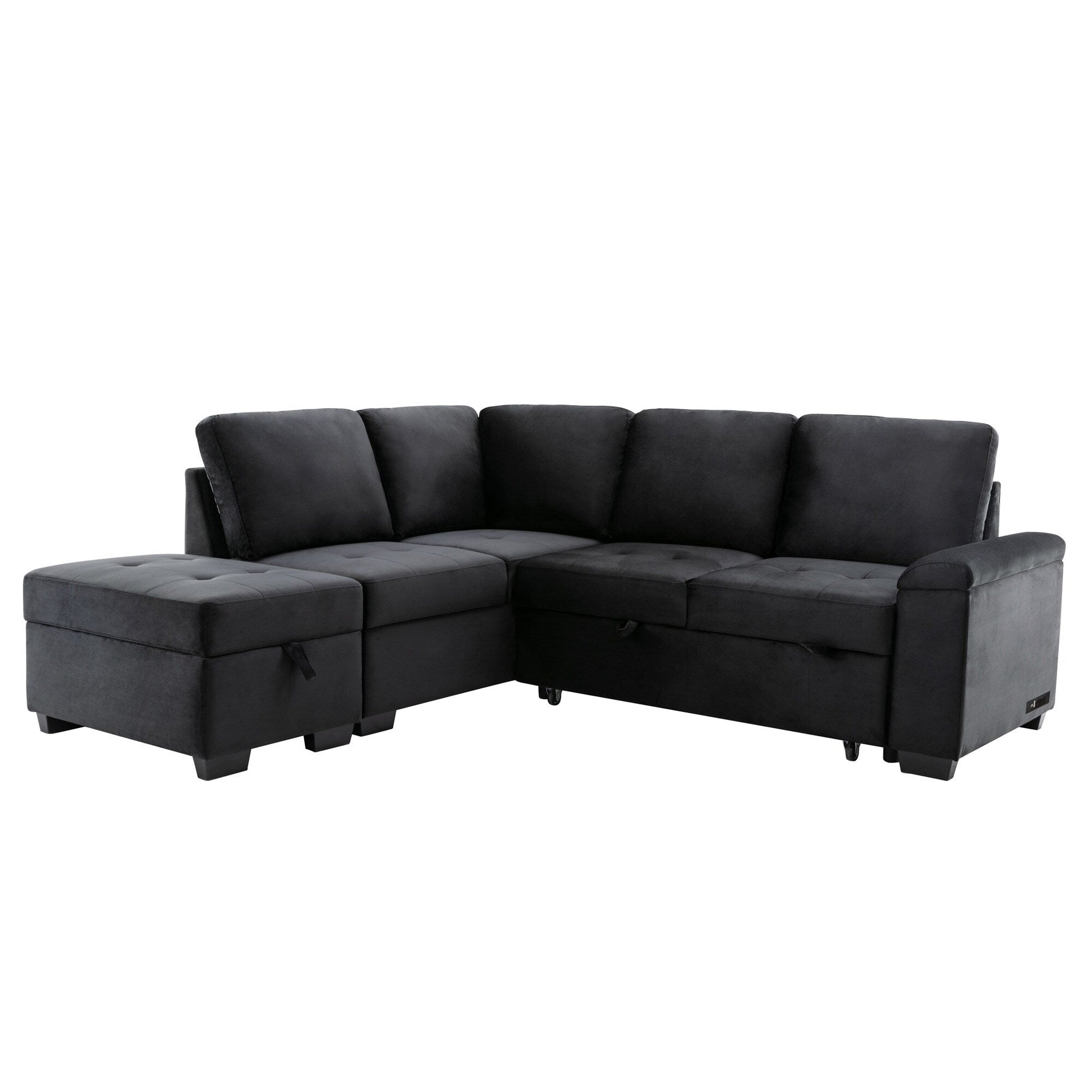 Divano letto moderno a forma di L in velluto, divano letto angolare con pouf contenitore, bracciolo nascosto e ricarica USB