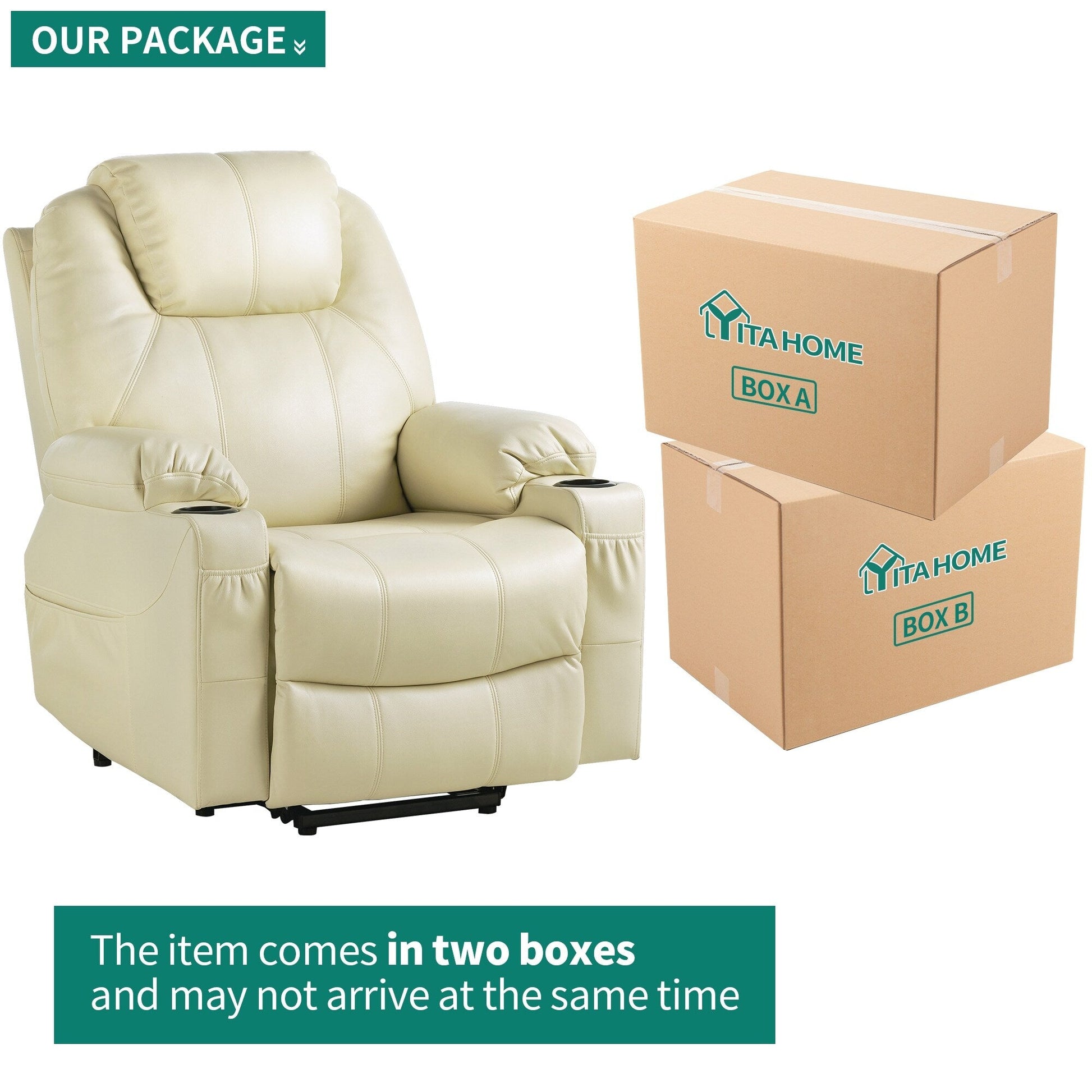 Poltrona reclinabile moderna in similpelle/tessuto color bianco sporco...