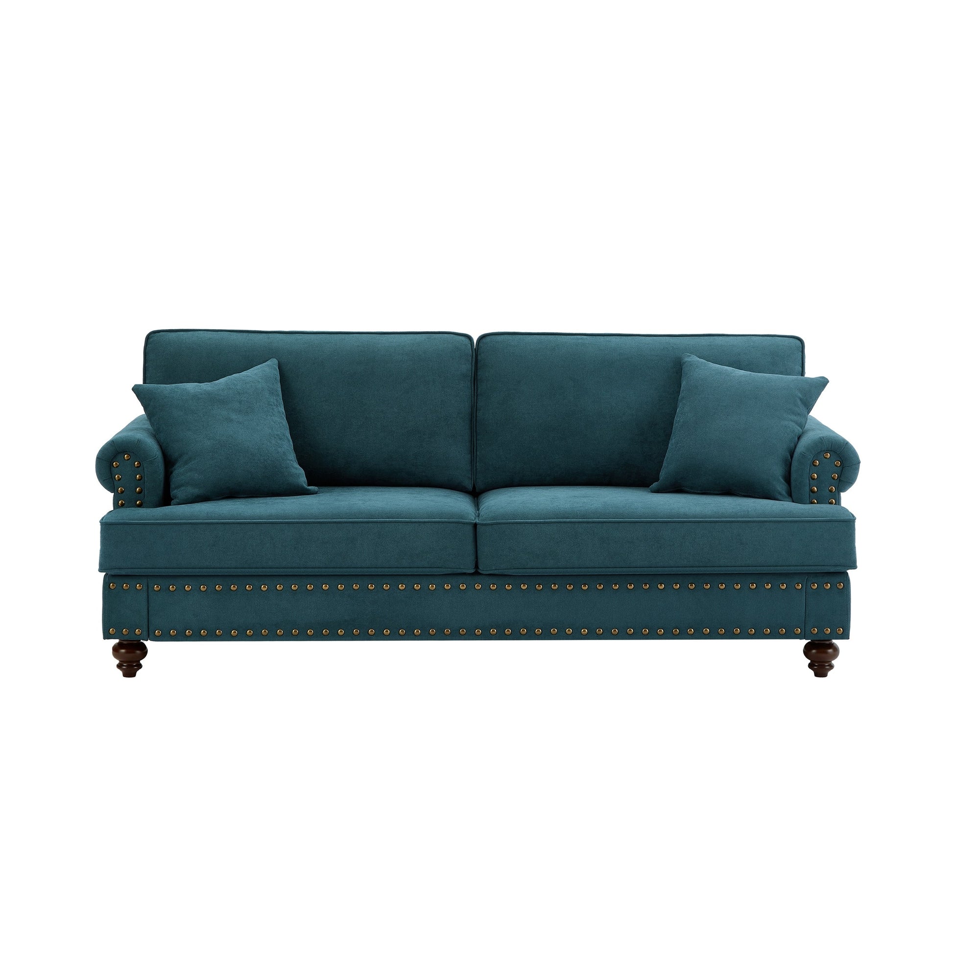 Divano moderno per soggiorno, 82', divano in ciniglia verde. La seduta è comoda e non affonda facilmente. Resistente allo sporco e facile da mantenere.