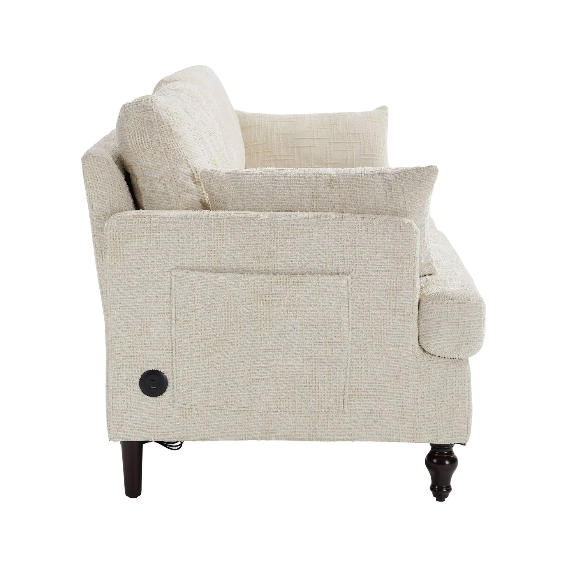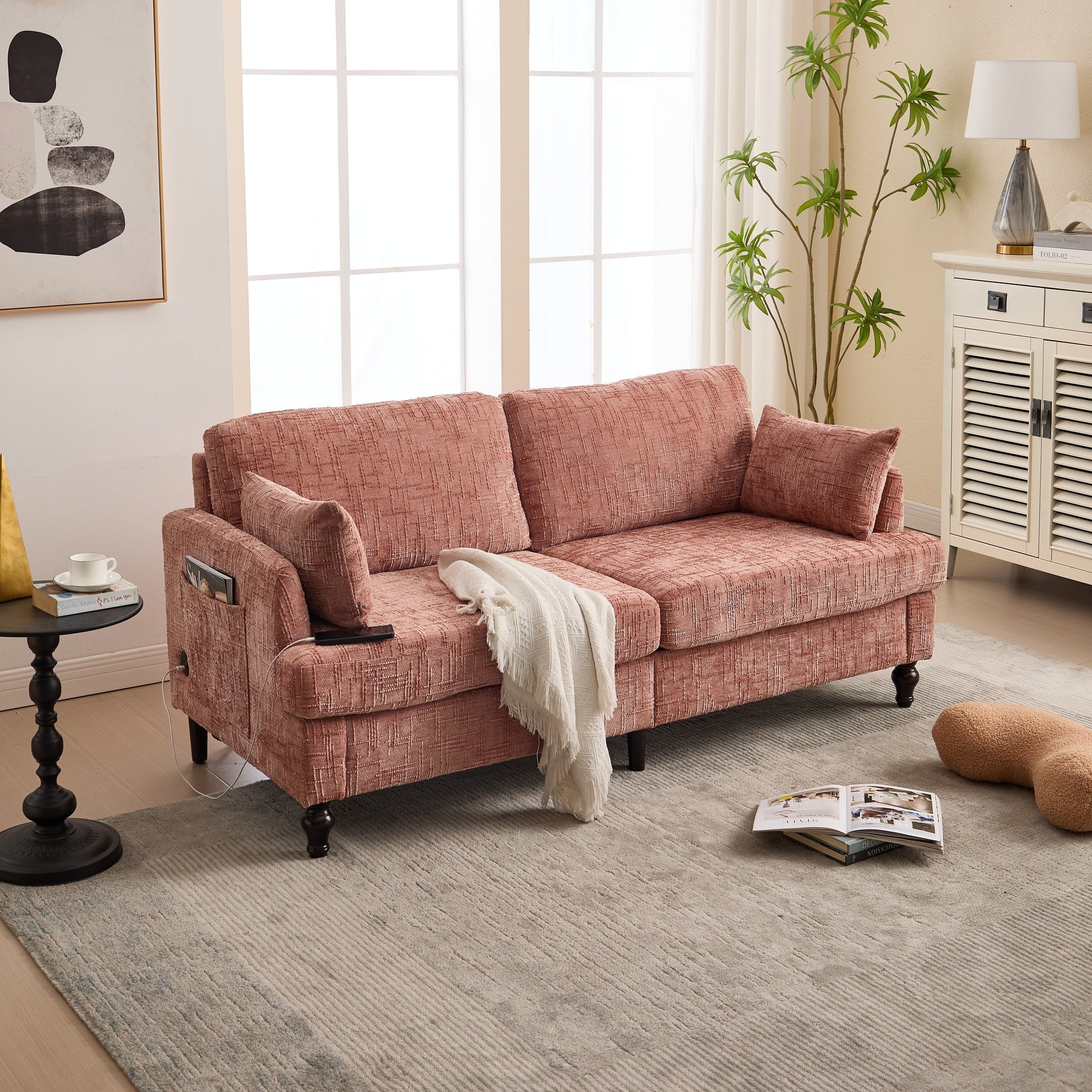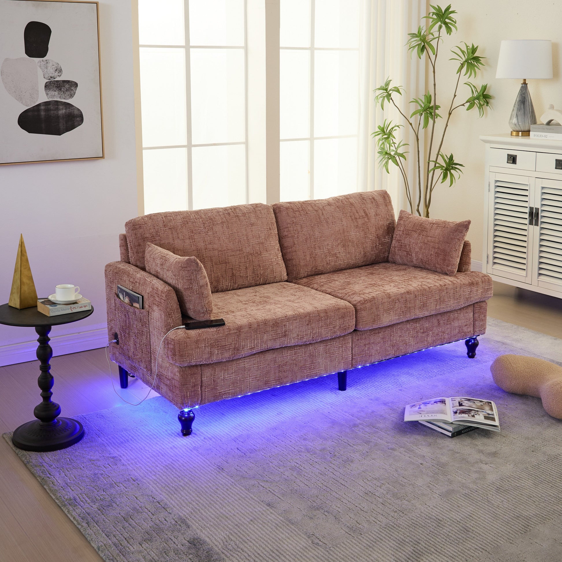 Divano moderno a 2 posti in ciniglia con gambe in legno, luce a LED, porta di ricarica USB e borsa portaoggetti, soggiorno, camera da letto, studio