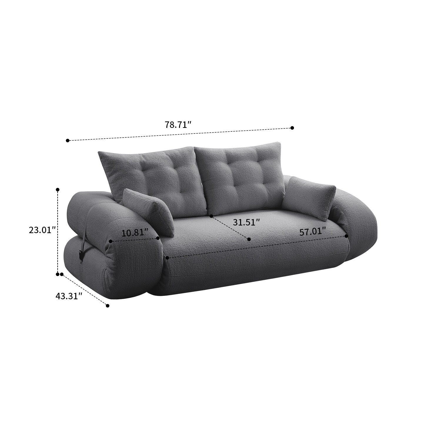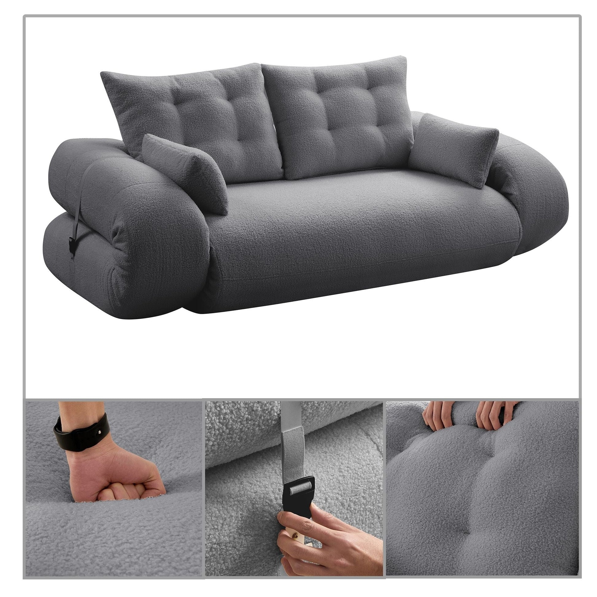 Divano letto trasformabile moderno e pratico, senza telaio, con cuscini e cuscini lombari, imbottitura in schiuma ad alta resilienza.